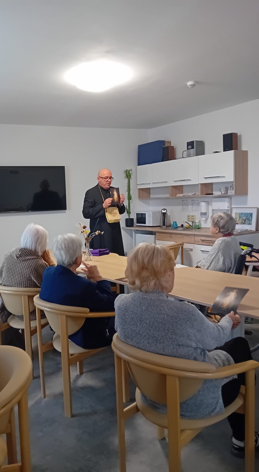 V Senevida Kateřinice umožňujeme klientům uspokojit i jejich duchovní potřeby. Zavzpomínali jsme si na své blízké, kteří už tu s námi nejsou, poslechli si milá slova a jako pozornost dostali svaté obrázky. 😊