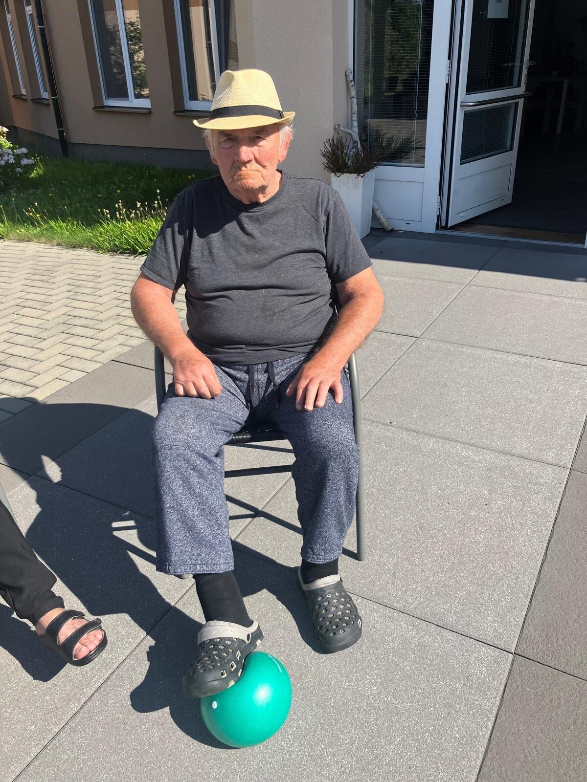 Aby si naši klienti v Senevida Kateřinice udrželi co nejdéle funkční střed těla a schopnost chůze, poctivě posilujeme pomocí overballů. Využíváme krásných slunných dní, a proto většina aktivit nyní probíhá venku na zahradě.🌞