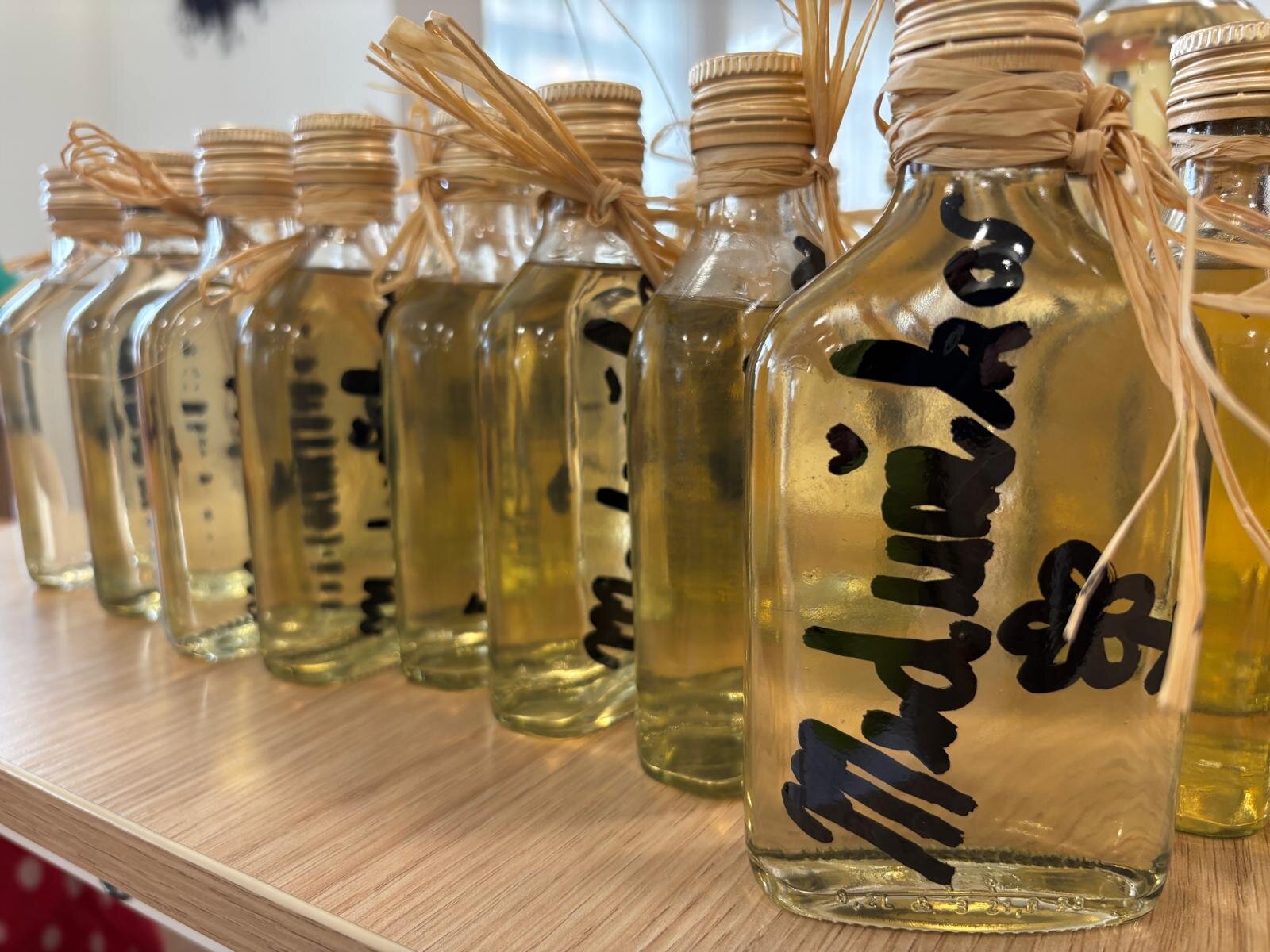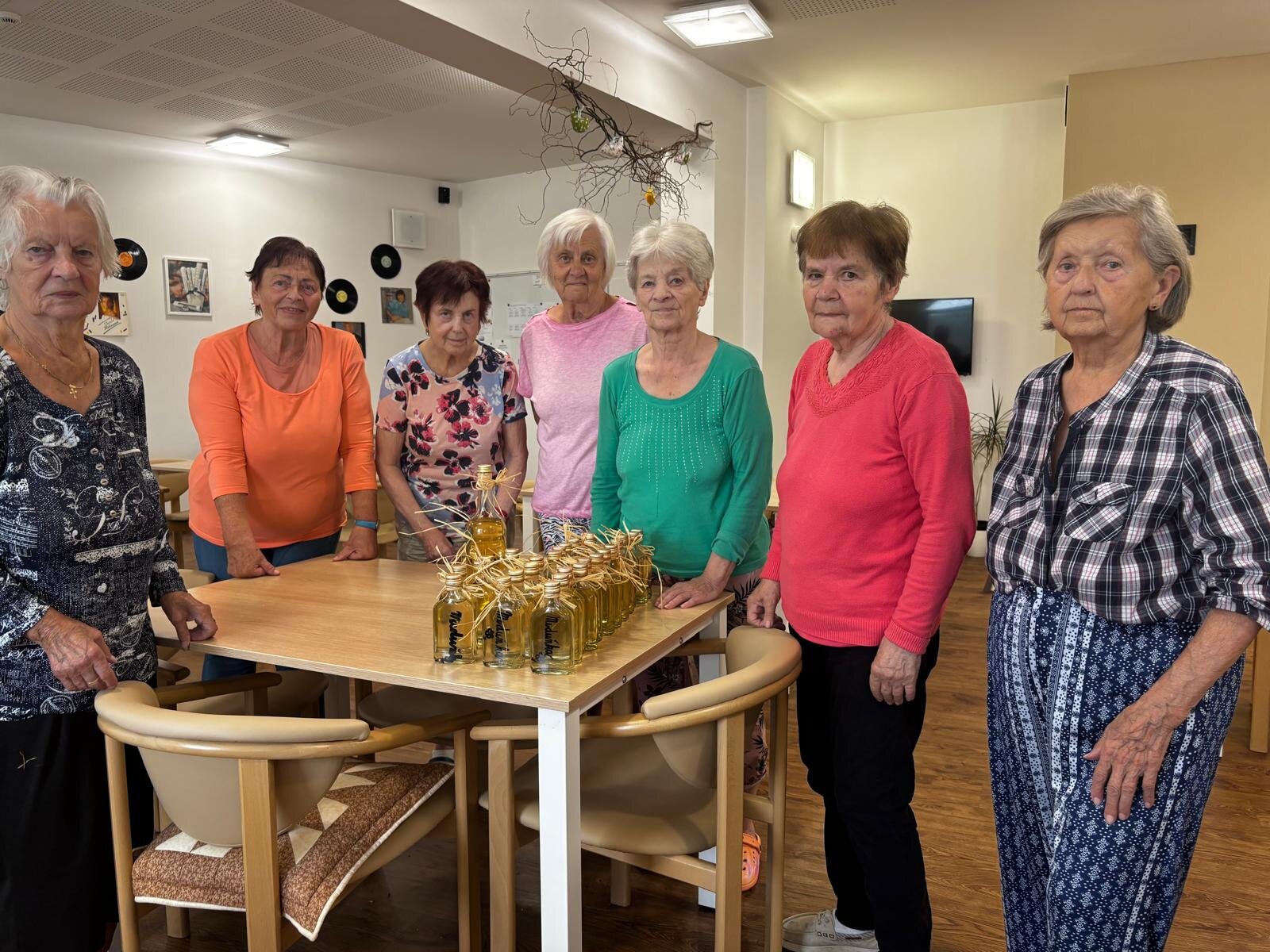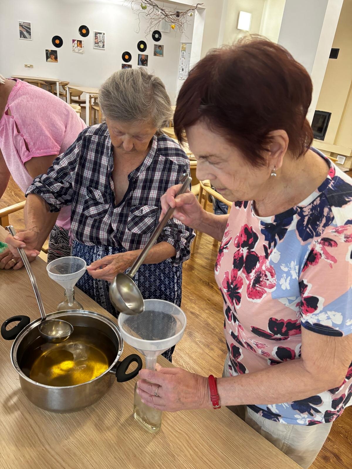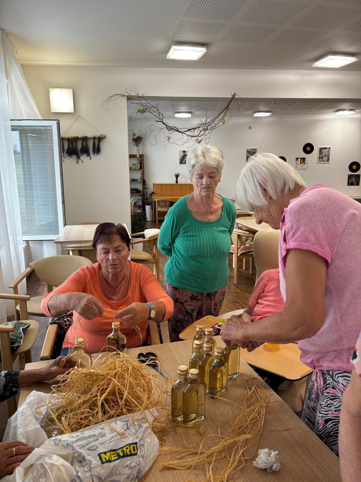 Meduňkový sirup. Z nasbíraných lístků meduňky jsme s klienty Senevida Kateřinice uvařili sirup. Společnými silami jsme ho rozlili do připravených sklenic a poté malé lahvičky krásně dozdobili. Lahvičky se sirupem budou tak nejen pro potěchu oka, ale především pro naše mlsné jazýčky.
