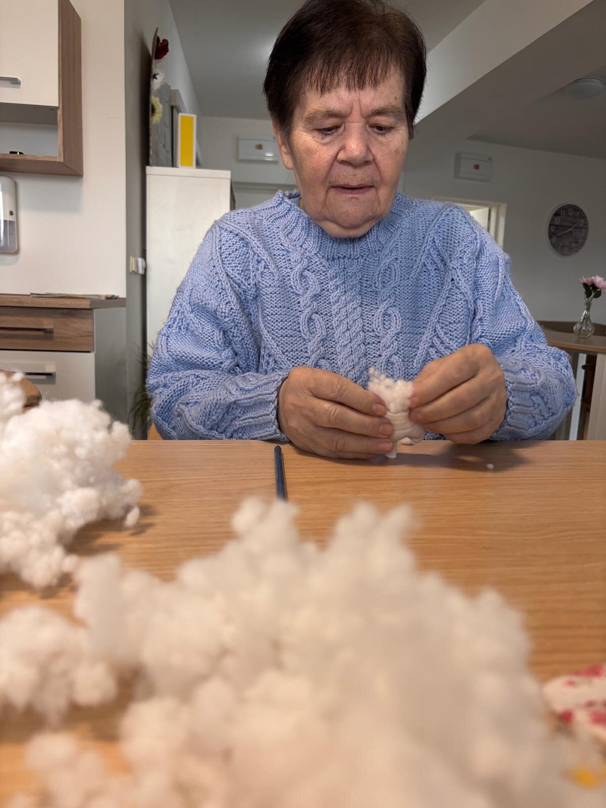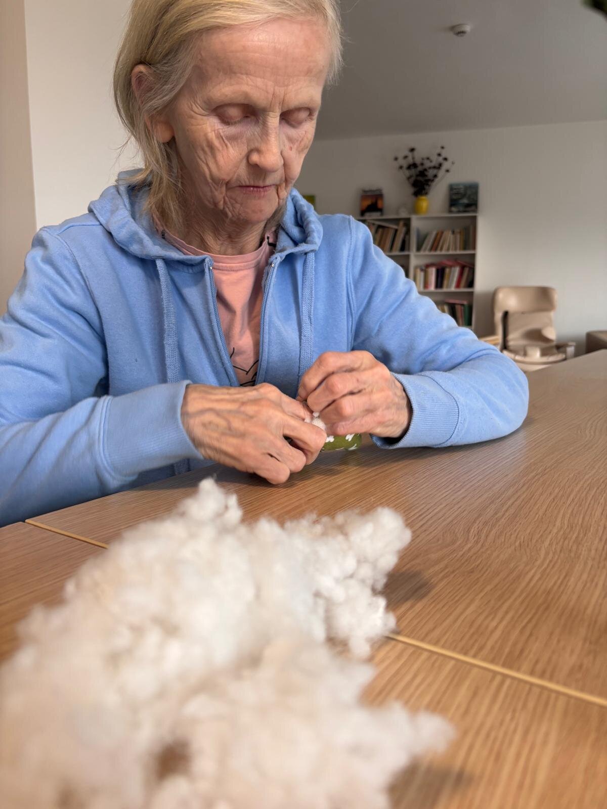 V rámci odpoledního klubu s klienty Senevida Kateřinice pomalu vyrábíme jarní dekorace 🐦. Práce s látkou, výplní do polštářů a ta nejtěžší práce s jehlou. Klientky si tak připomněly ruční práce, které běžně vykonávaly ve svých domovech třeba v podobě štupování ponožek. Už se těšíme na výsledek.