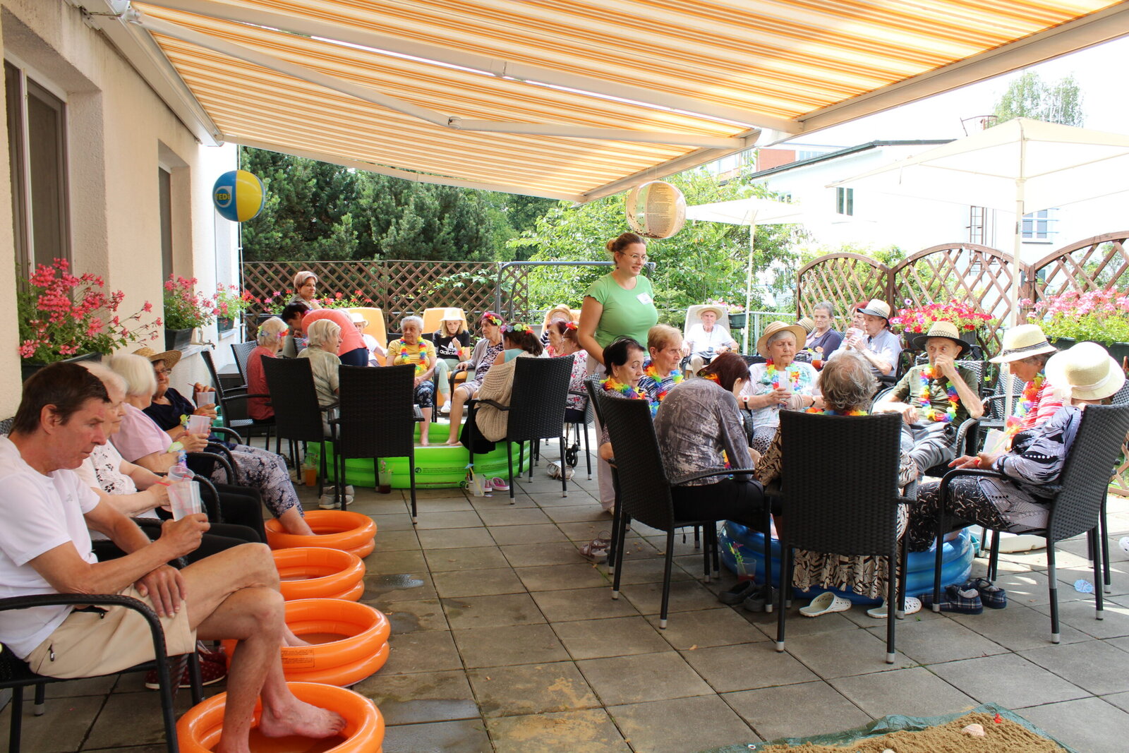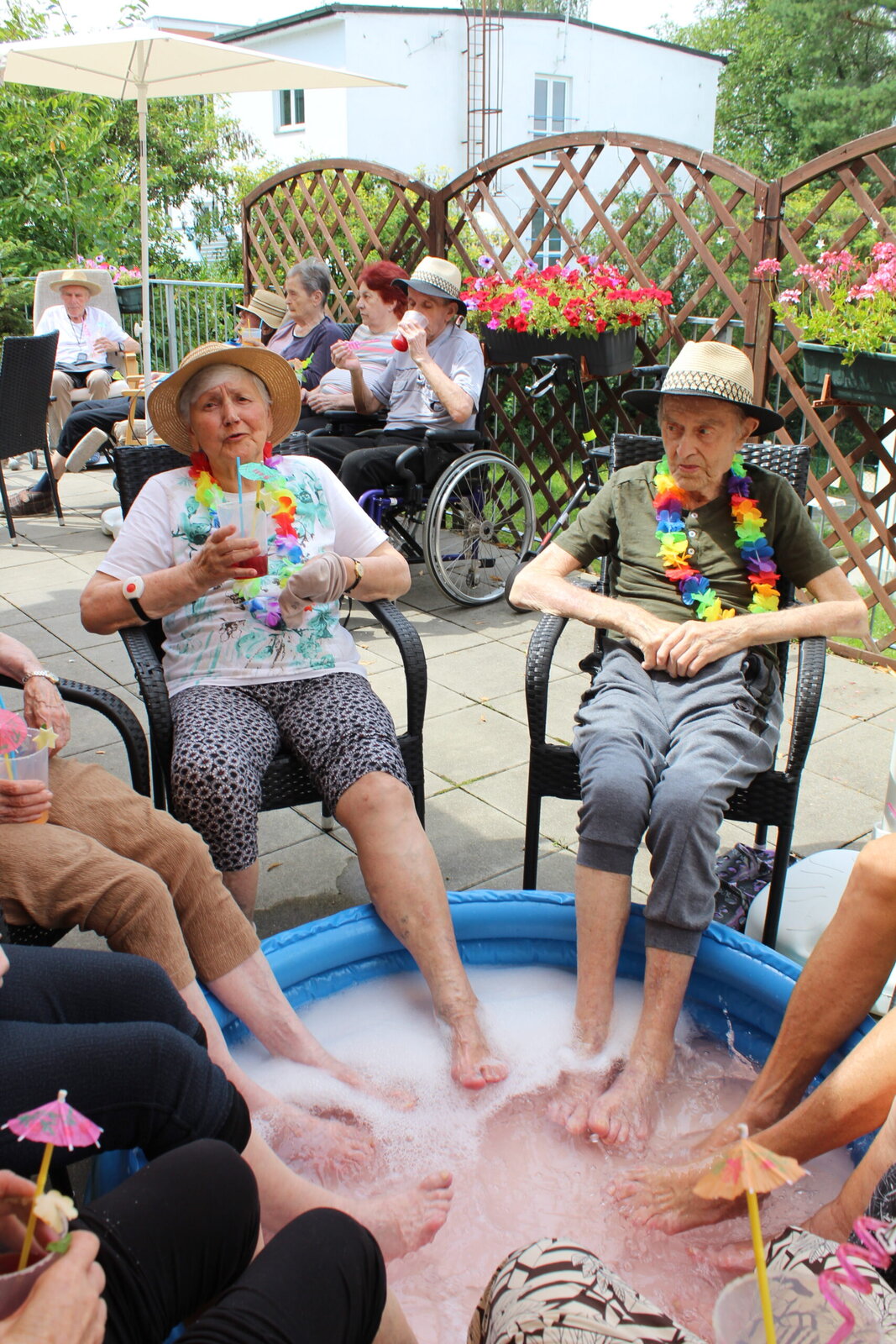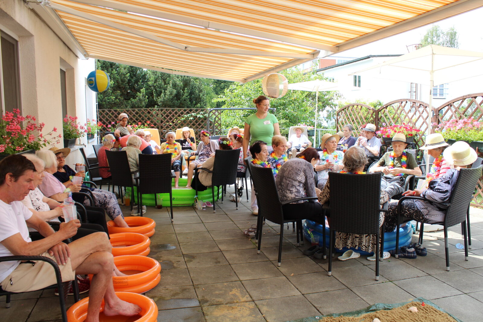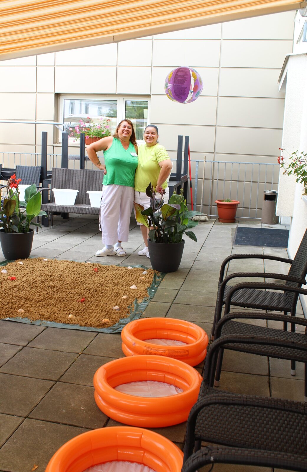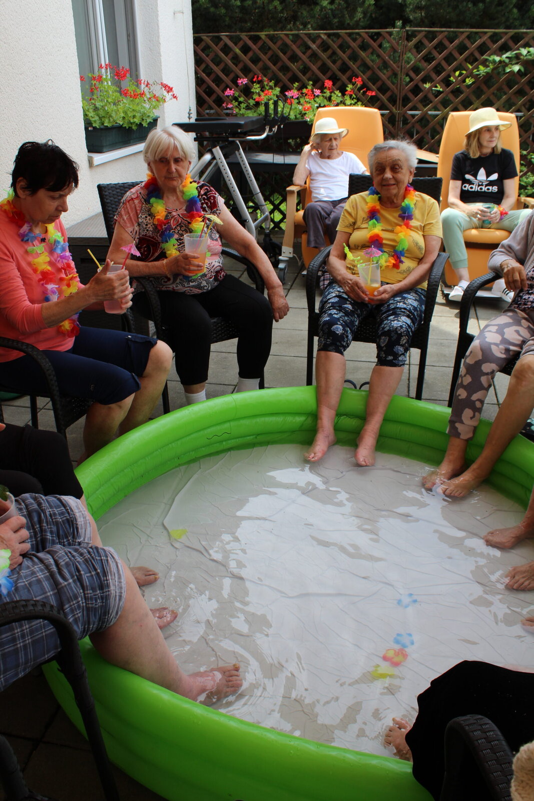 Naše terasa se na jeden den proměnila v pláž, kde nechyběl písek mezi prsty, bazénky na osvěžení nohou a pohodová atmosféra plná smíchu a radosti.