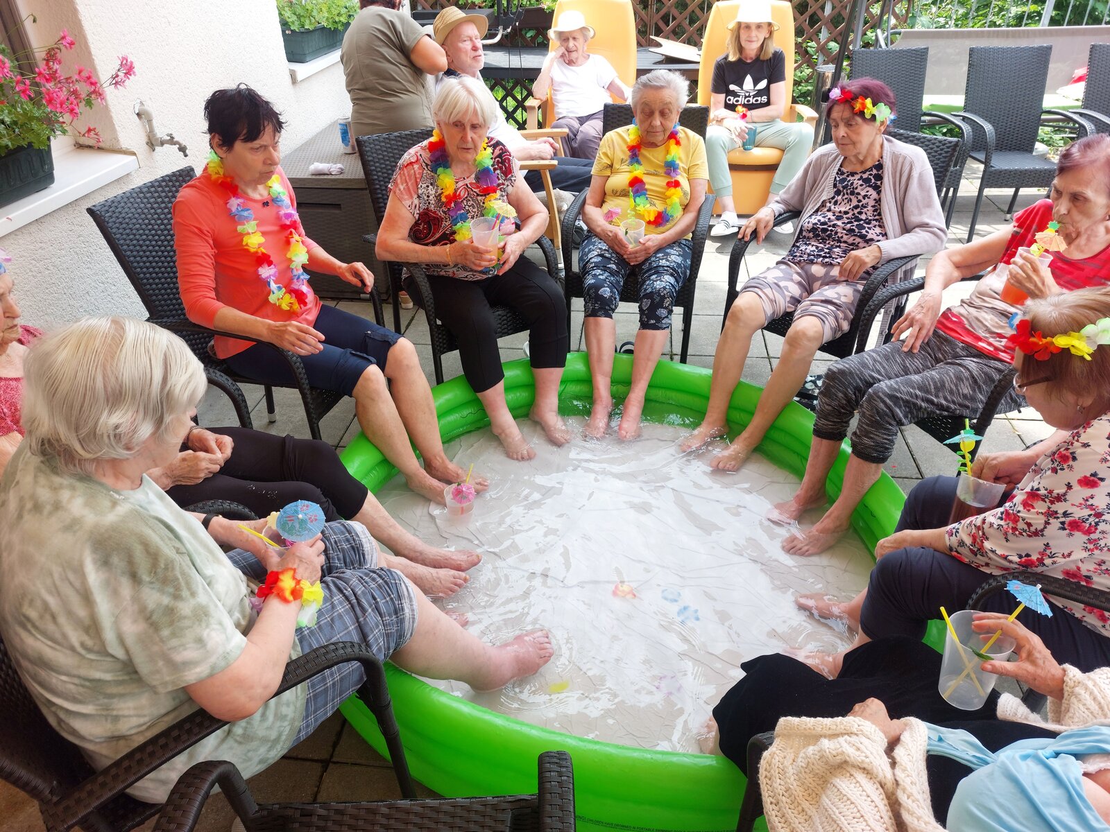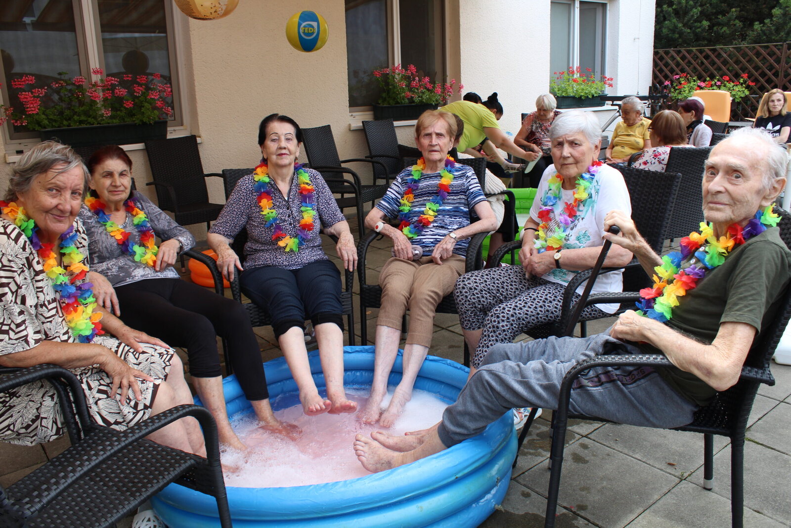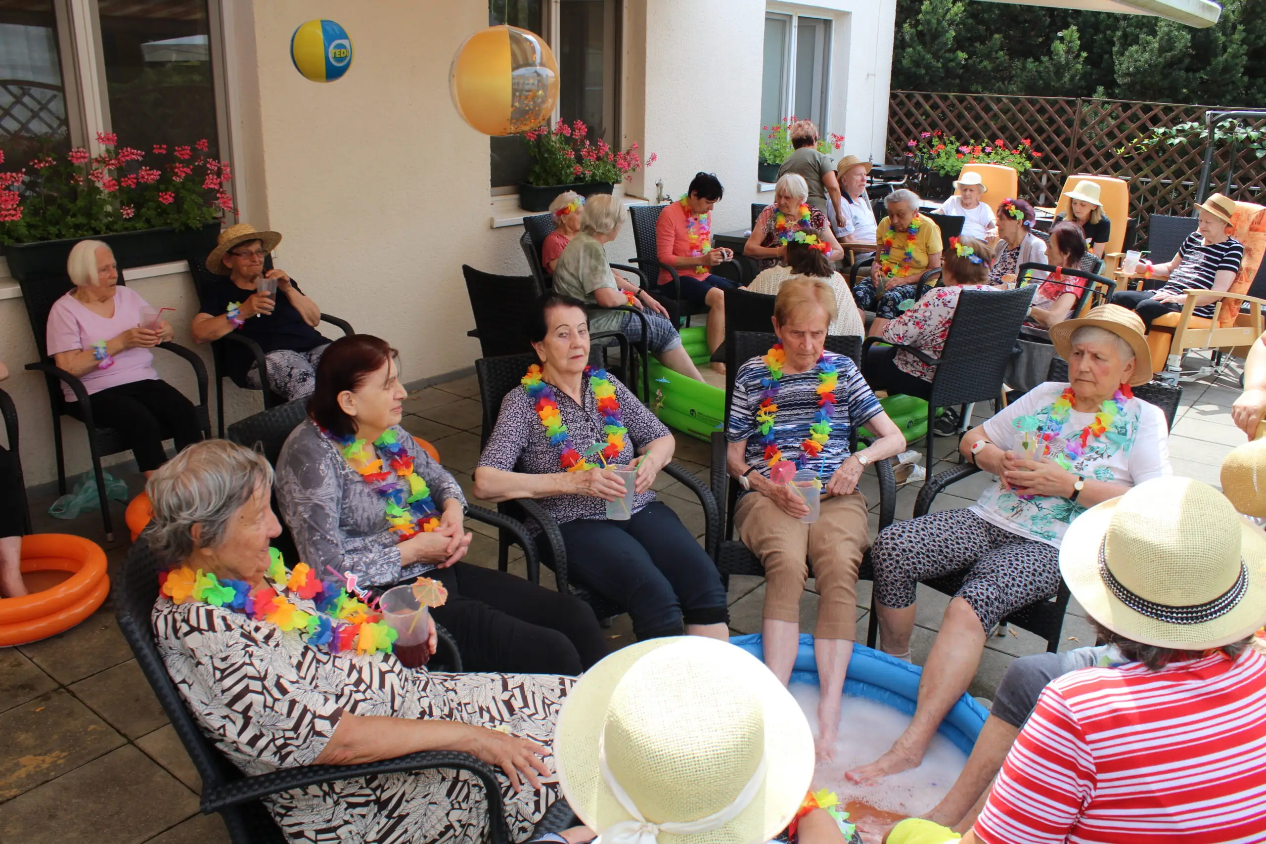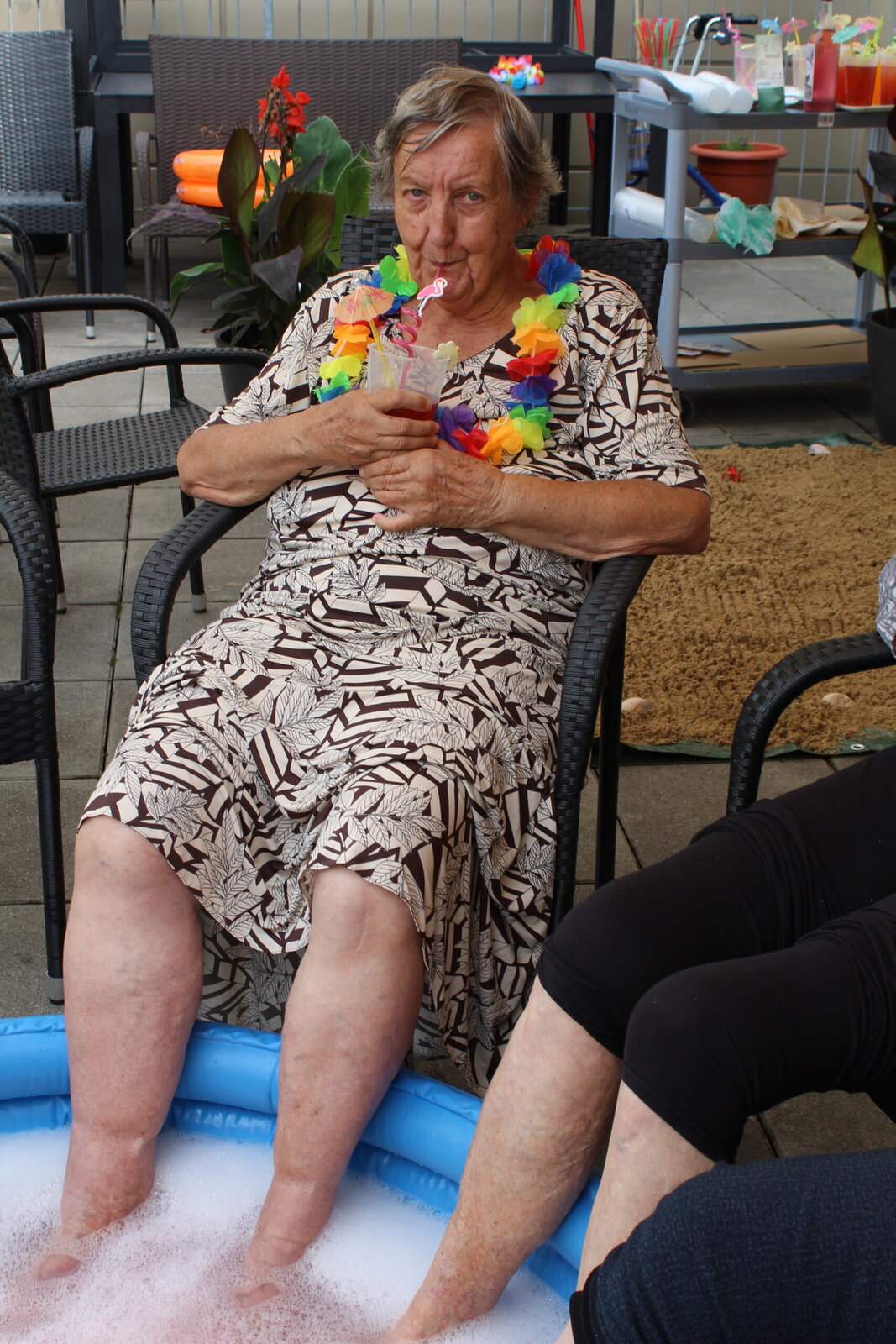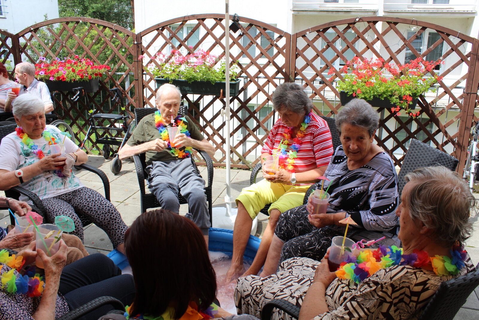 Naše terasa se na jeden den proměnila v pláž, kde nechyběl písek mezi prsty, bazénky na osvěžení nohou a pohodová atmosféra plná smíchu a radosti.