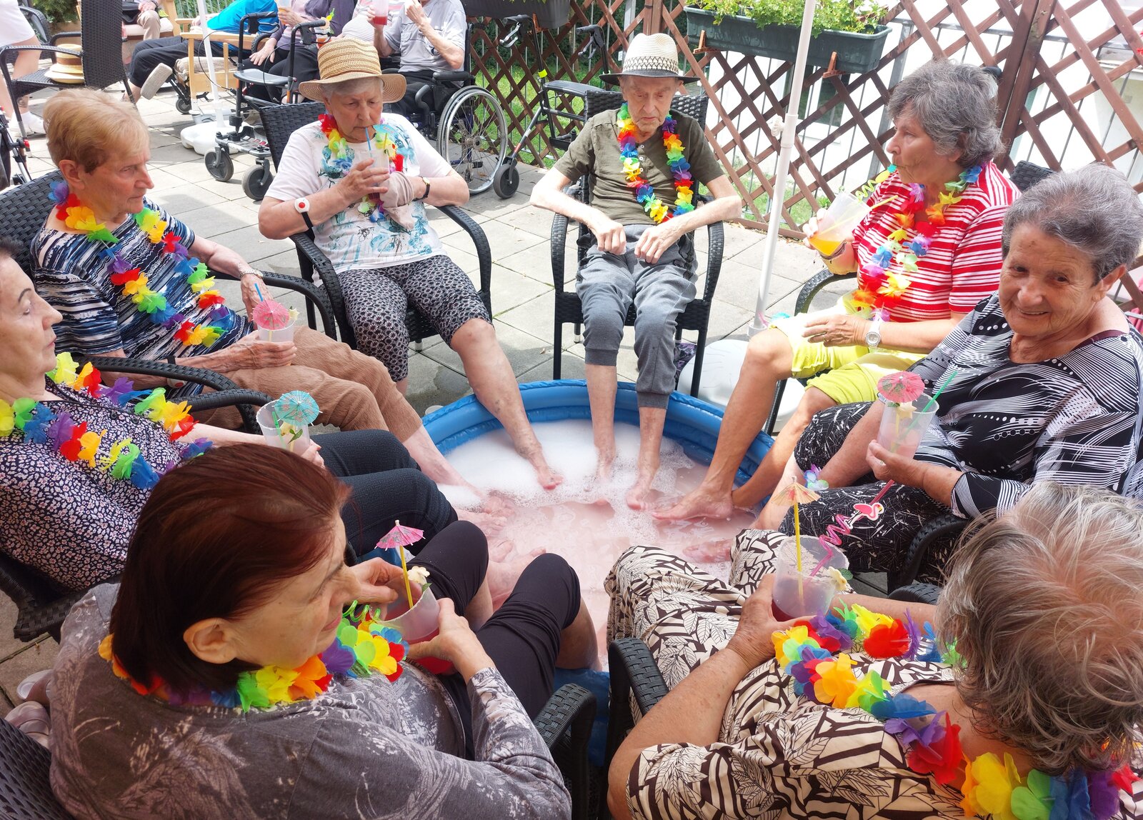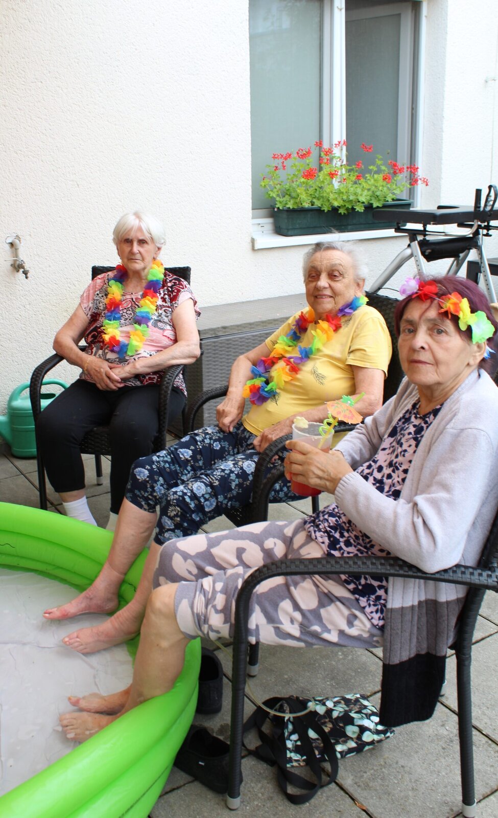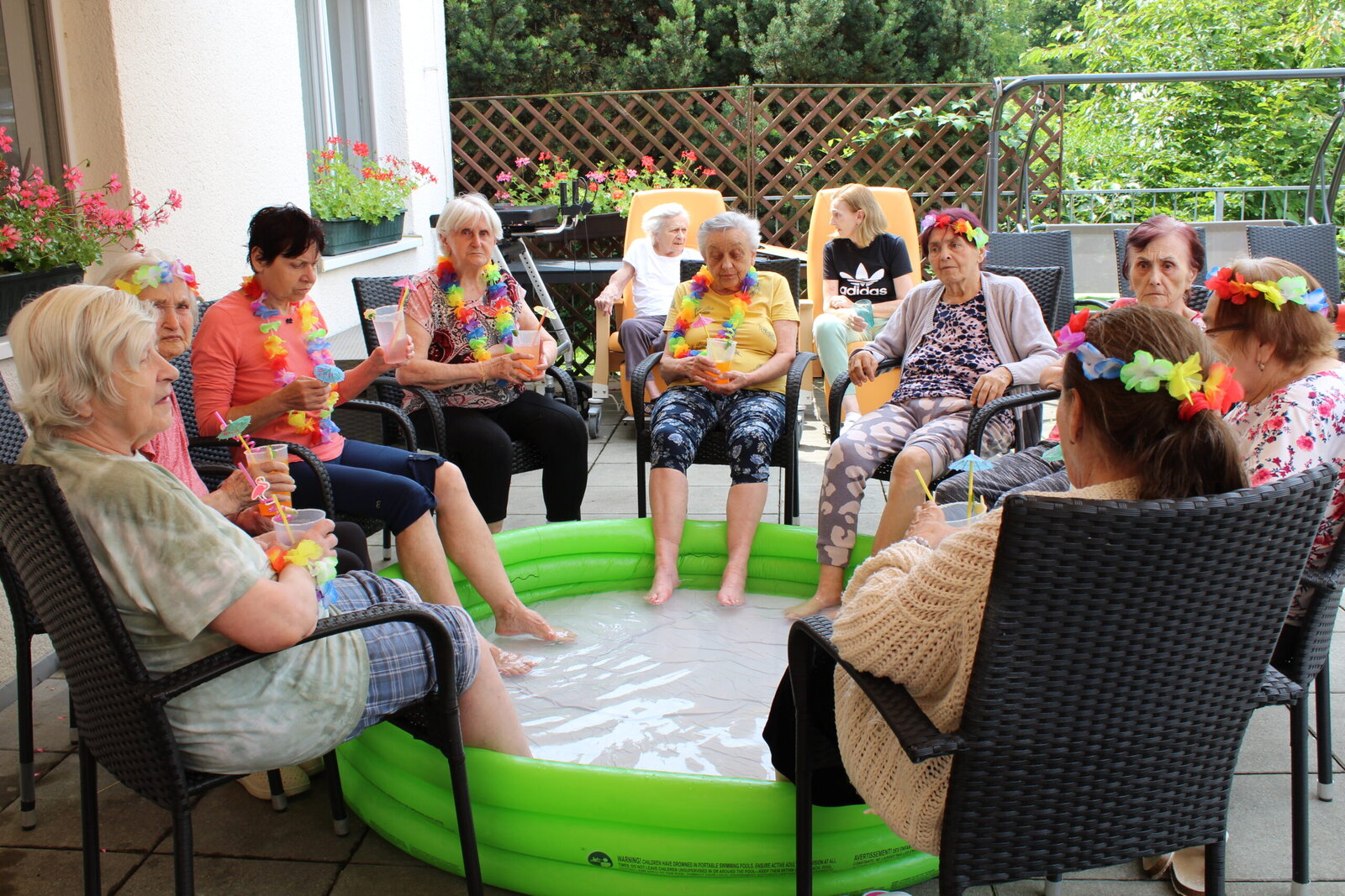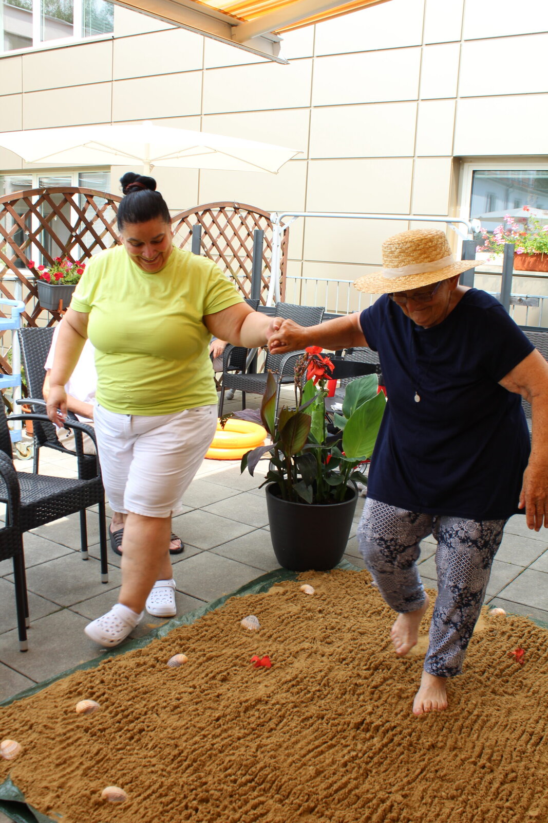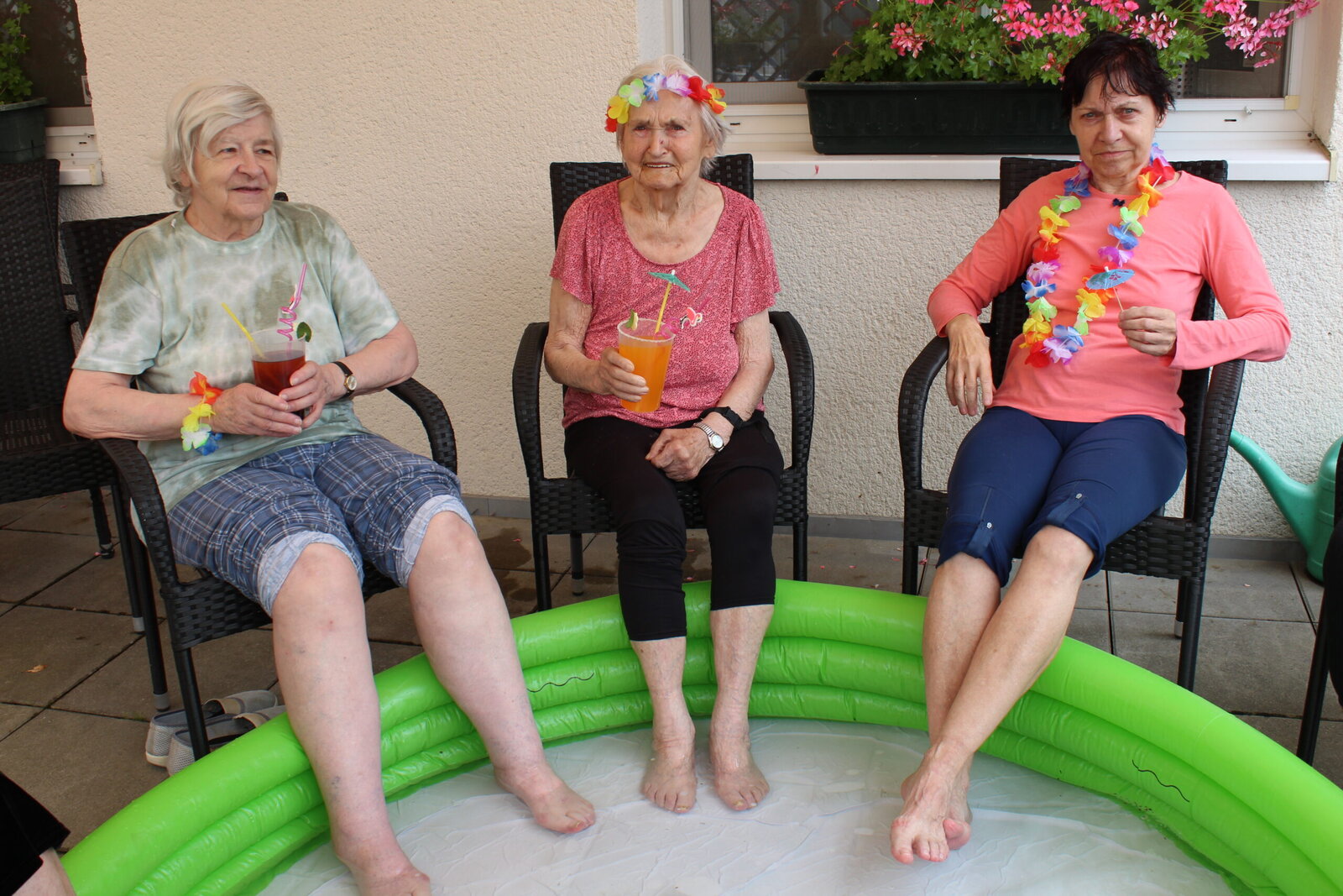 Naše terasa se na jeden den proměnila v pláž, kde nechyběl písek mezi prsty, bazénky na osvěžení nohou a pohodová atmosféra plná smíchu a radosti.