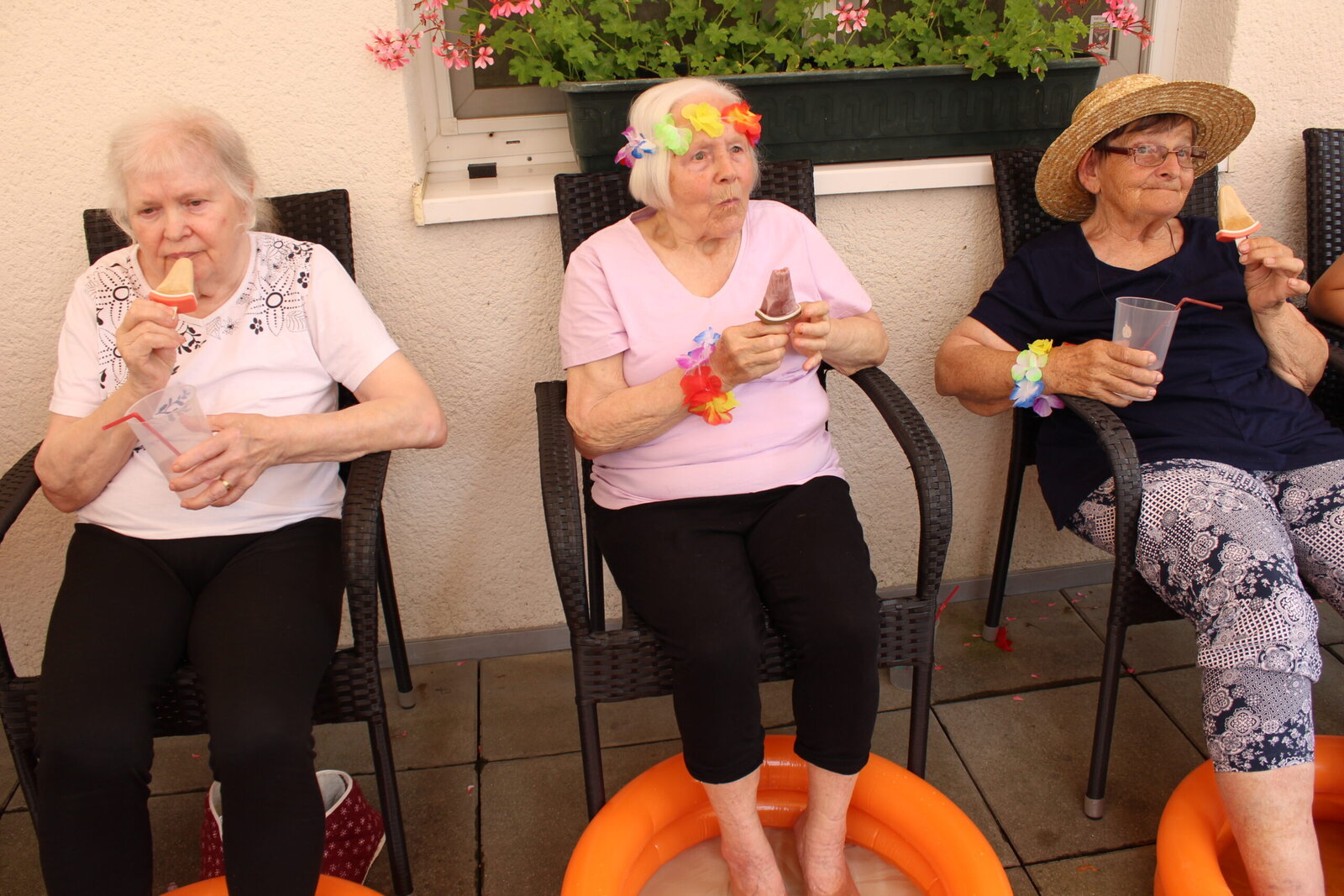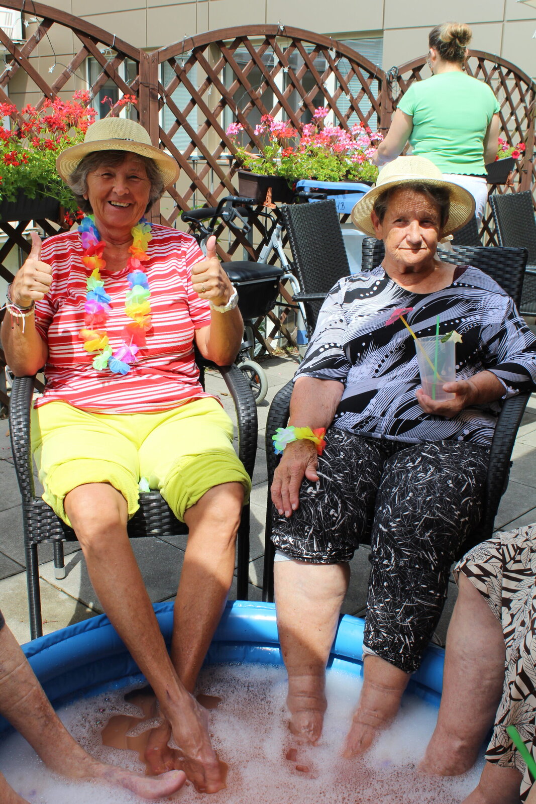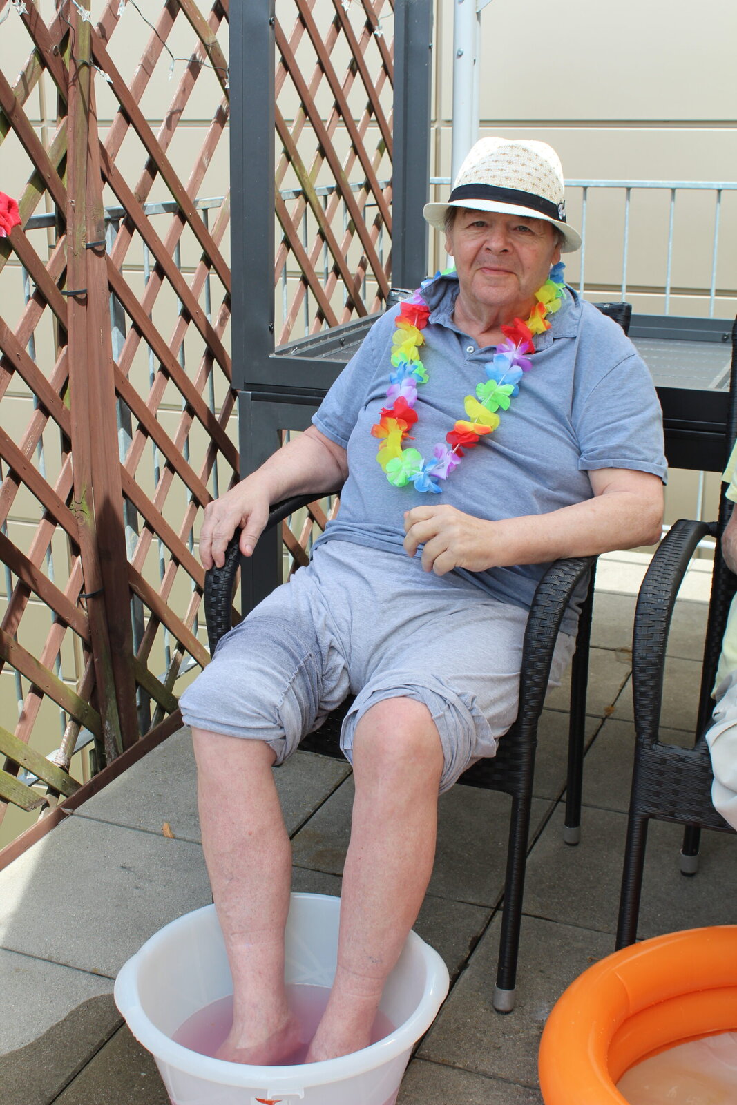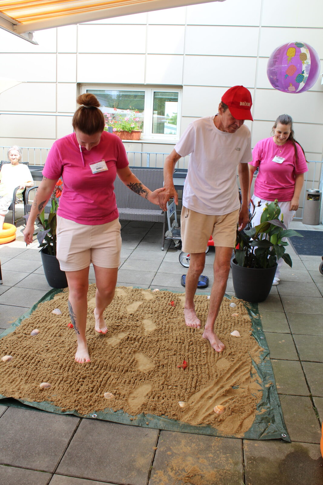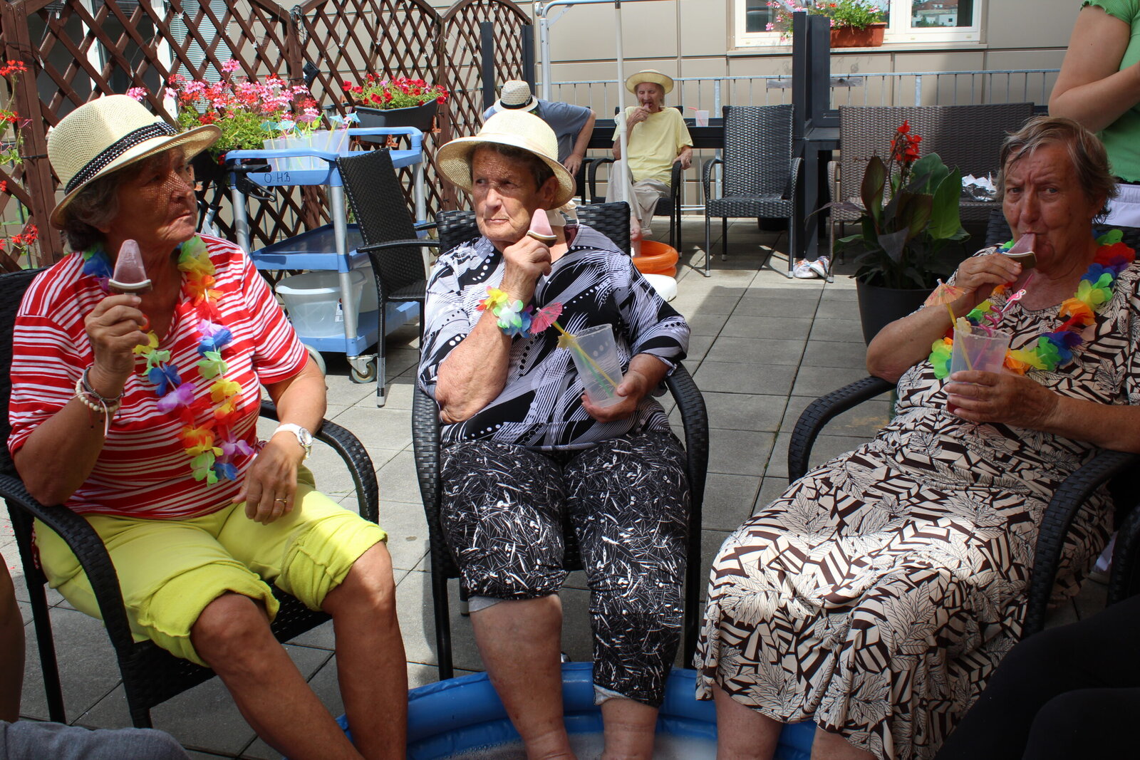 Naše terasa se na jeden den proměnila v pláž, kde nechyběl písek mezi prsty, bazénky na osvěžení nohou a pohodová atmosféra plná smíchu a radosti.