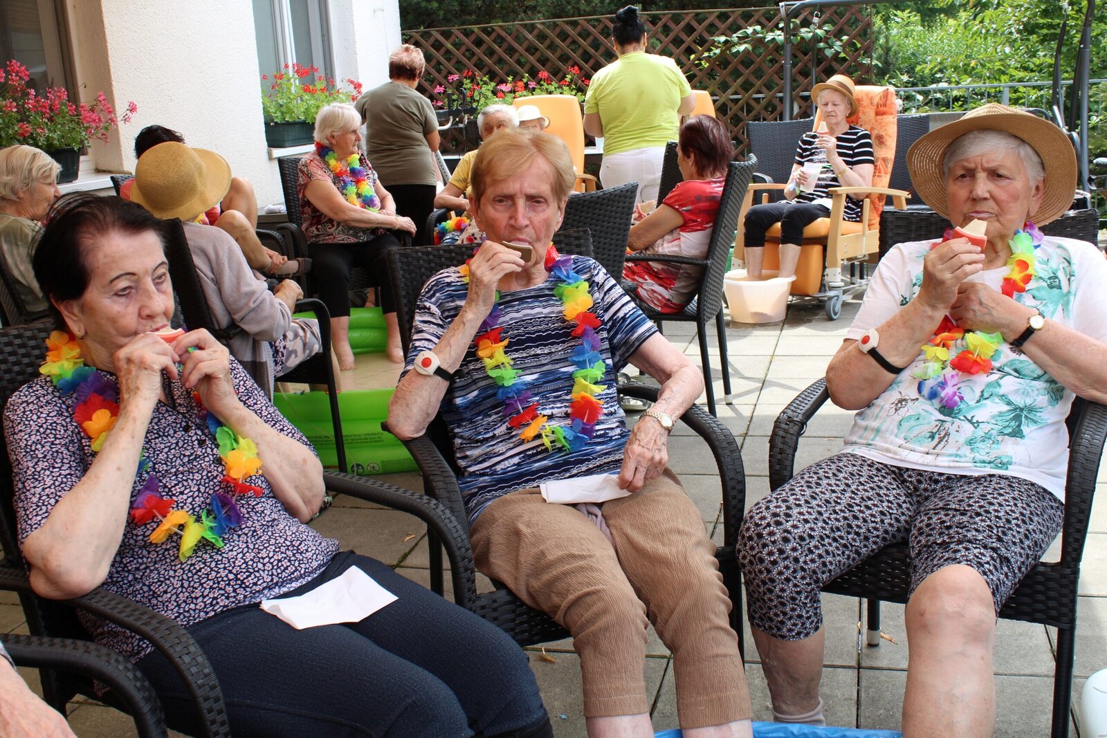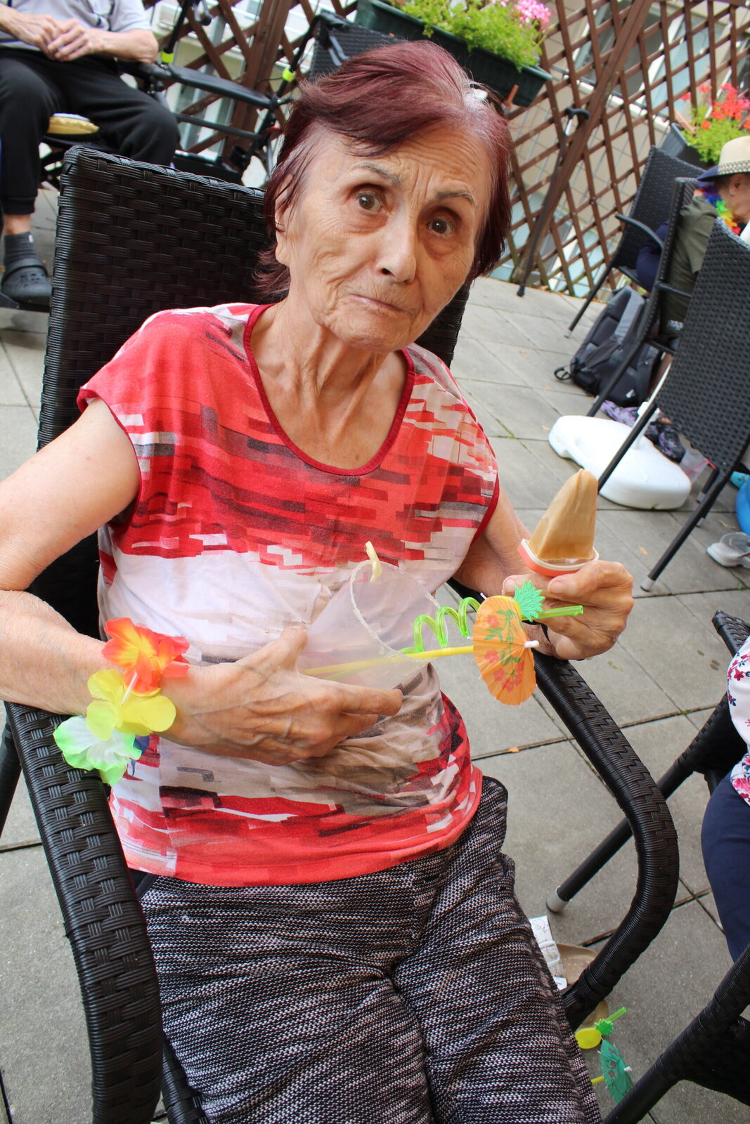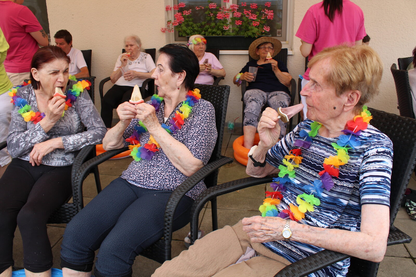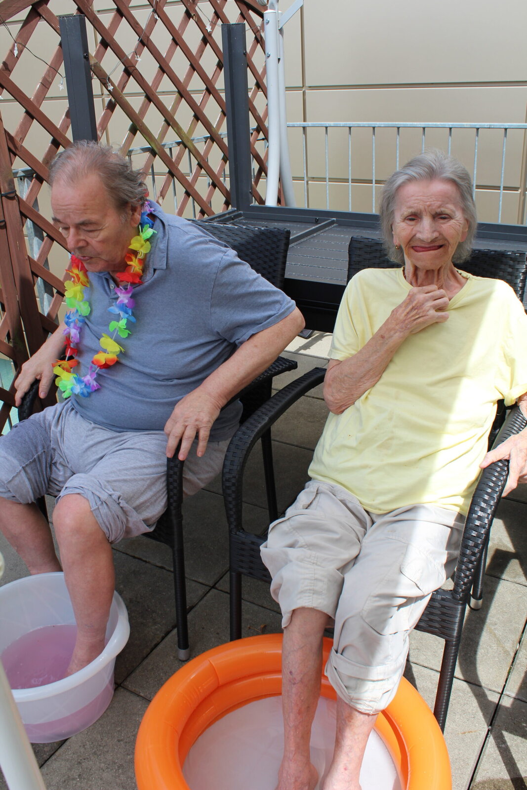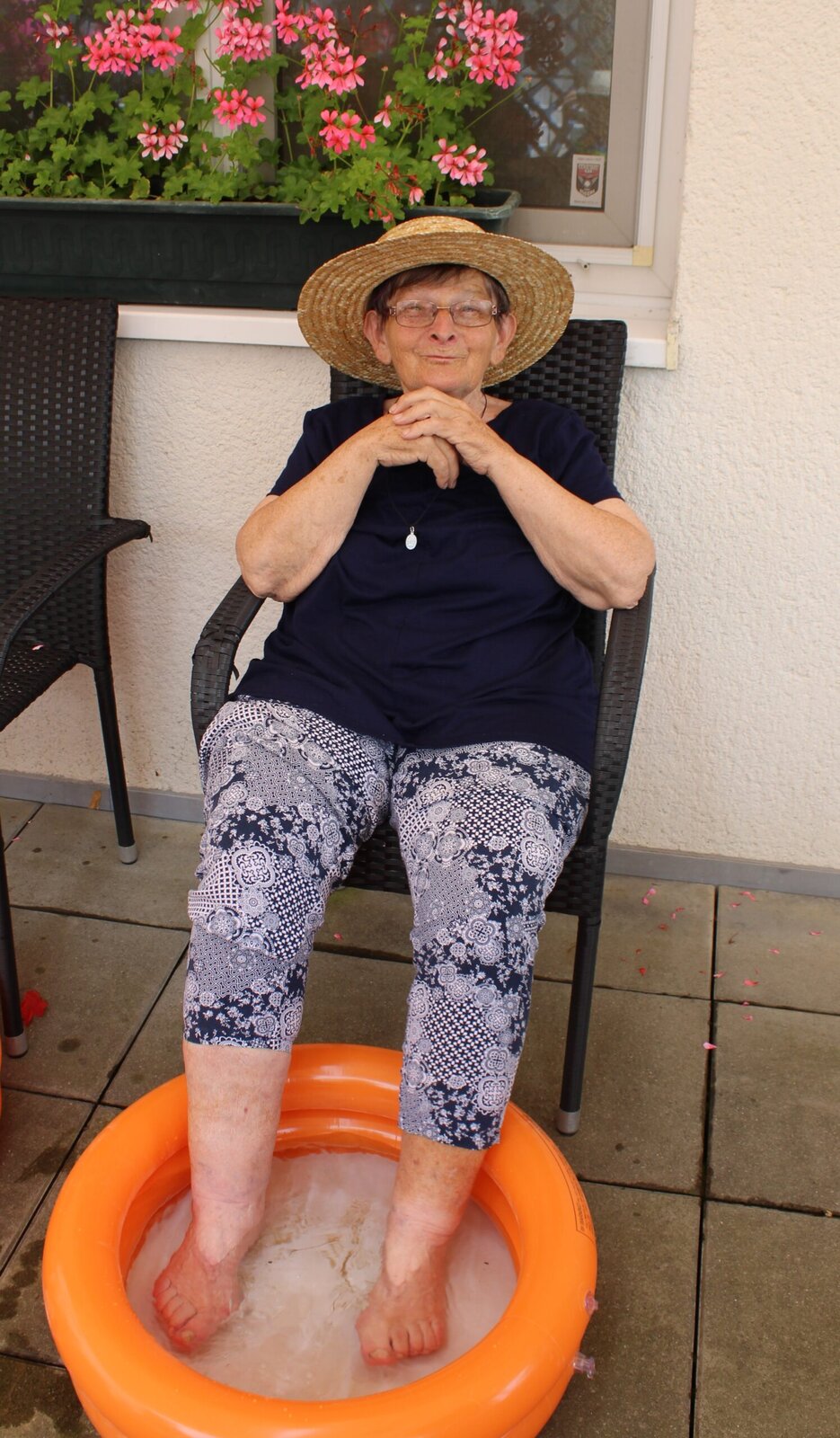 Naše terasa se na jeden den proměnila v pláž, kde nechyběl písek mezi prsty, bazénky na osvěžení nohou a pohodová atmosféra plná smíchu a radosti.