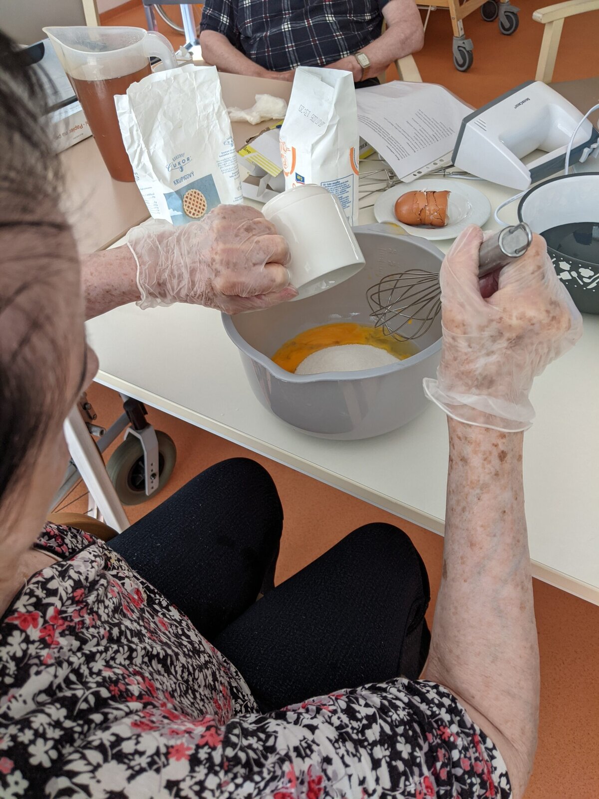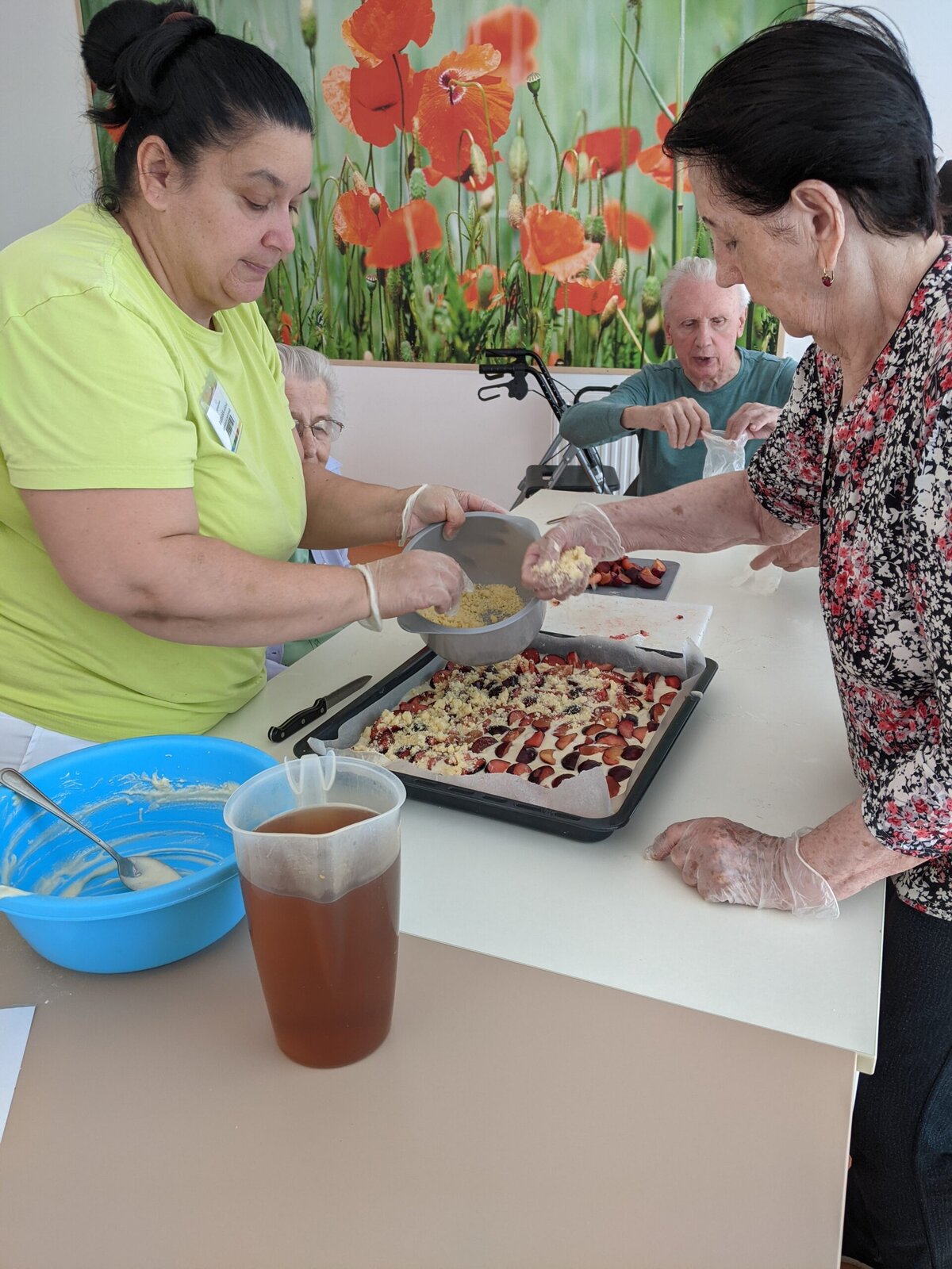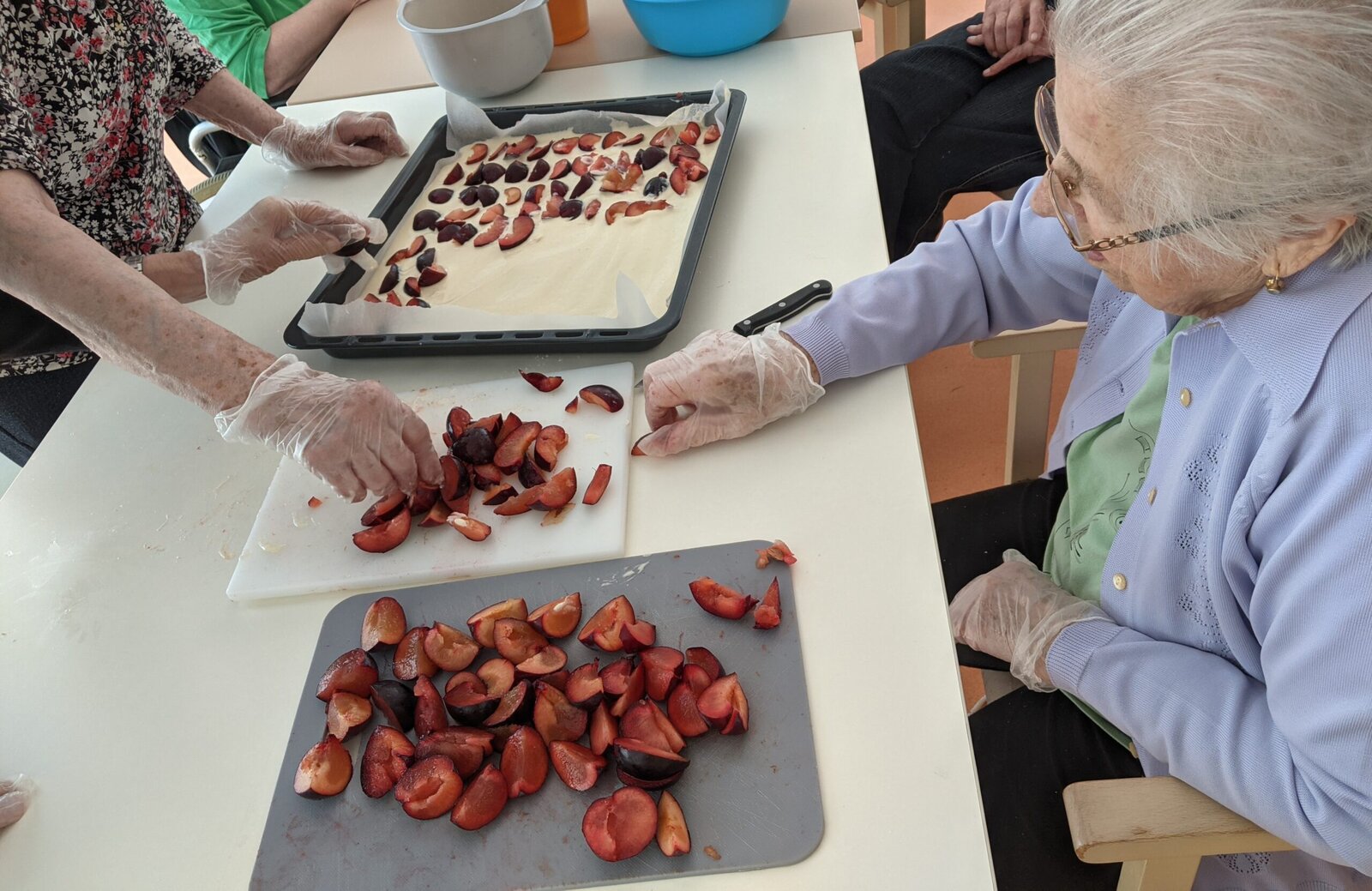 Naši klienti se s radostí zapojili do příprav od vybírání meruněk a blum, přes míchání těsta až po samotné pečení.