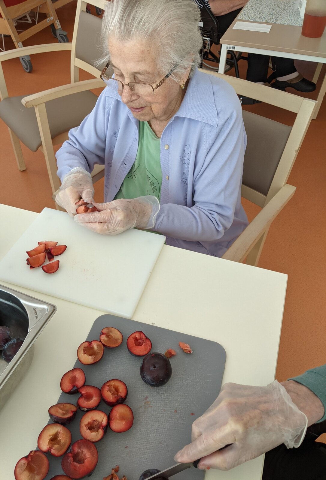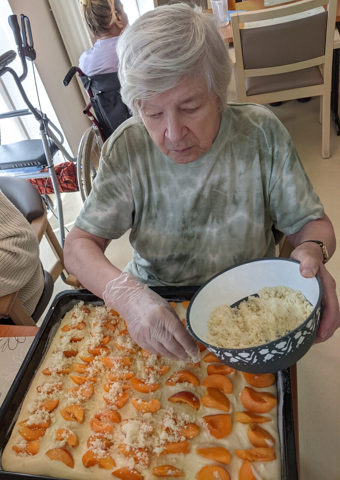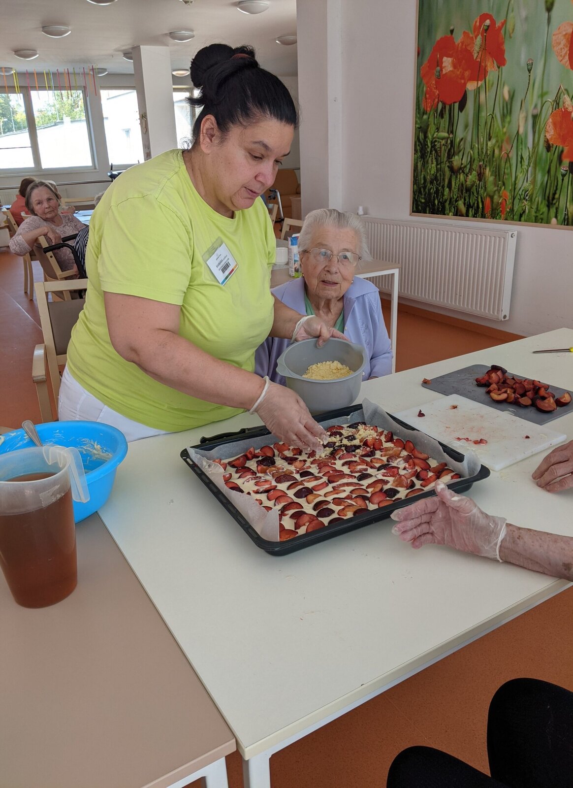 Naši klienti se s radostí zapojili do příprav od vybírání meruněk a blum, přes míchání těsta až po samotné pečení.