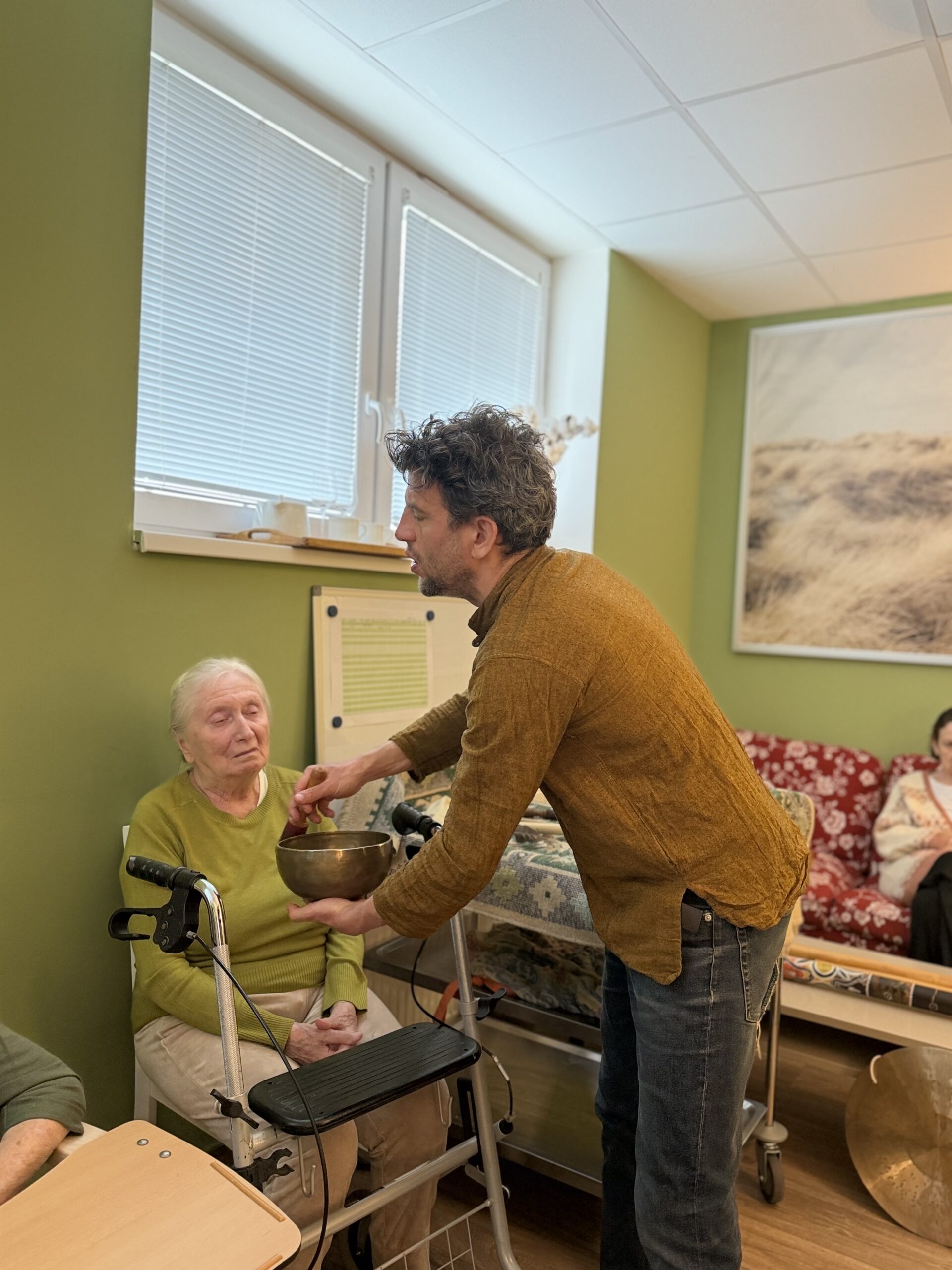 Muzikoterapie u nás není o zpěvu. Je to čas naprostého ticha, vnímání čistých tónů a hlubokého klidu. Celou místností se od začátku line příjemná vůně, která pomáhá všem se okamžitě uvolnit.