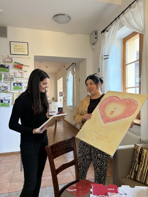 K obrazu, ve kterém jsou mimo jiné obtisknuty prstíky dětí, které ho společně namalovaly, byl připojen i velmi krásný a emotivní vzkaz, který jsme si společně přečetli.
