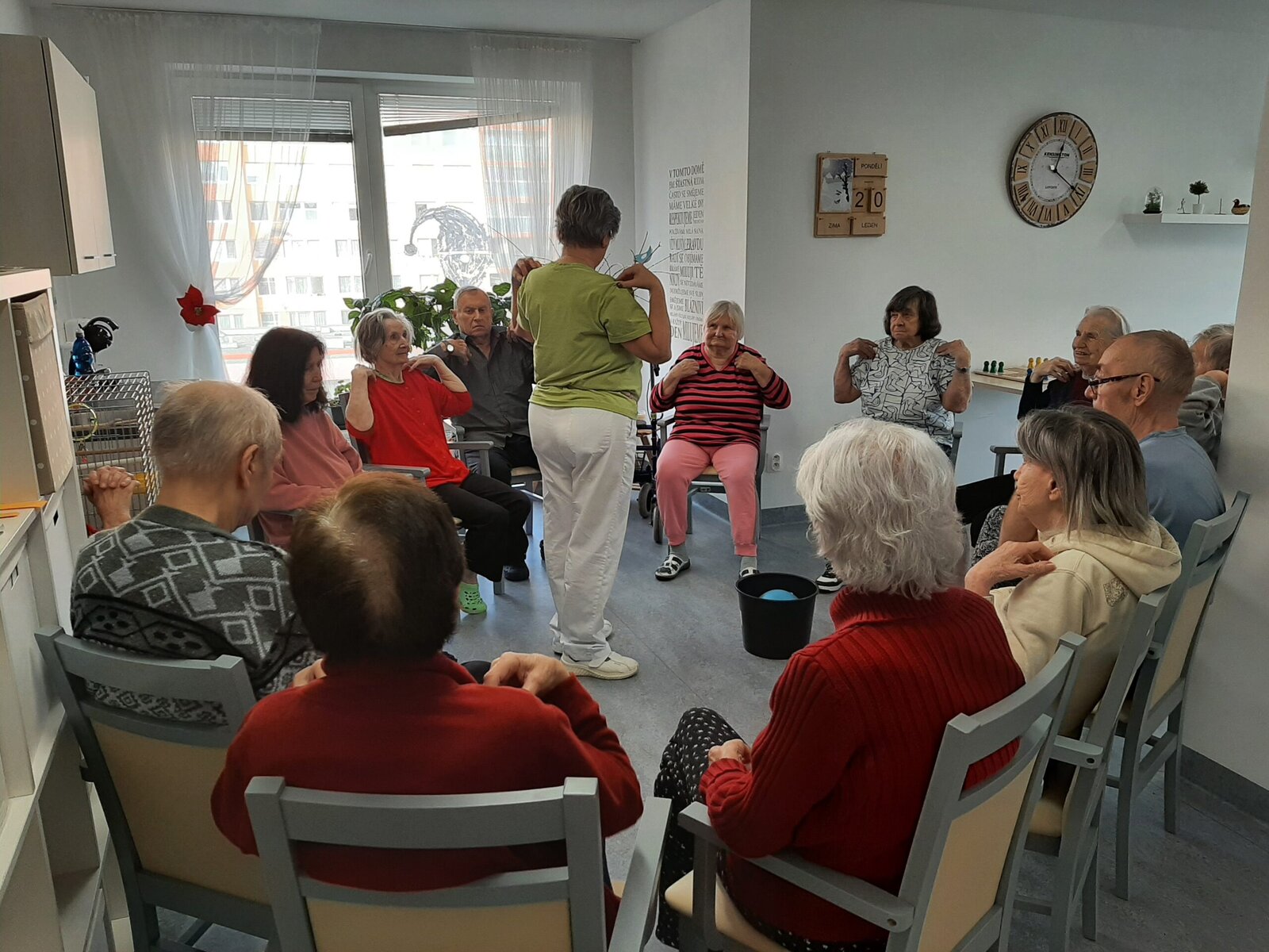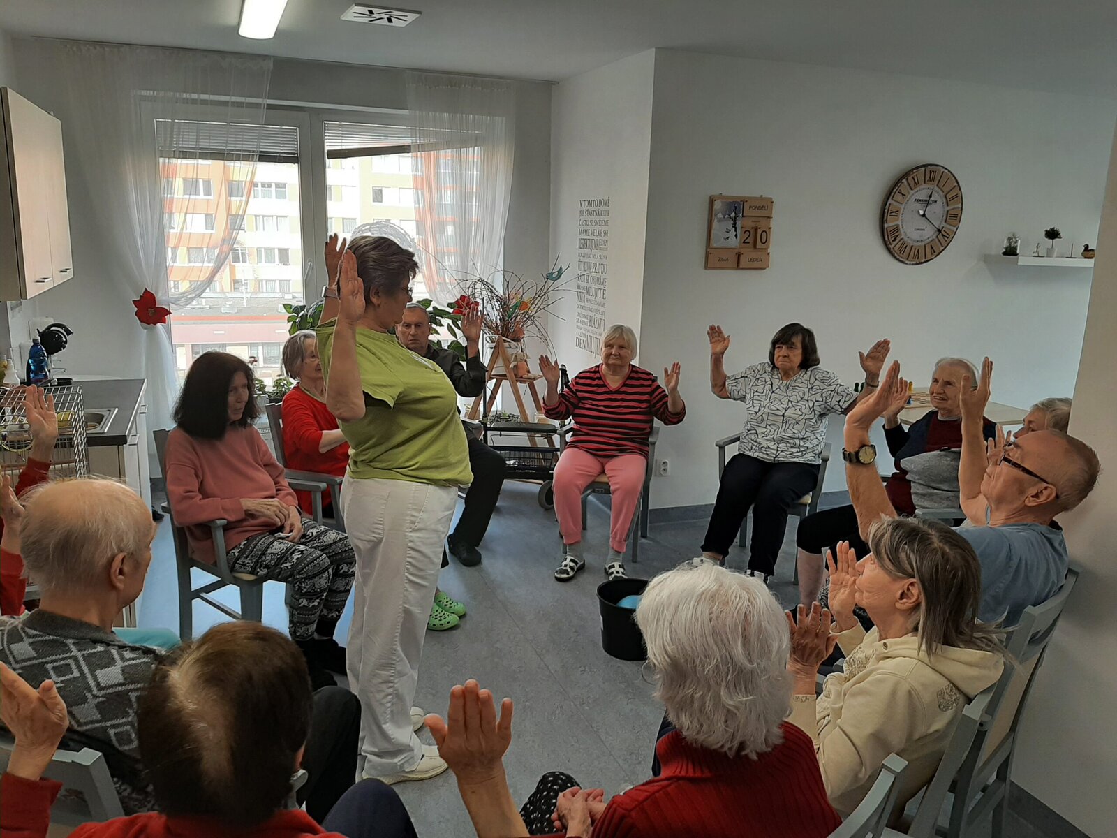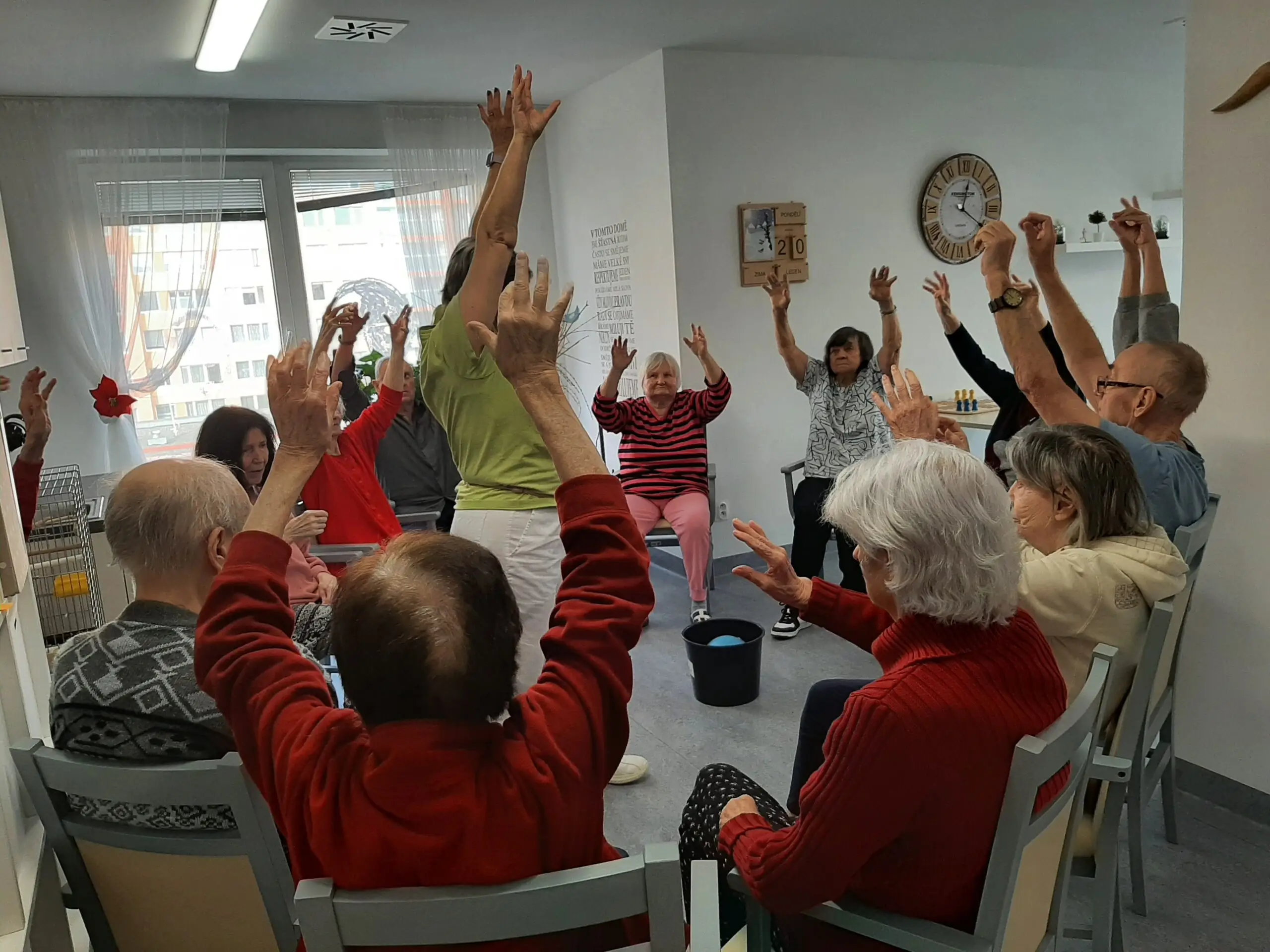 V domově Senevida Jasmín si užíváme vnitřních aktivit. 👍 Společně si tak krátíme čas, než se počasí umoudří a slunce nás bude více hřát. A tak v našem domově stále něco podnikáme. 👌 Pečeme, vaříme, tančíme a zpíváme. No a dneska jsme si opět zacvičili, tentokrát s naší kolegyní Alenkou.