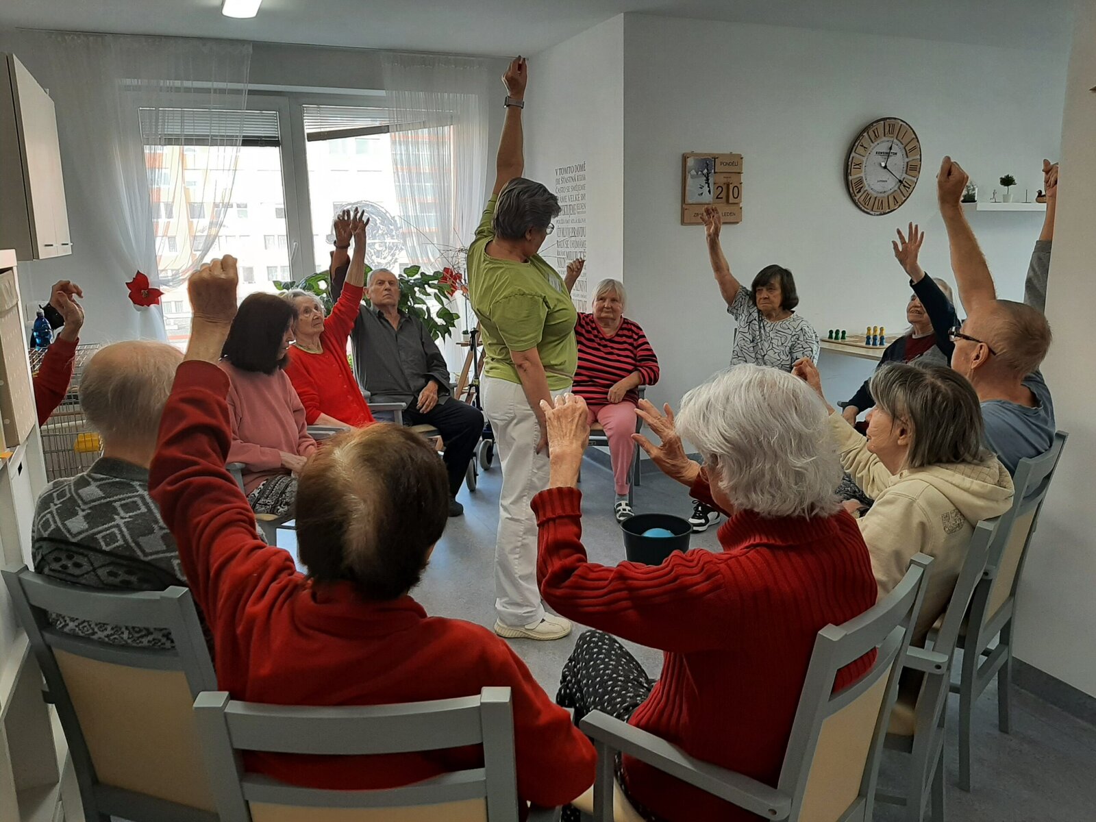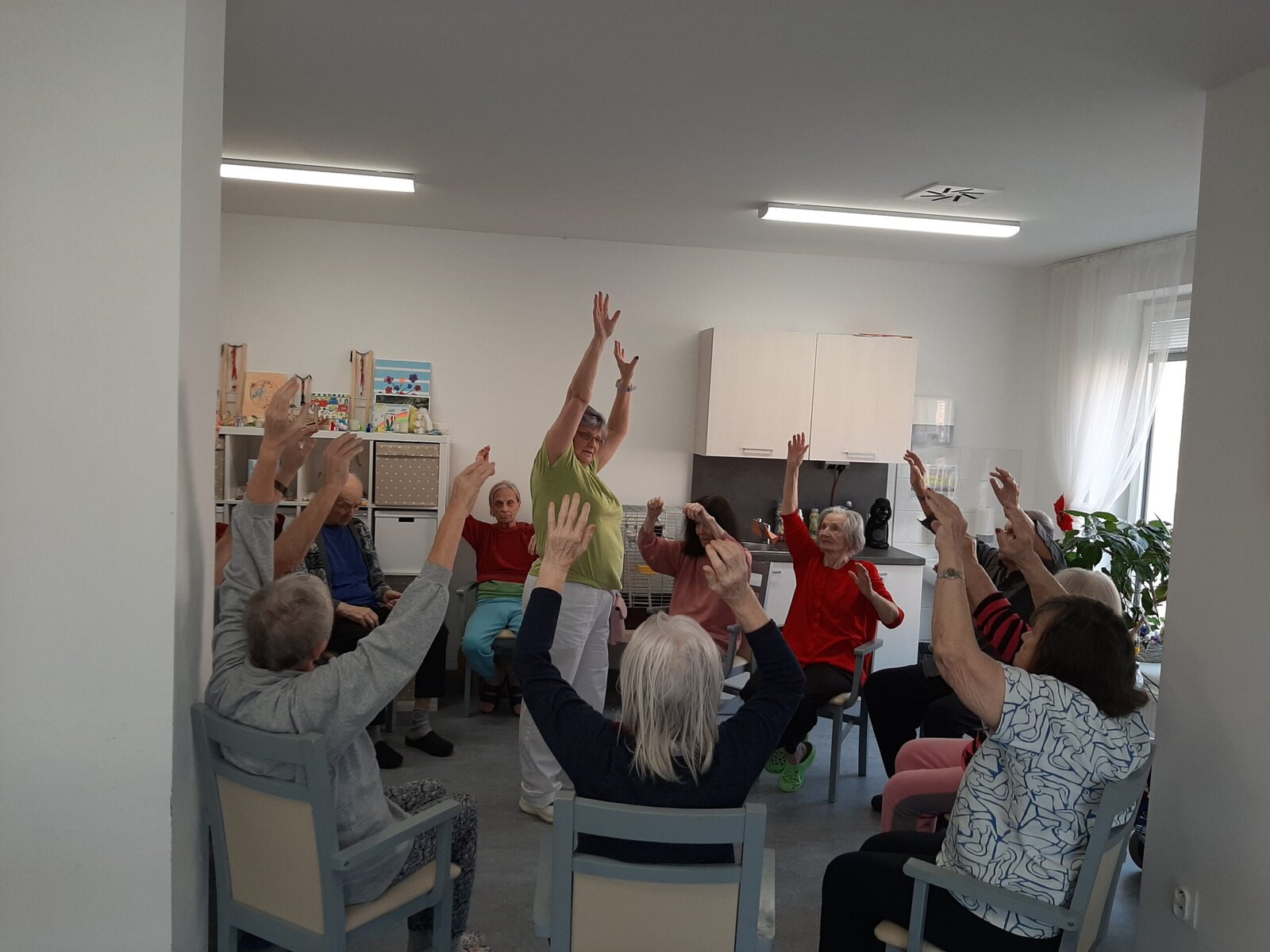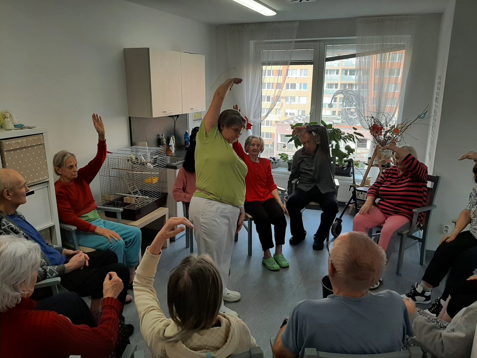 V domově Senevida Jasmín si užíváme vnitřních aktivit. 👍 Společně si tak krátíme čas, než se počasí umoudří a slunce nás bude více hřát. A tak v našem domově stále něco podnikáme. 👌 Pečeme, vaříme, tančíme a zpíváme. No a dneska jsme si opět zacvičili, tentokrát s naší kolegyní Alenkou.