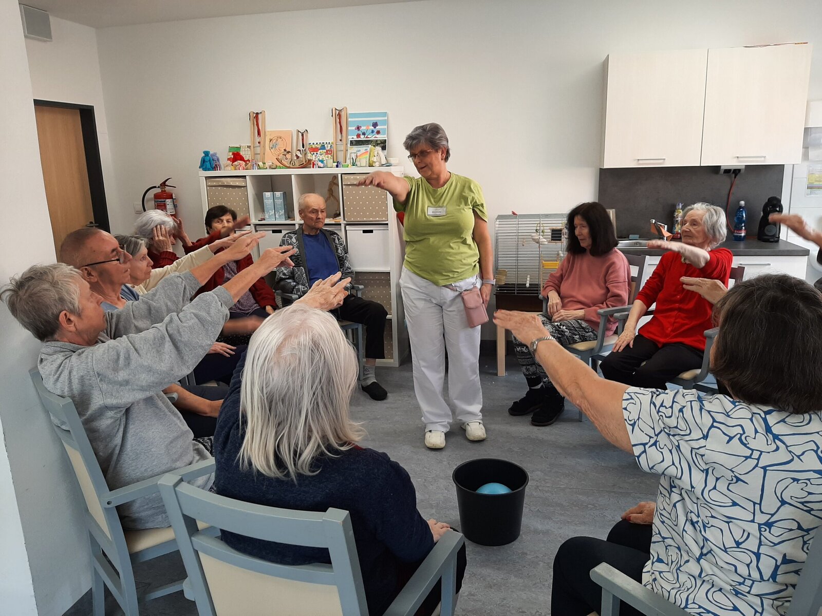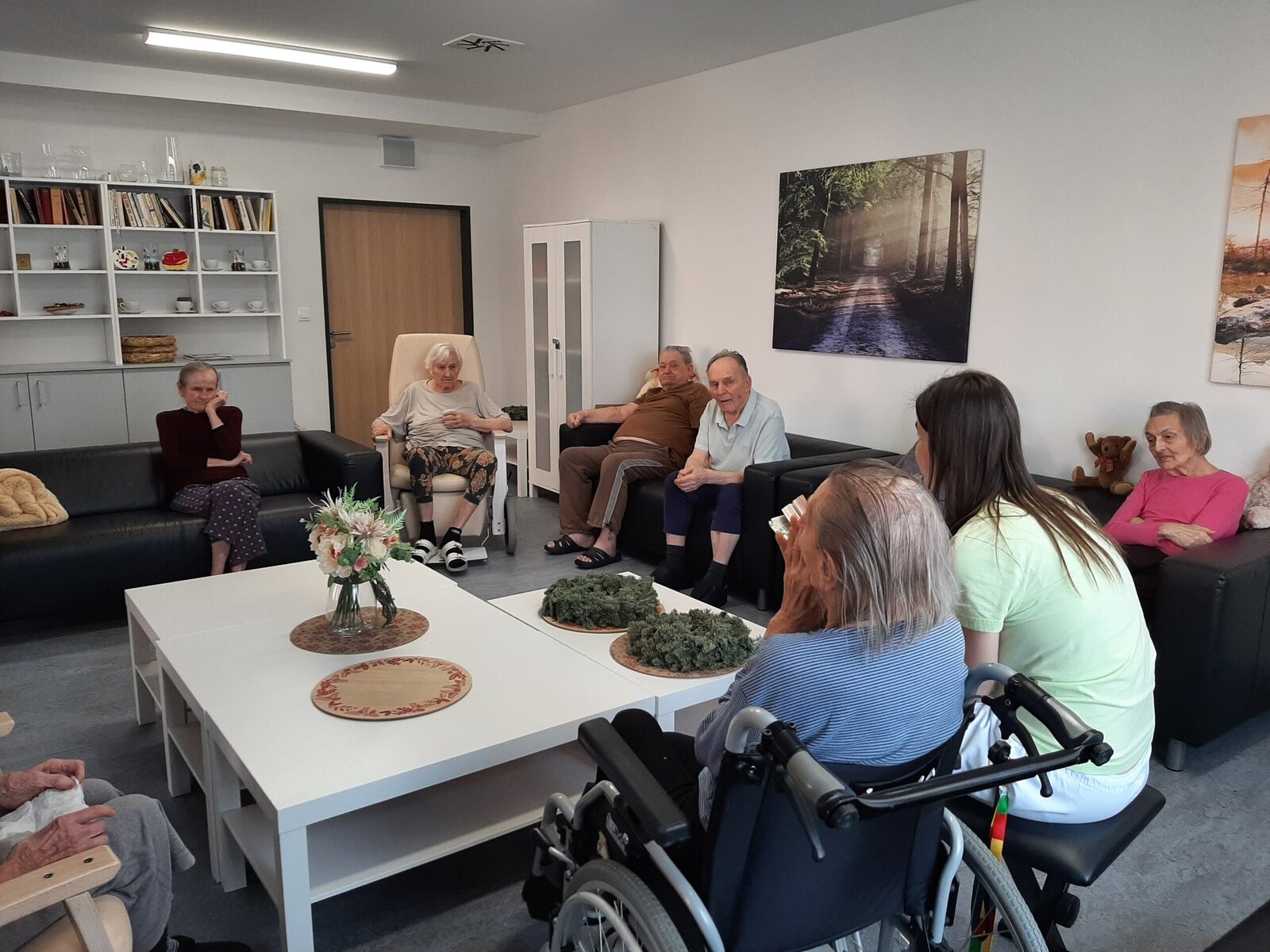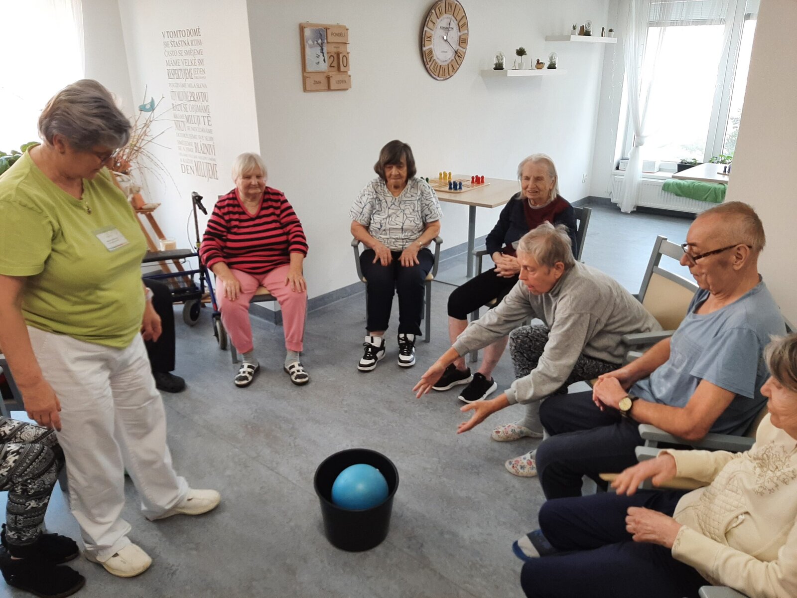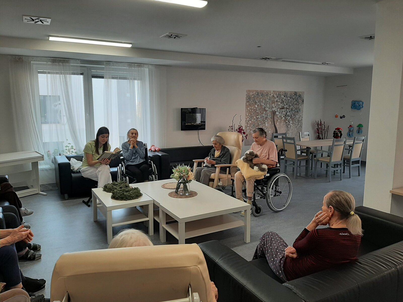 🤸♀️ Zatímco v jedné aktivizační místnosti se podávaly sportovní výkony, tak ve vedlejší aktivizační místnosti probíhal poklidný čtenářský klub 📖 , během kterého naši klienti mohli bezstarostně relaxovat a poslouchat předčítání poutavého příběhu od naší kolegyně Týny. 😊