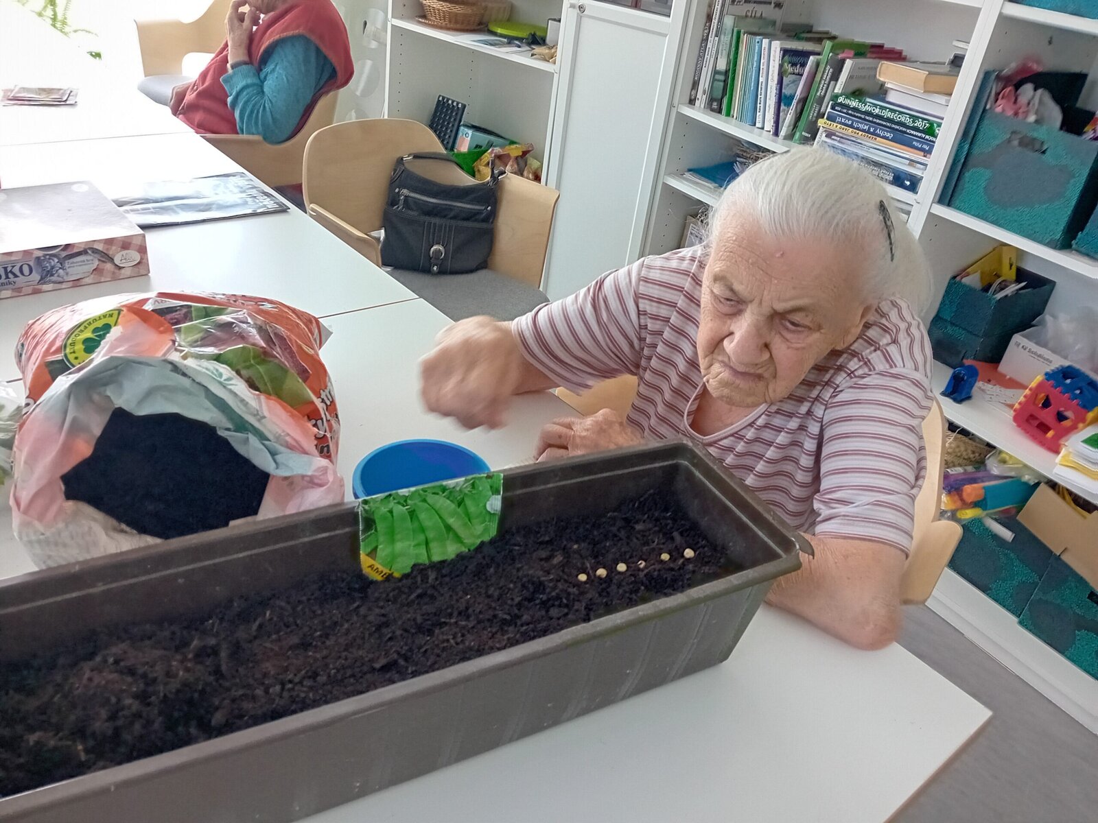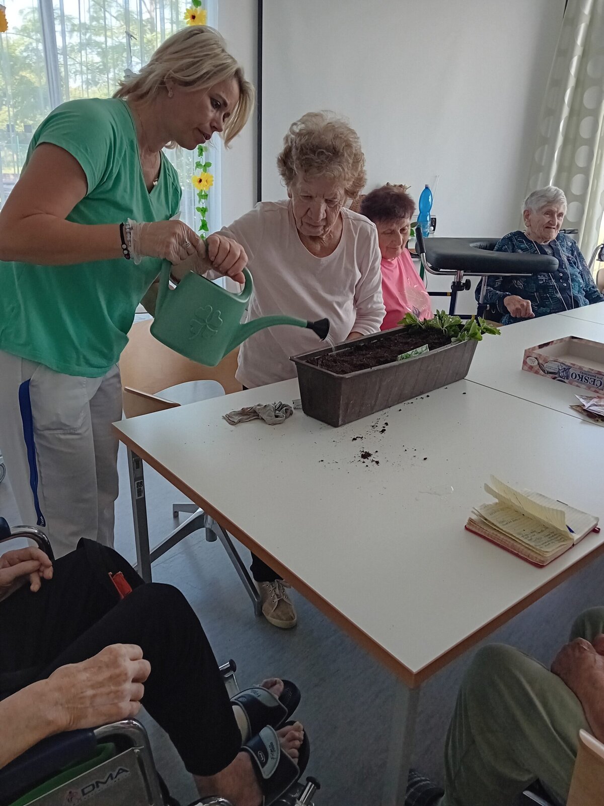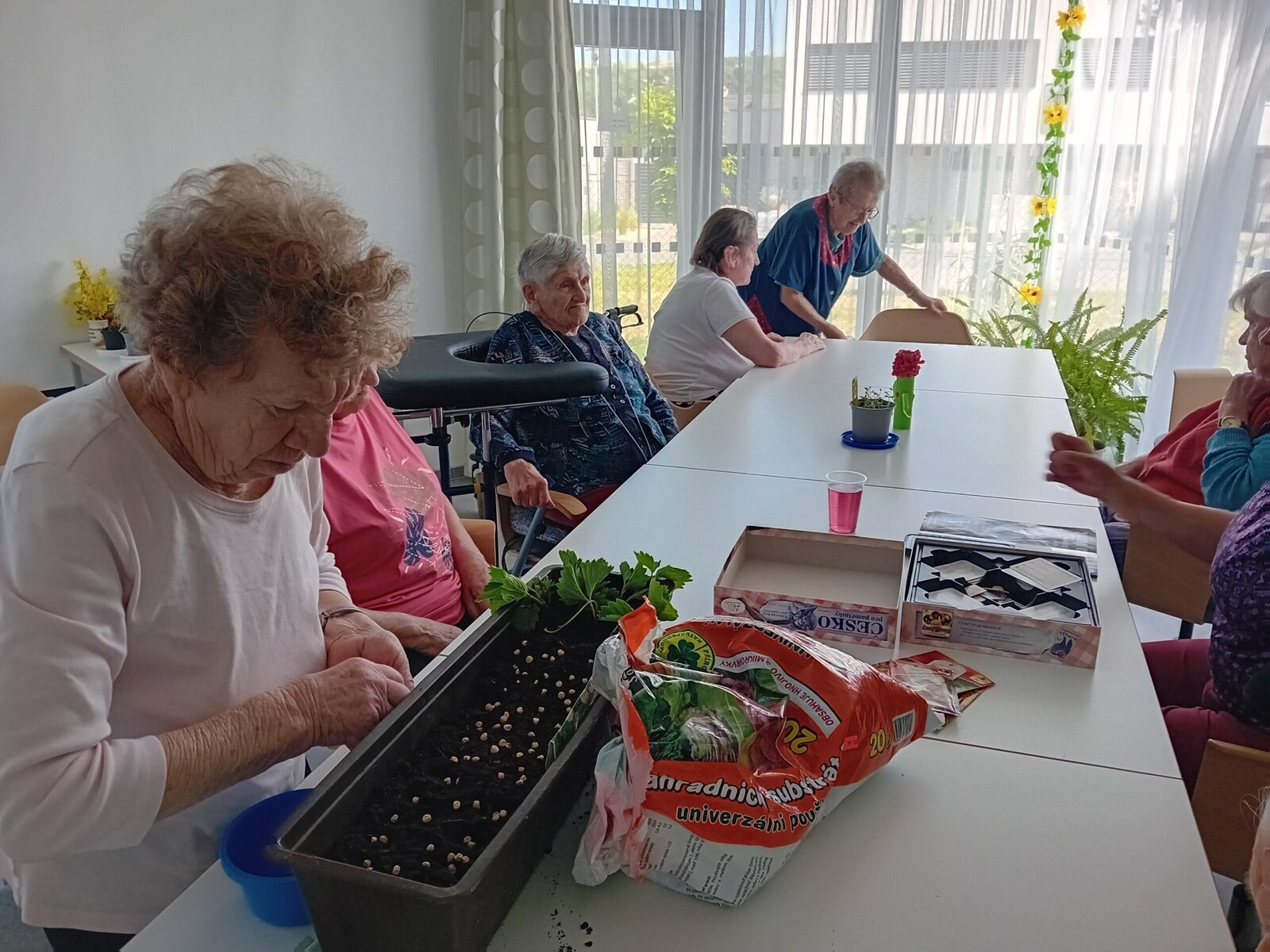 V tomto týdnu jsme v Senevida Slavkov u Brna sázeli hrách a venkovní kytičky. Věnovali jsme se také bylinkám, které se dostaly ke klientům i na jejich pokoje. Mohli jsme tak ochutnat či přivonět k nim, nebo se pustit do vybarvování květinových mandal.