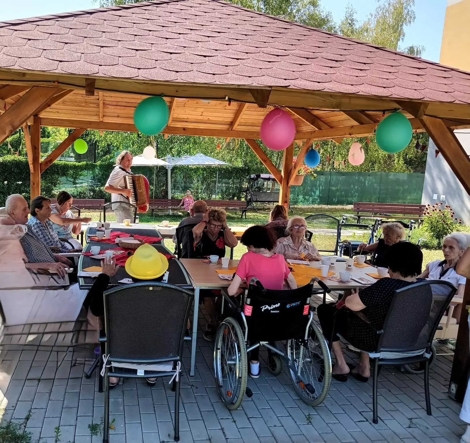 Včerejší den jsme v Senevida Modřany věnovali oslavám. Pod naším zahradním altánem se konala oslava narozenin klientů v měsíci červenci. Počasí bylo krásné, podával se dort a káva, k poslechu a tanci hrál nikdo jiný než náš oblíbený harmonikář Radek Anděl. Společně s oslavenci trávili čas na zahradě i ostatní klienti našeho zařízení, kteří přišli popřát a oslavit to společně s námi.