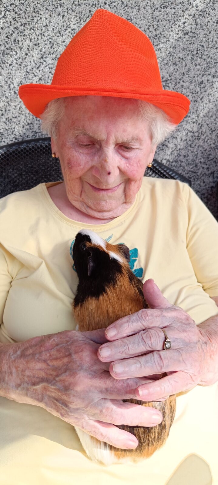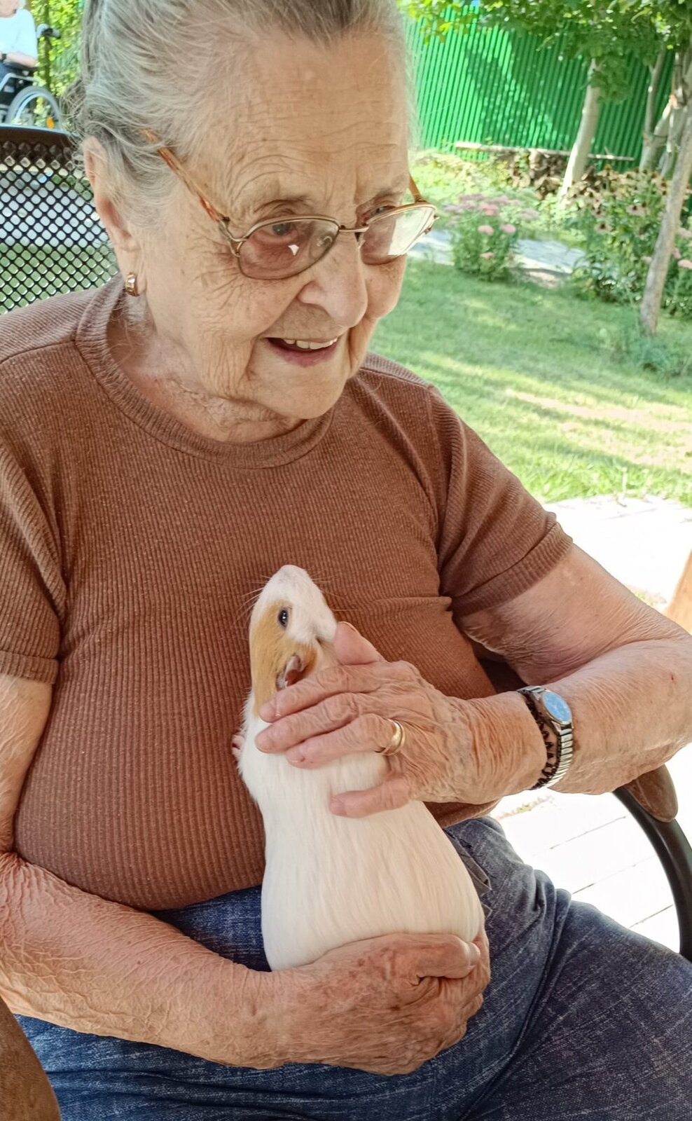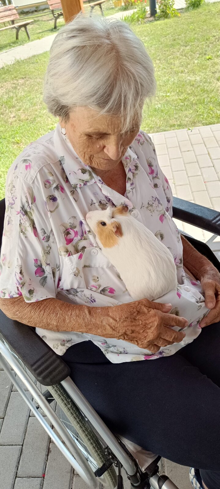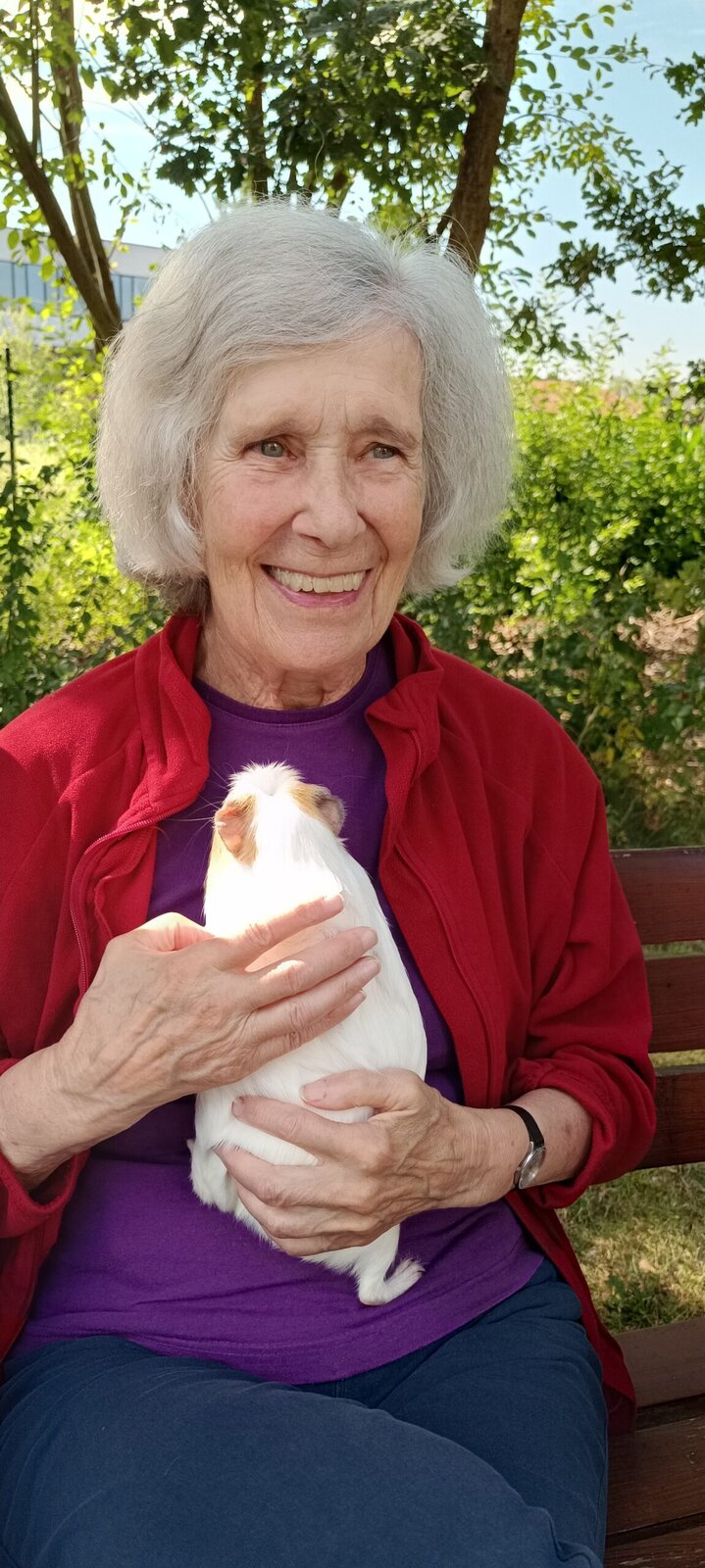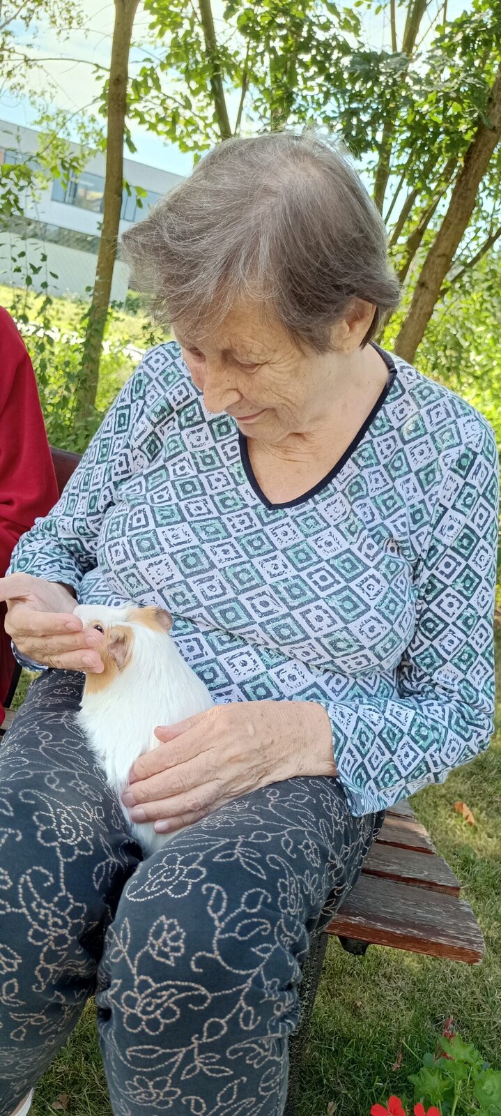 Tento týden v Senevida Modřany máme díky horkému počasí spíše odpočinkový. ☀️☀️ V dopoledních hodinách trávíme čas na zahrádce, kde nám tentokrát dělali společnost naši chlupatí kamarádi Jozífek, Čiperka a Sněženka. ❤️🐹 Setkání s nimi je vždy plné radosti, lásky a něžného pohlazení. 👴👵