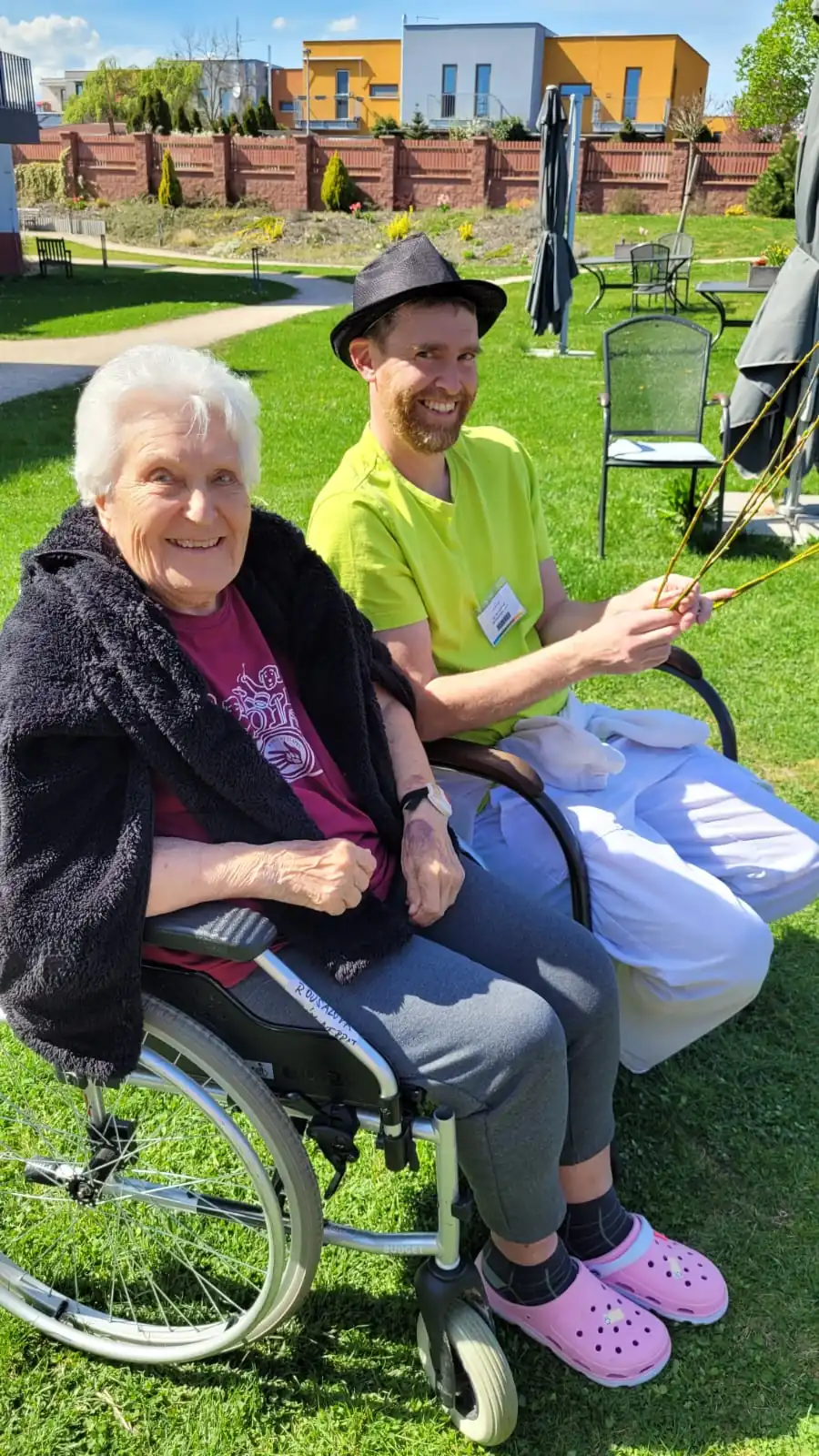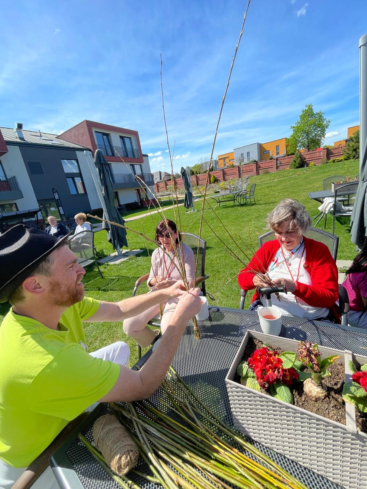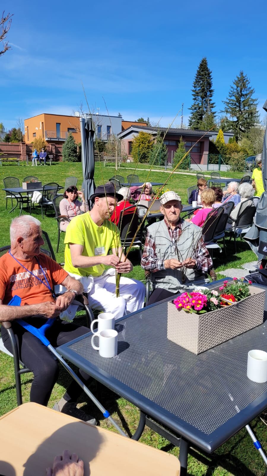 Jaro v plném proudu na zahradě Senevida Černošice. Naše krásná zahrada ožila velikonočním pletením pomlázek pod širým nebem a s oblíbeným AZ kvízem, který rozproudil nejen mozkové závity, ale i spoustu smíchu. Kombinace pohybu, tvoření a zábavného tréninku paměti přinesla našim klientům radost, energii a příjemné chvíle strávené na čerstvém vzduchu.
