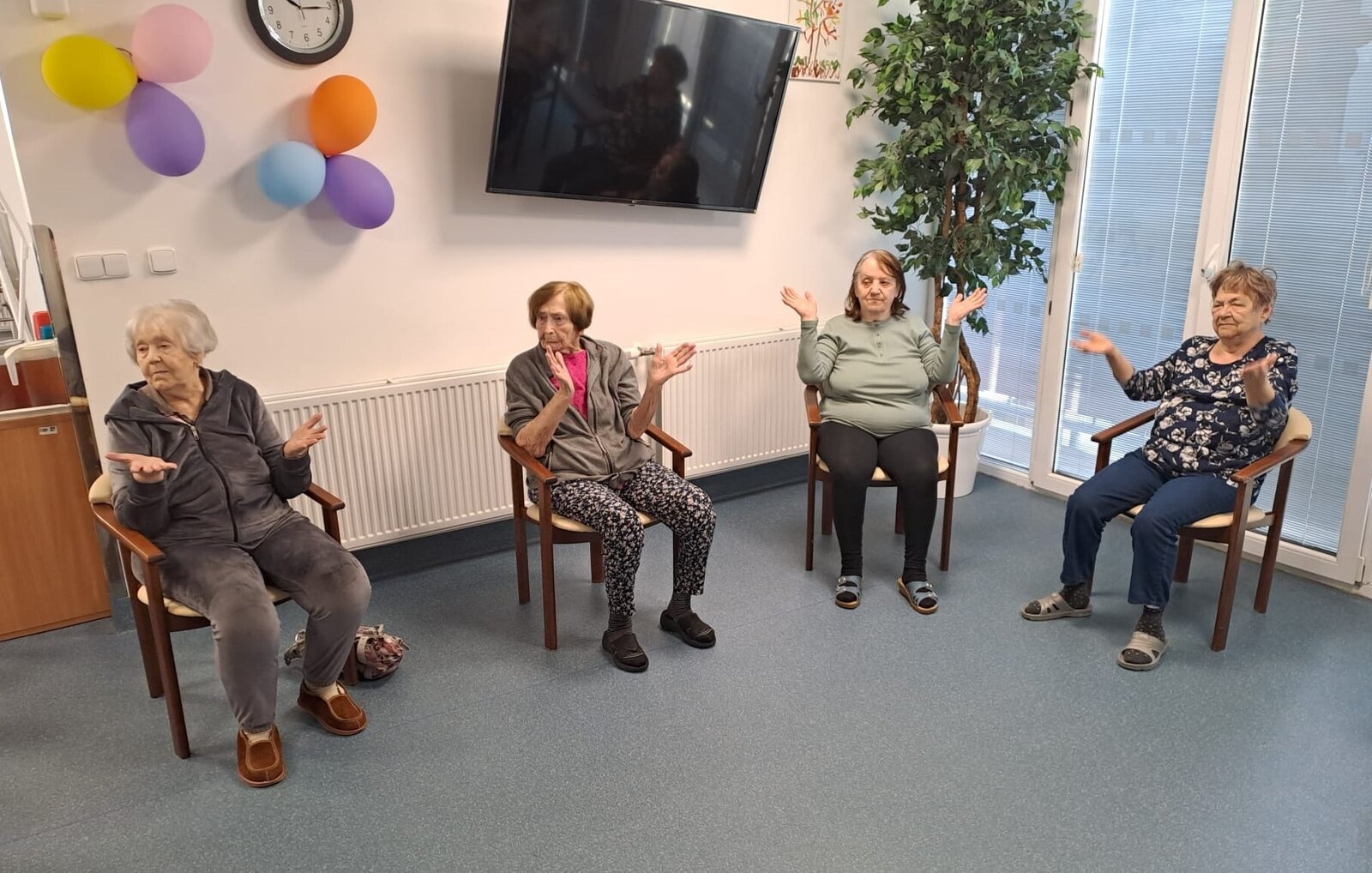 Jedno výjimečné úterní dopoledne přineslo klientům Senevida Ostrov nejen změnu rutiny, ale i nadšení a radost.😀 Skupina fyzioterapeutek z Ambulance Penta s.r.o. Karlovy Vary zavítala do našeho zařízení, aby pro klienty připravila speciální setkání zaměřené na pohybové aktivity. Cvičení bylo navrženo s ohledem na specifické potřeby a možnosti všech našich klientů.