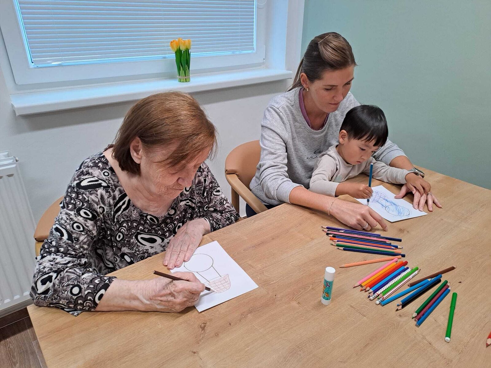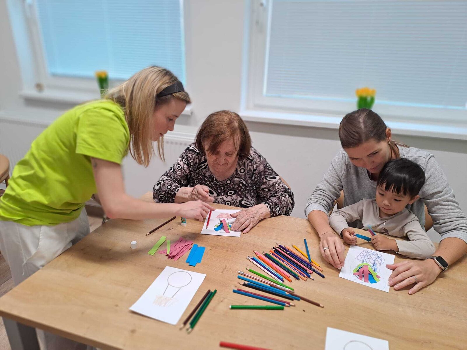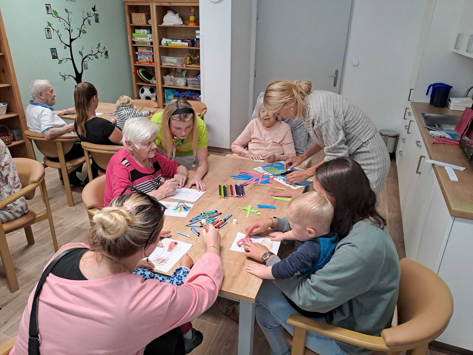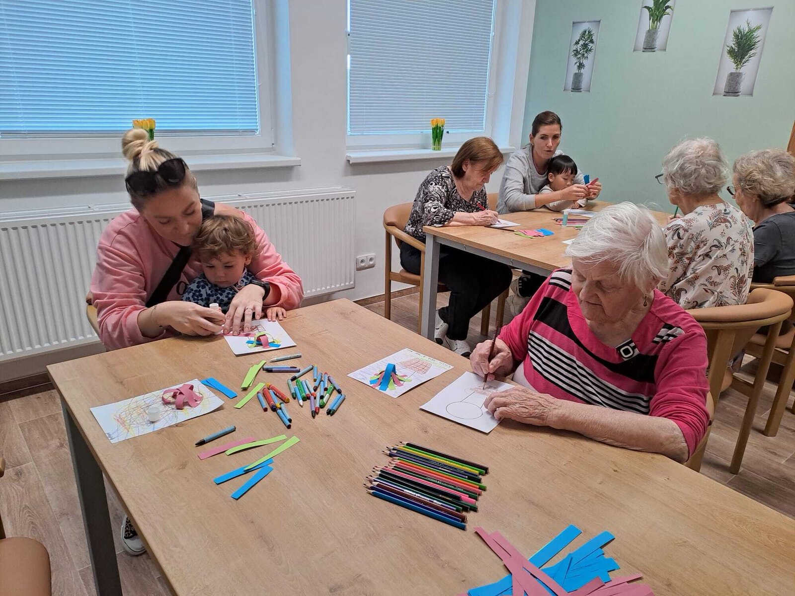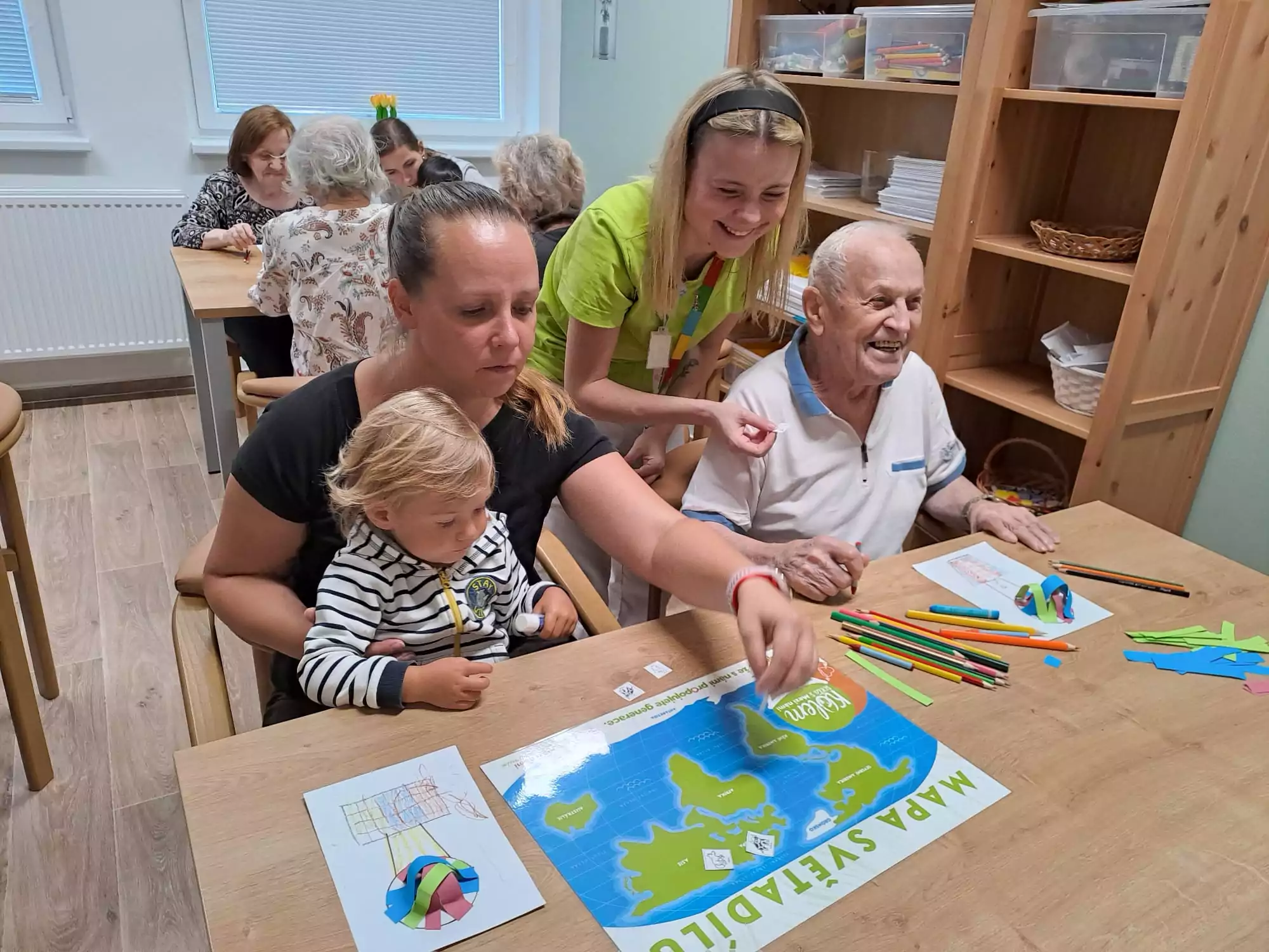 Děti z Ostrovské školičky Sluníčko dnes podnikly společnou cestu kolem světa, i když jen symbolicky – pomocí tužky a fantazie společně s klienty z Senevida Ostrov. Vyráběli krásné předměty, které znázorňovaly různé kouty světa a kreativní dílna byla plná radosti a smíchu. Po společném tvoření děti seniory potěšily krátkou básničkou a veselým tancem. Tato mezigenerační spolupráce opět ukázala, jak moc je důležité sdílení a společné tvoření mezi generacemi.❤️😀