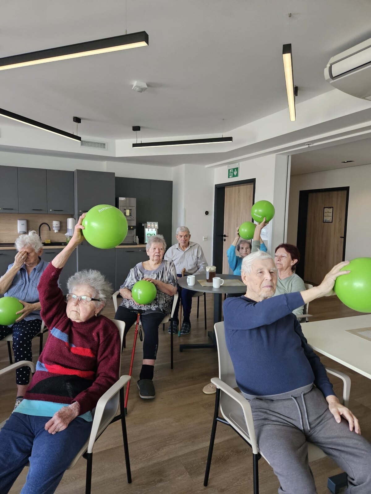 Pohyb je pro naše klienty v Senevida Ostrava - Poruba nesmírně důležitý - nejen pro tělo, ale i pro duši. Balóny létaly vzduchem a ruce se protahovaly. 🤸♀️