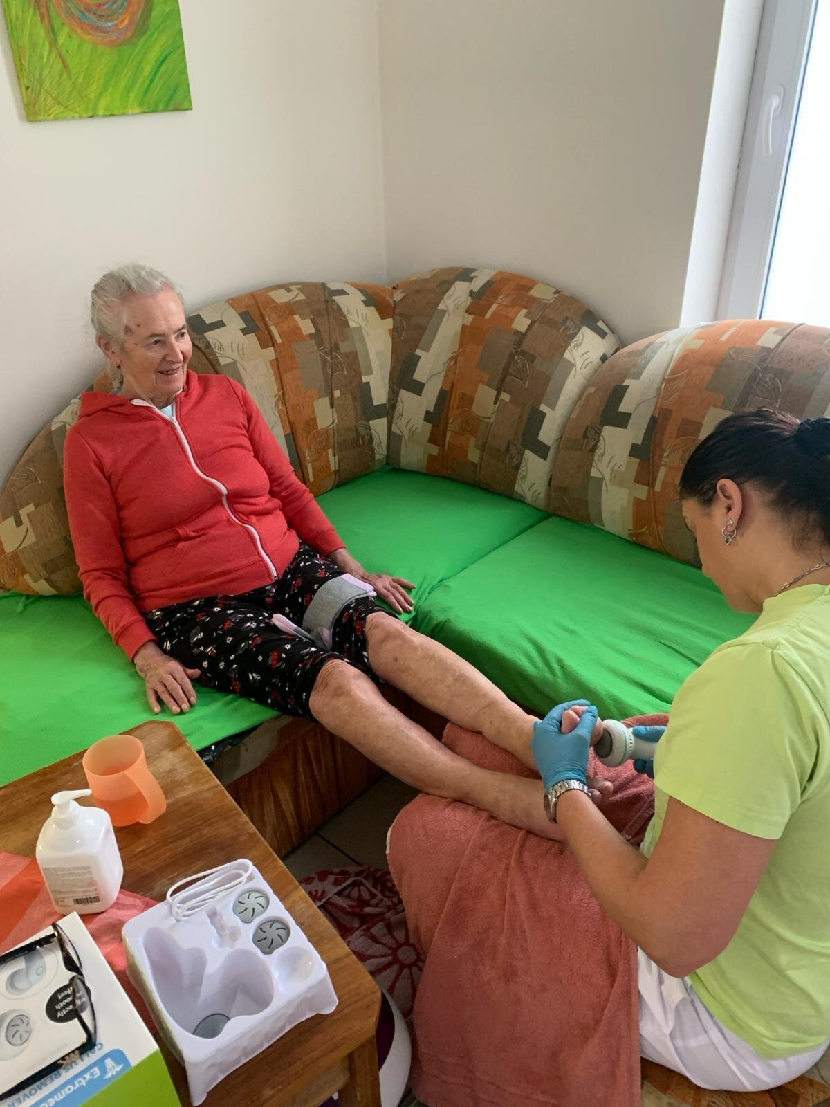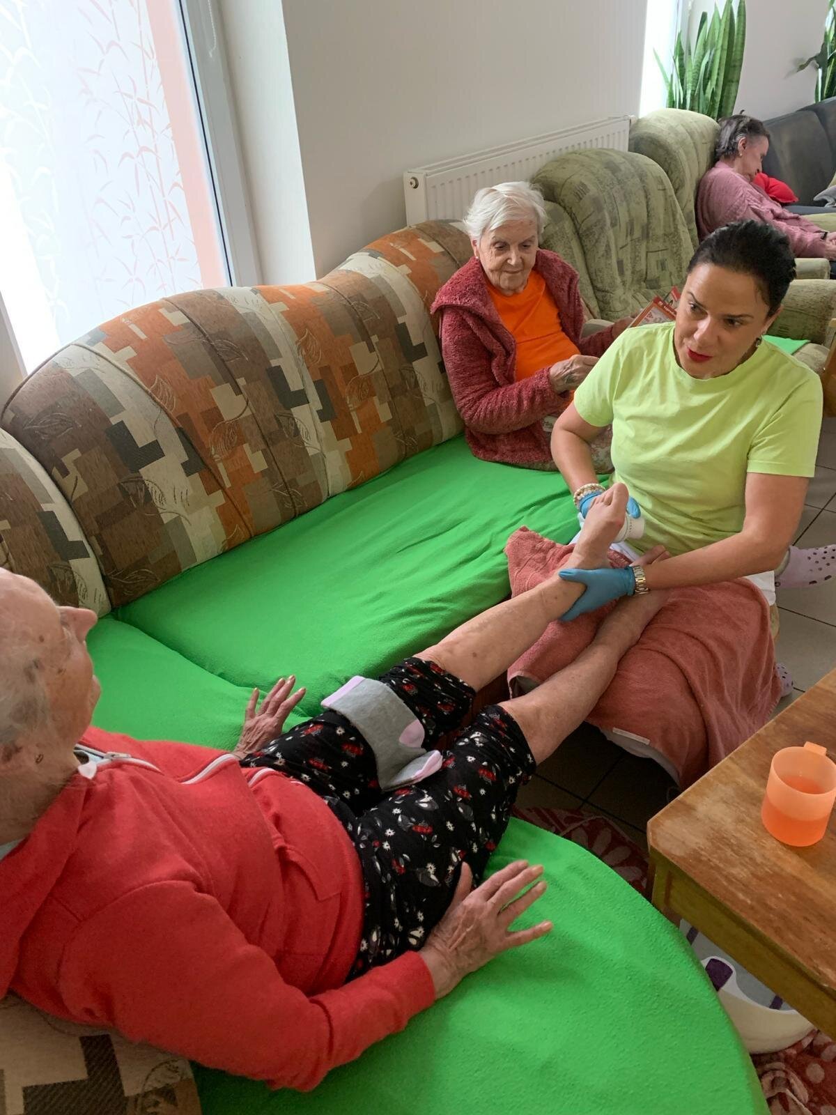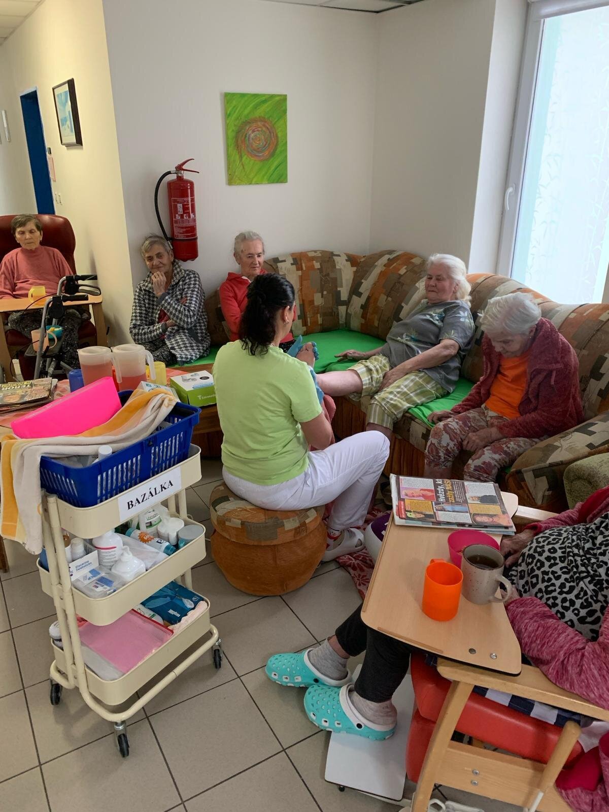 Každý všední den střídá naše sestřička patra a pomáhá nám zase jinou individuální činností, a to bazální stimulací. Ta se orientuje na všechny naše potřeby - na vnímání, komunikaci a pohybové schopnosti. Je to důležitá součást při péči v našem Domově. Dá se dělat na pokoji i na gauči mezi ostatními, zkrátka kde je nám to nejpříjemnější.