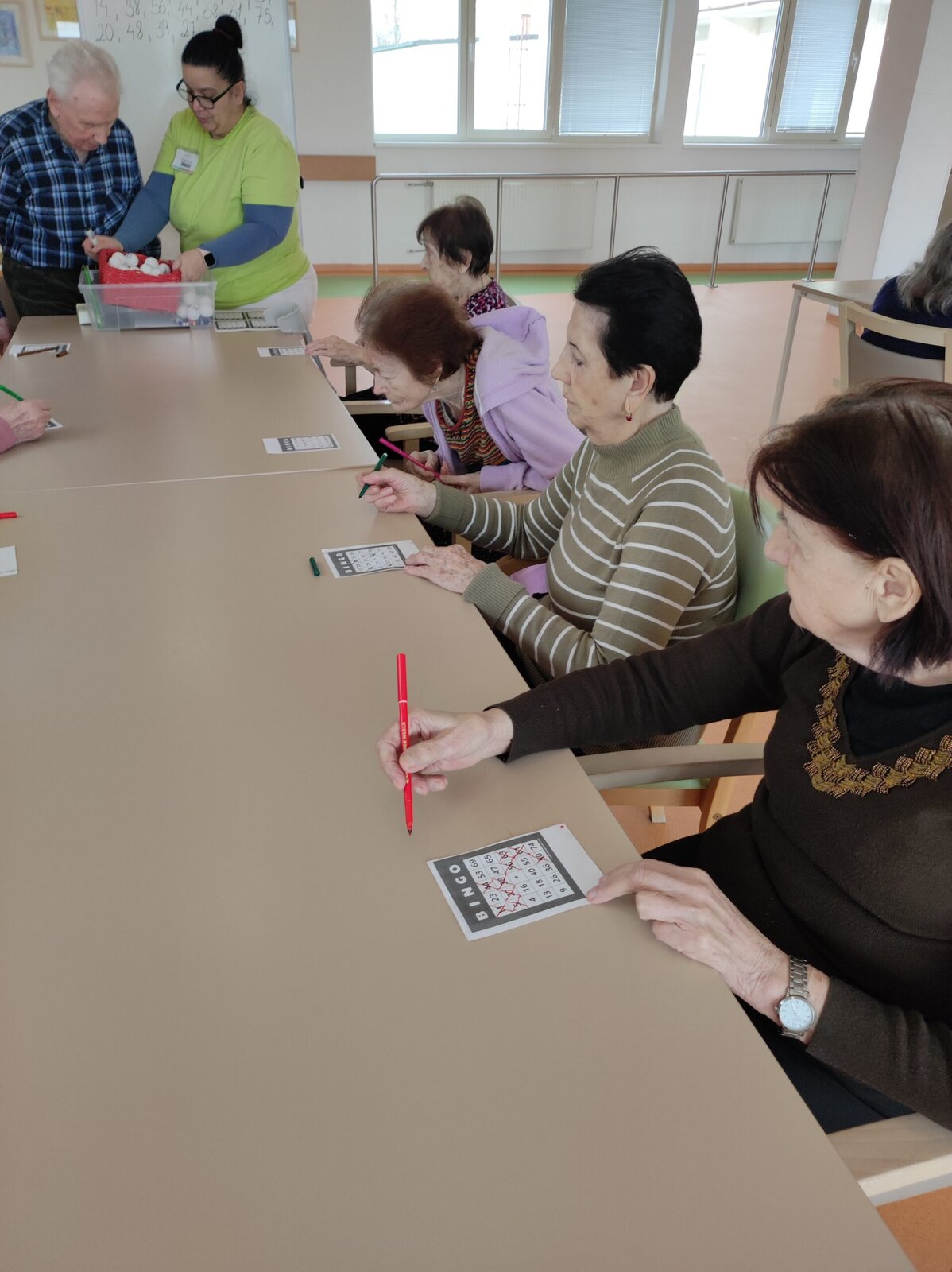 Bingo! je hra, kterou hráváme. Spočívá v hledání vyvolaného čísla v tabulce, a pak následné propojení s dalšími čtyřmi čísly. Pro klienty Senevida Zlín je to velká zábava. Kdo našel, zvolá "Bingo!"