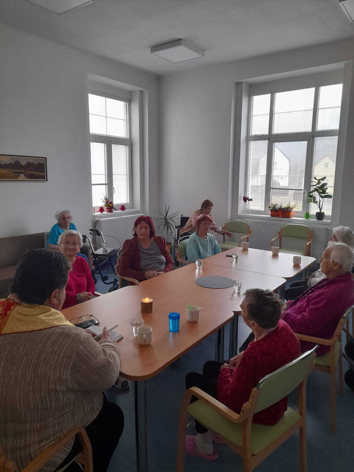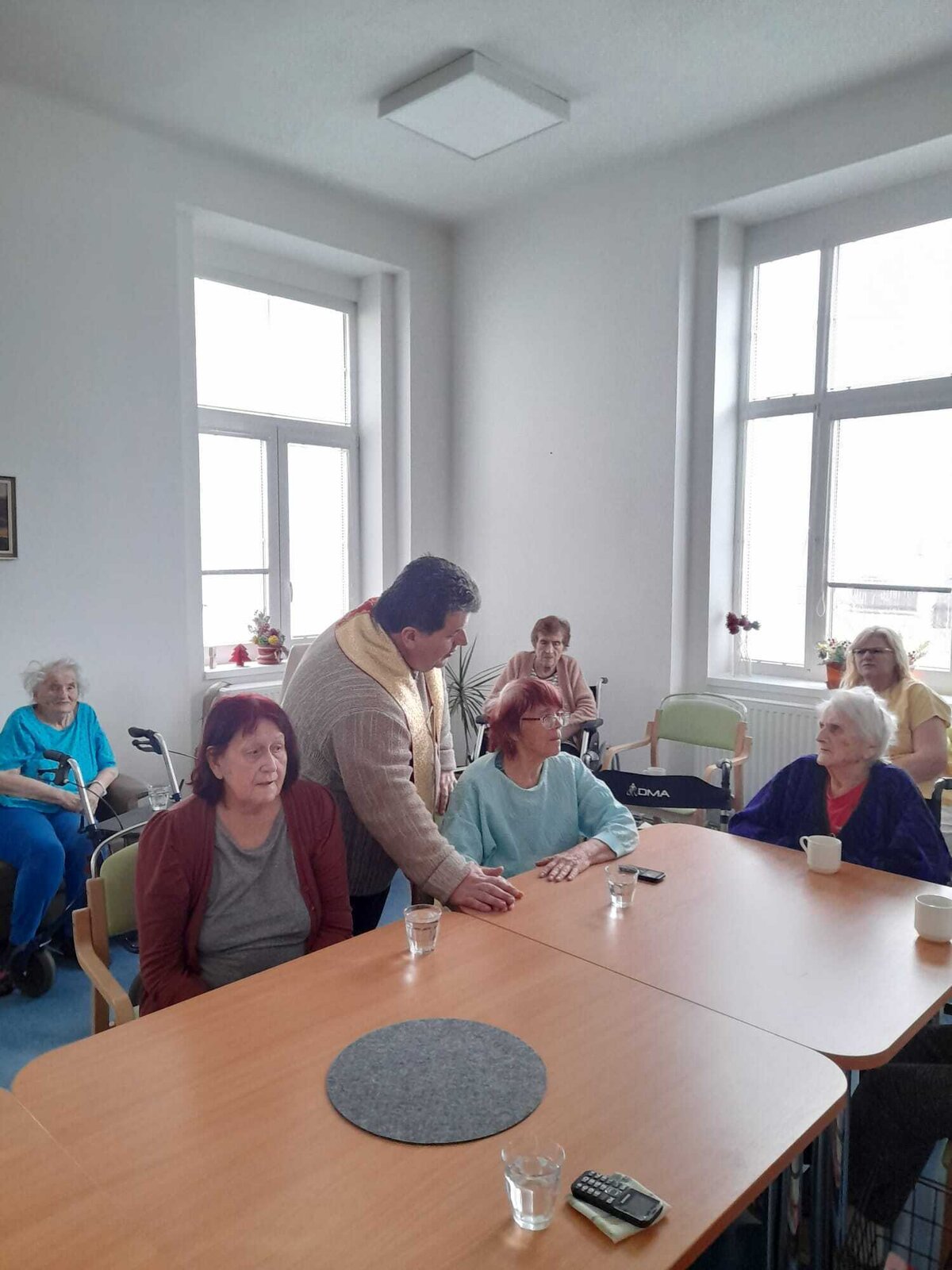 Další pravidelná aktivita na zařízení Senevida Kamenice nad Lipou je bohuslužba. Do domova za námi dochází místní pan farář.
