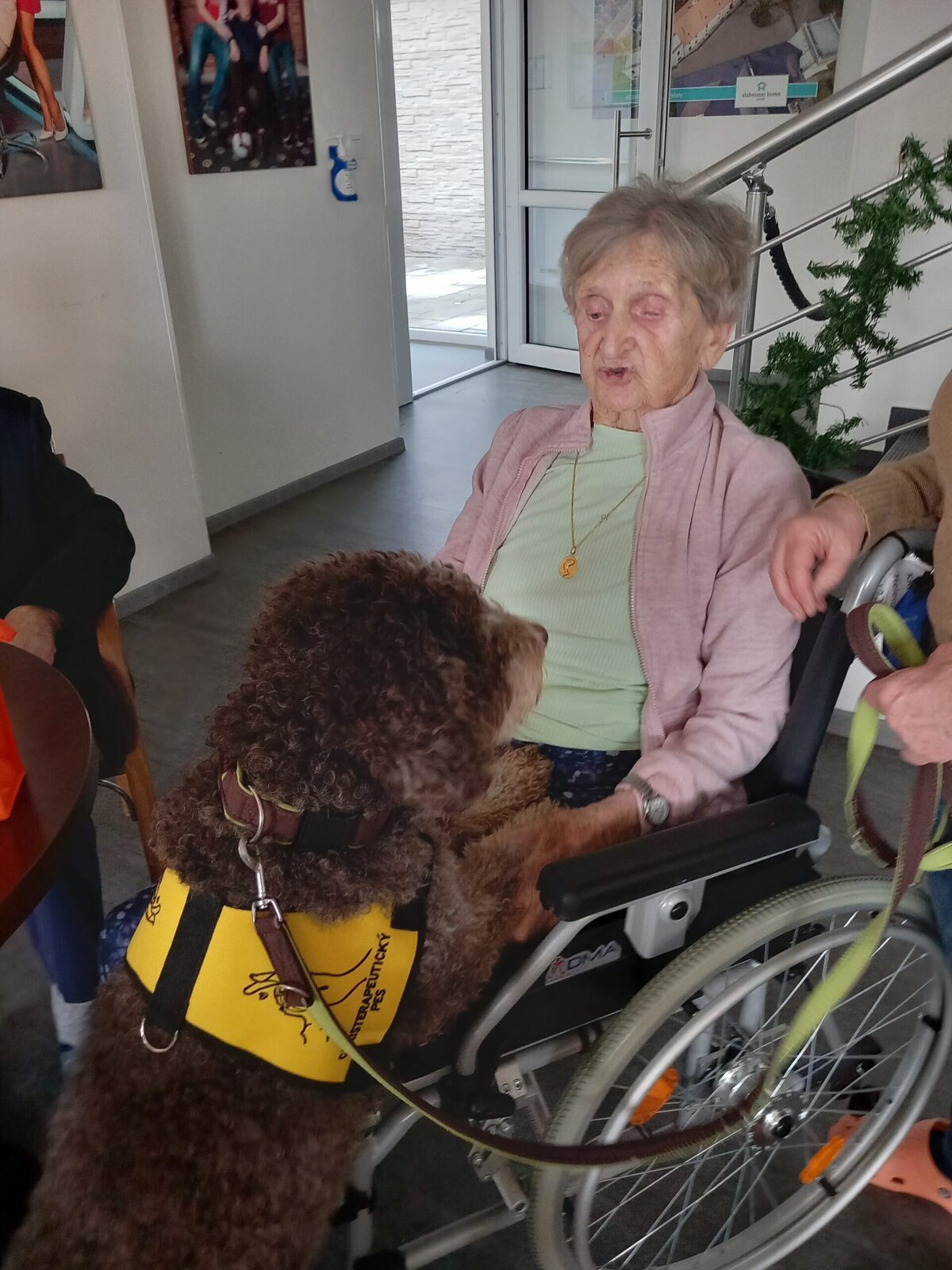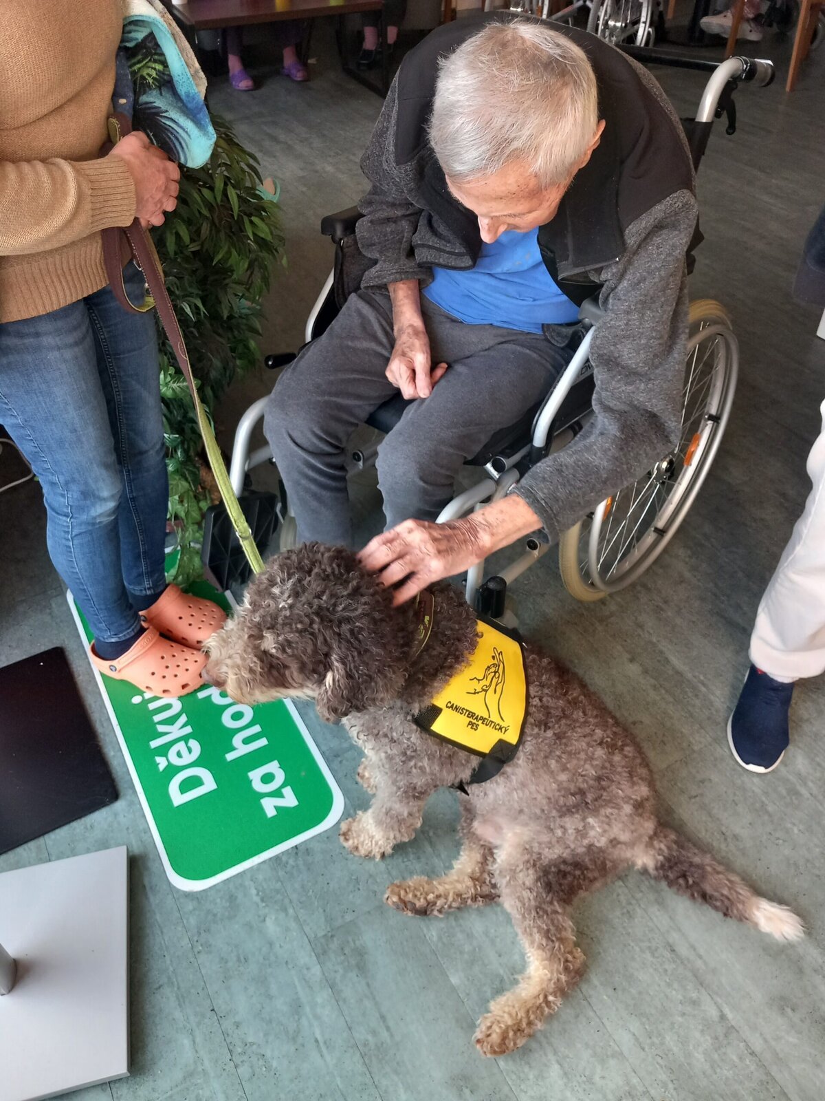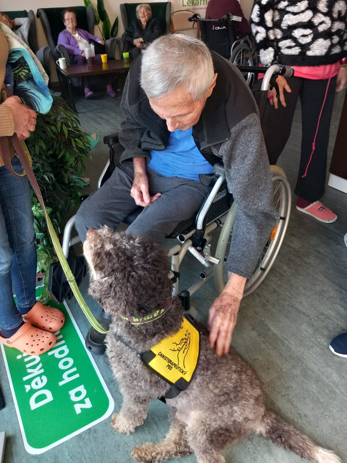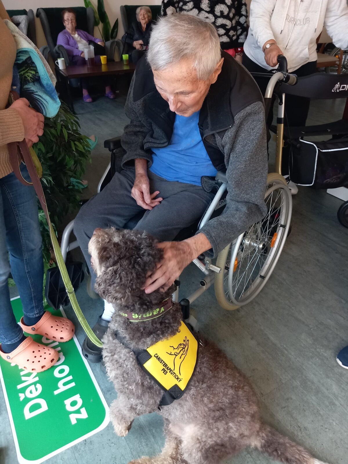 Vynechat nelze ani příznivé účinky na psychiku jedince, kdy kontakt se psem prokazatelně zlepšuje náladu a přispívá k duševní rovnováze. Pejsek nemocnému může pomoci i s rozvojem sociálního cítění, může podnítit ke hře a samozřejmě i pohybu. Děkujeme paní Monice a Jamie za příjemné odpoledne.