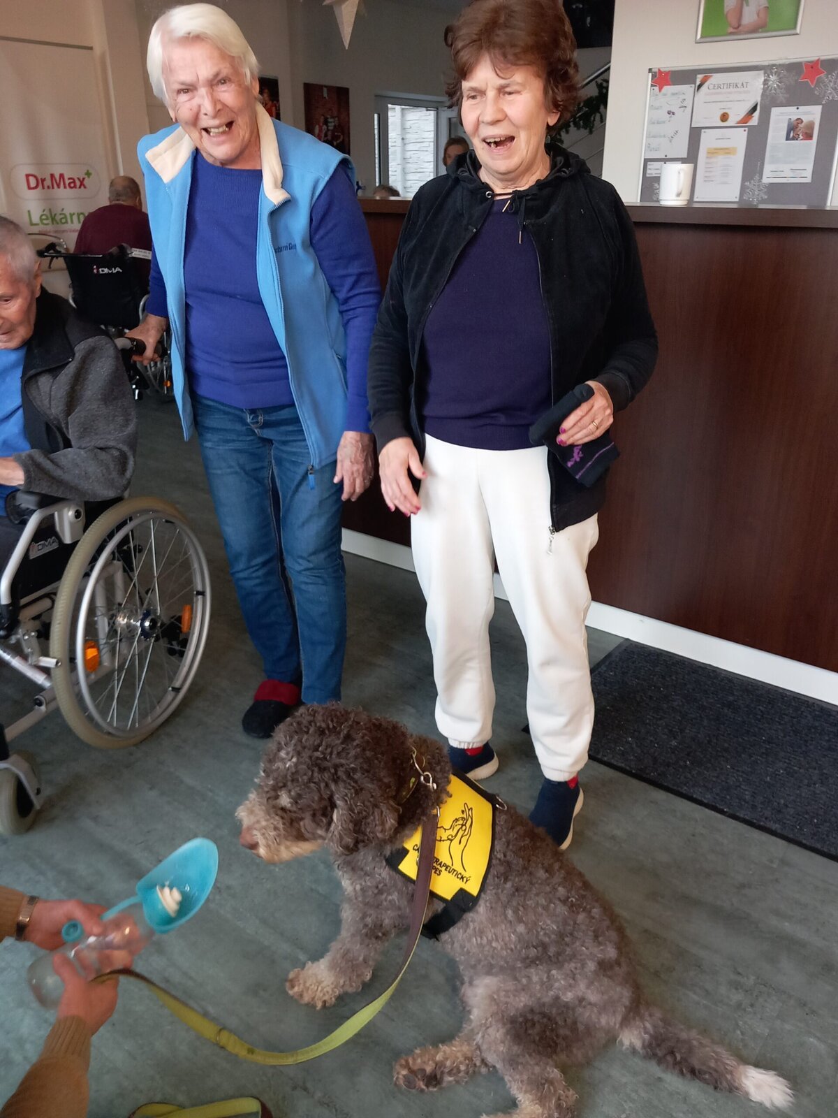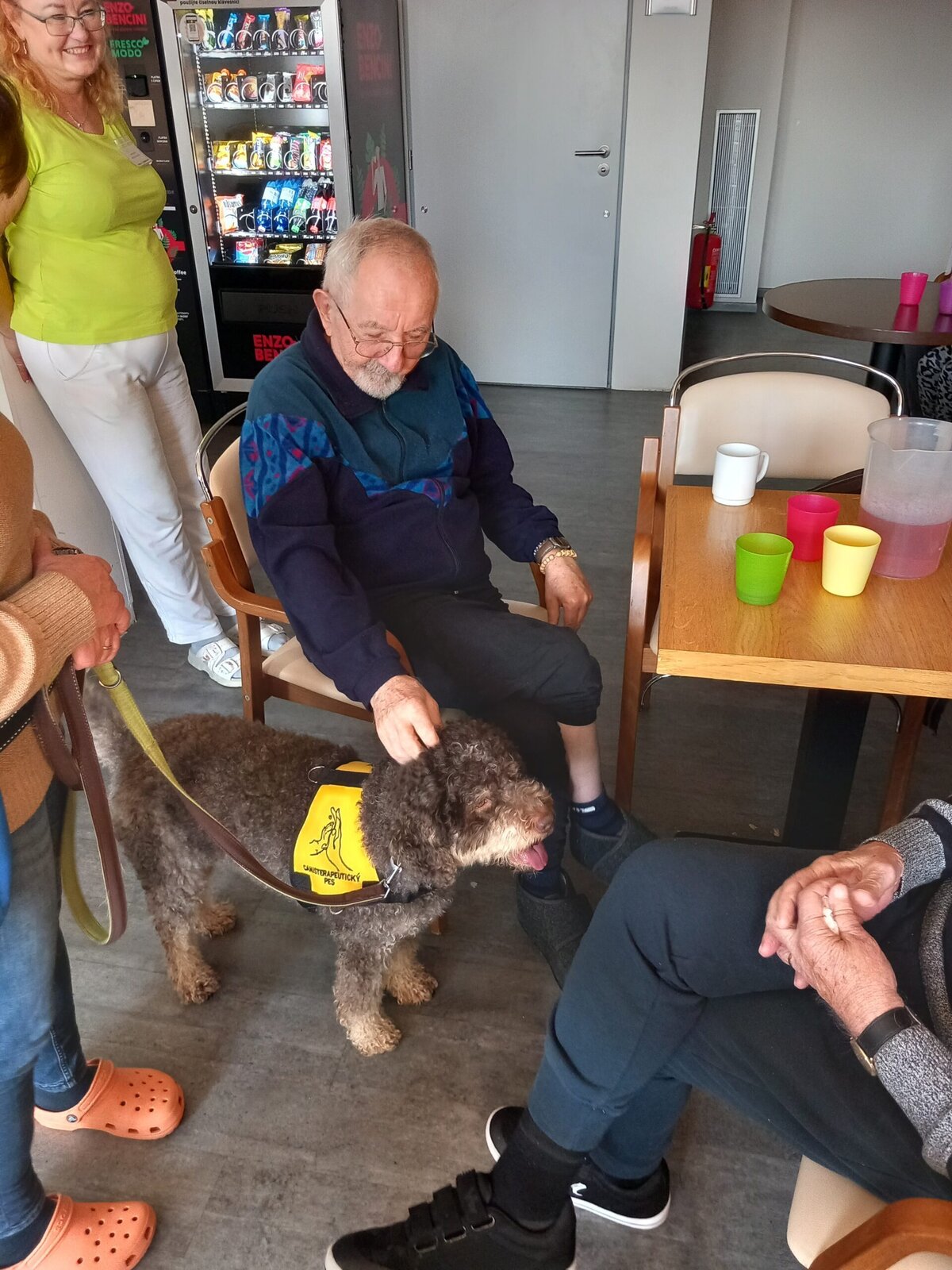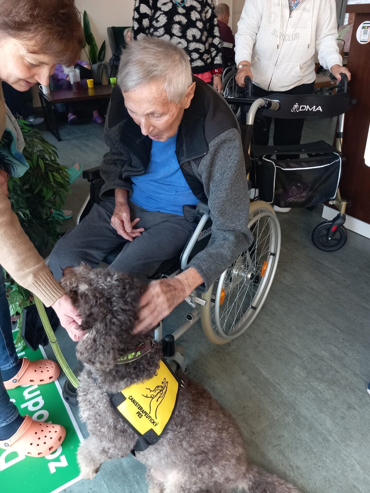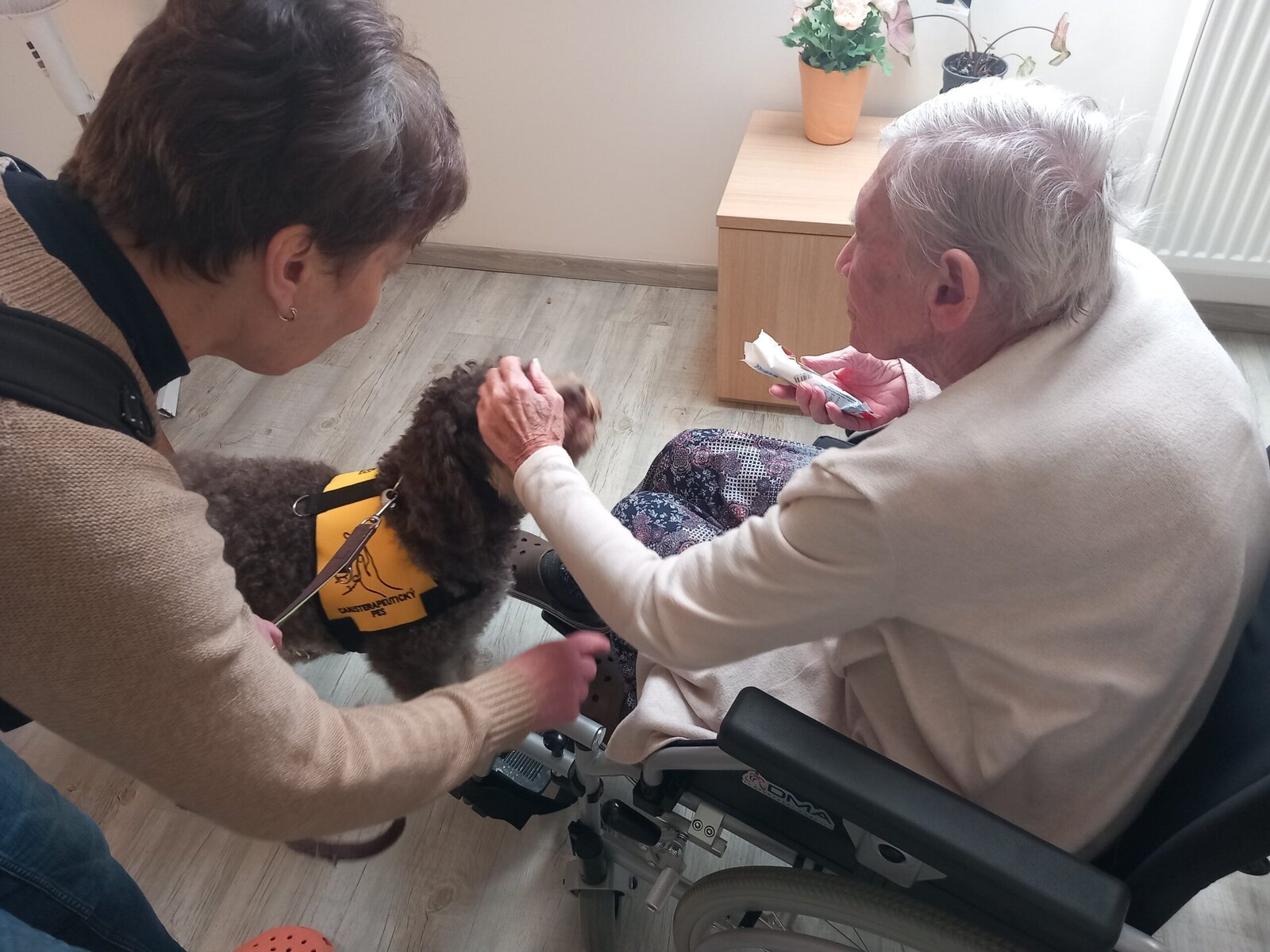 Vynechat nelze ani příznivé účinky na psychiku jedince, kdy kontakt se psem prokazatelně zlepšuje náladu a přispívá k duševní rovnováze. Pejsek nemocnému může pomoci i s rozvojem sociálního cítění, může podnítit ke hře a samozřejmě i pohybu. Děkujeme paní Monice a Jamie za příjemné odpoledne.