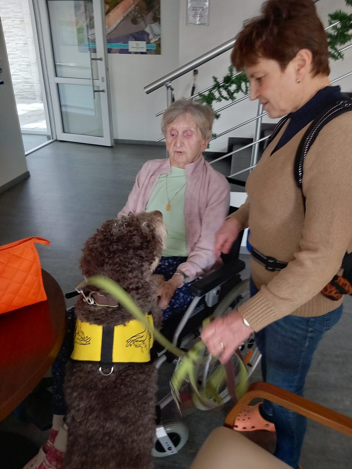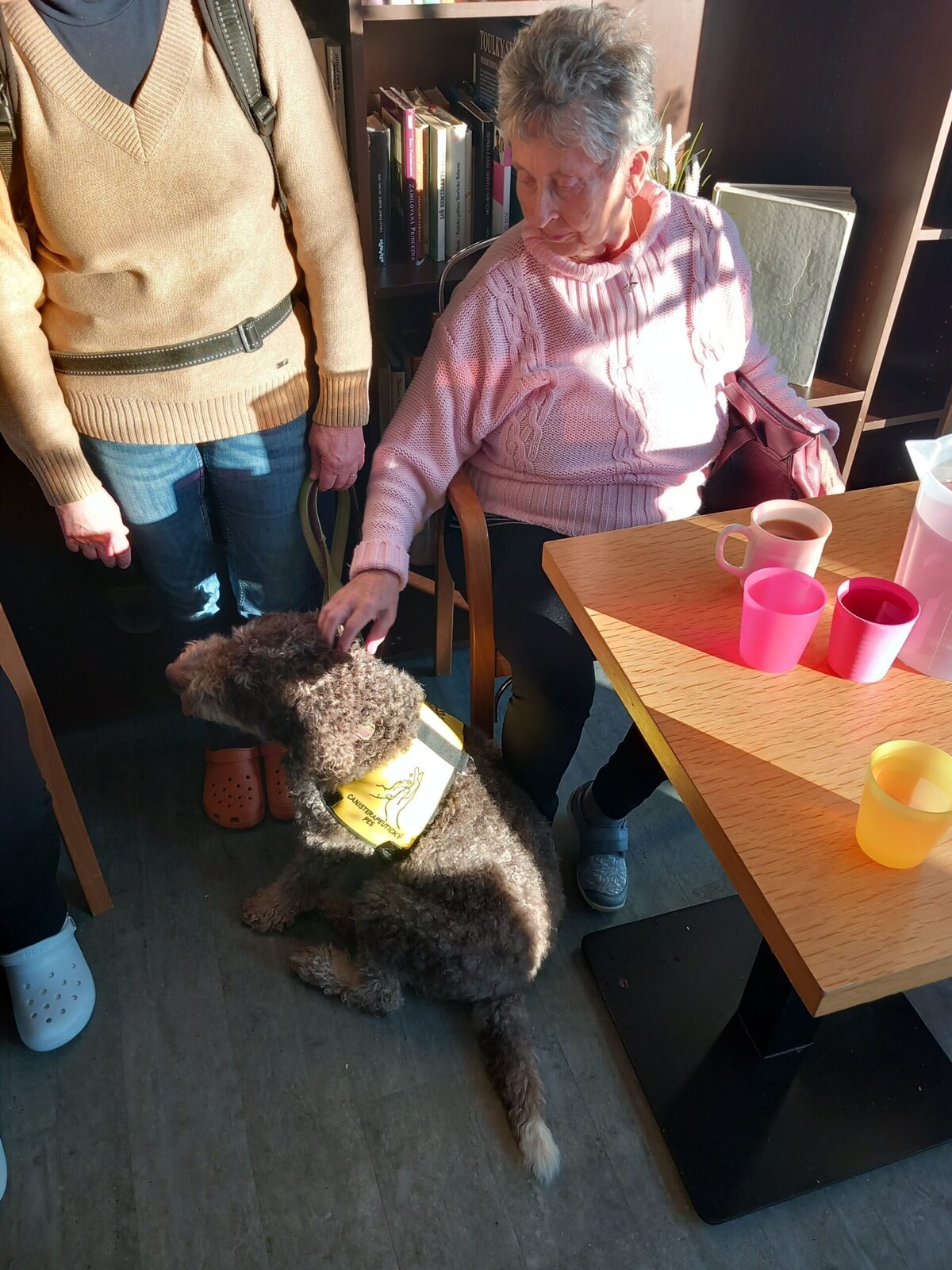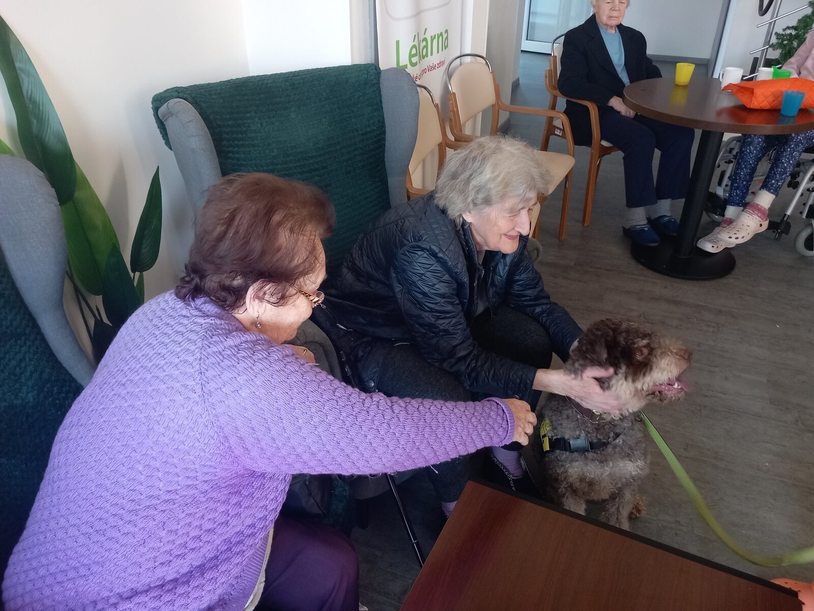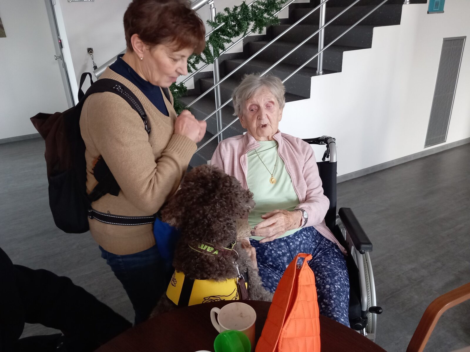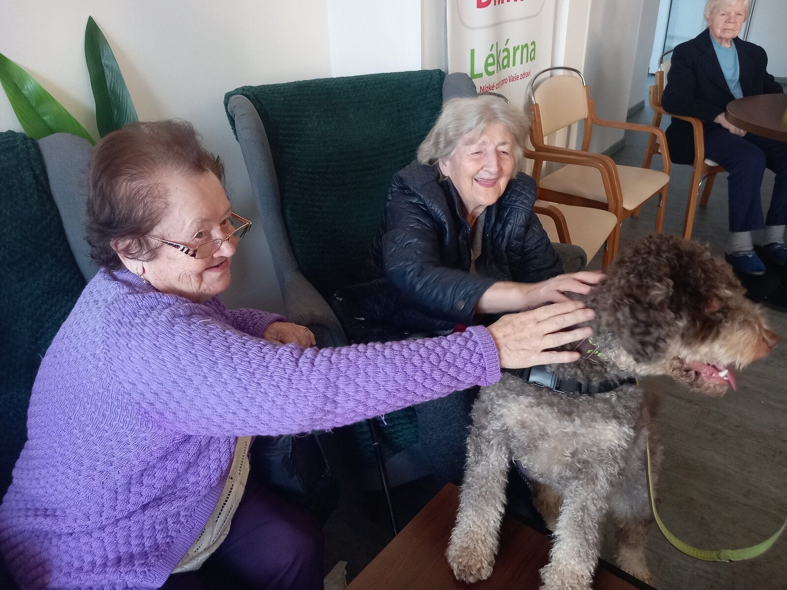 Vynechat nelze ani příznivé účinky na psychiku jedince, kdy kontakt se psem prokazatelně zlepšuje náladu a přispívá k duševní rovnováze. Pejsek nemocnému může pomoci i s rozvojem sociálního cítění, může podnítit ke hře a samozřejmě i pohybu. Děkujeme paní Monice a Jamie za příjemné odpoledne.