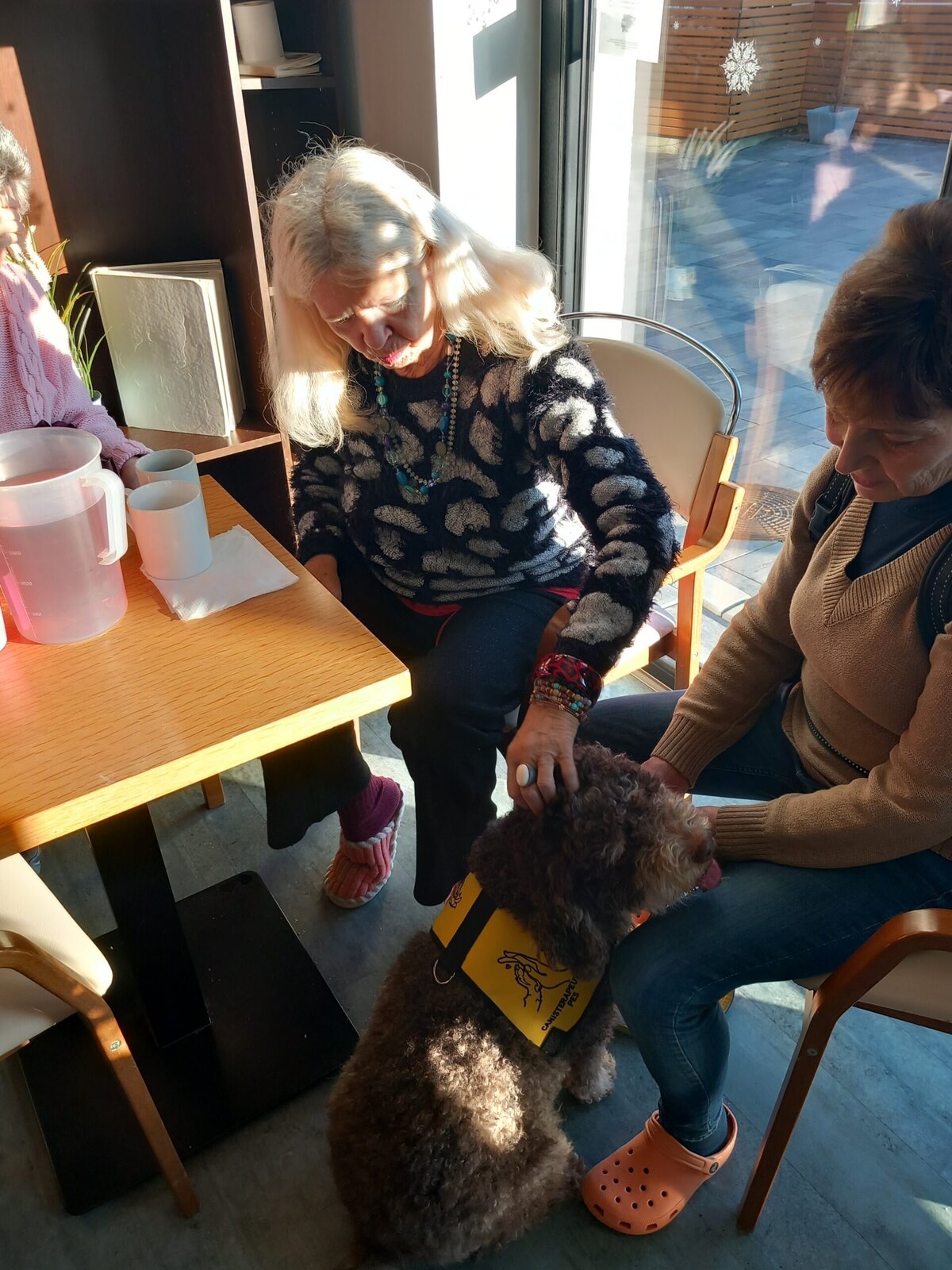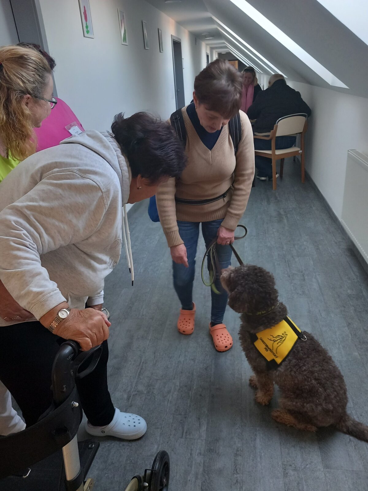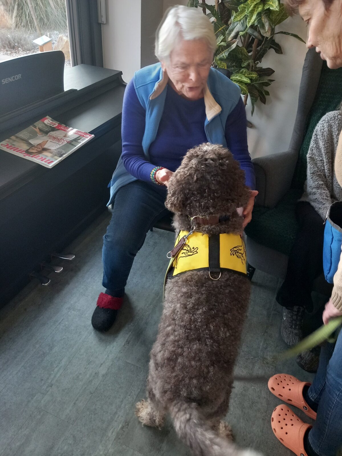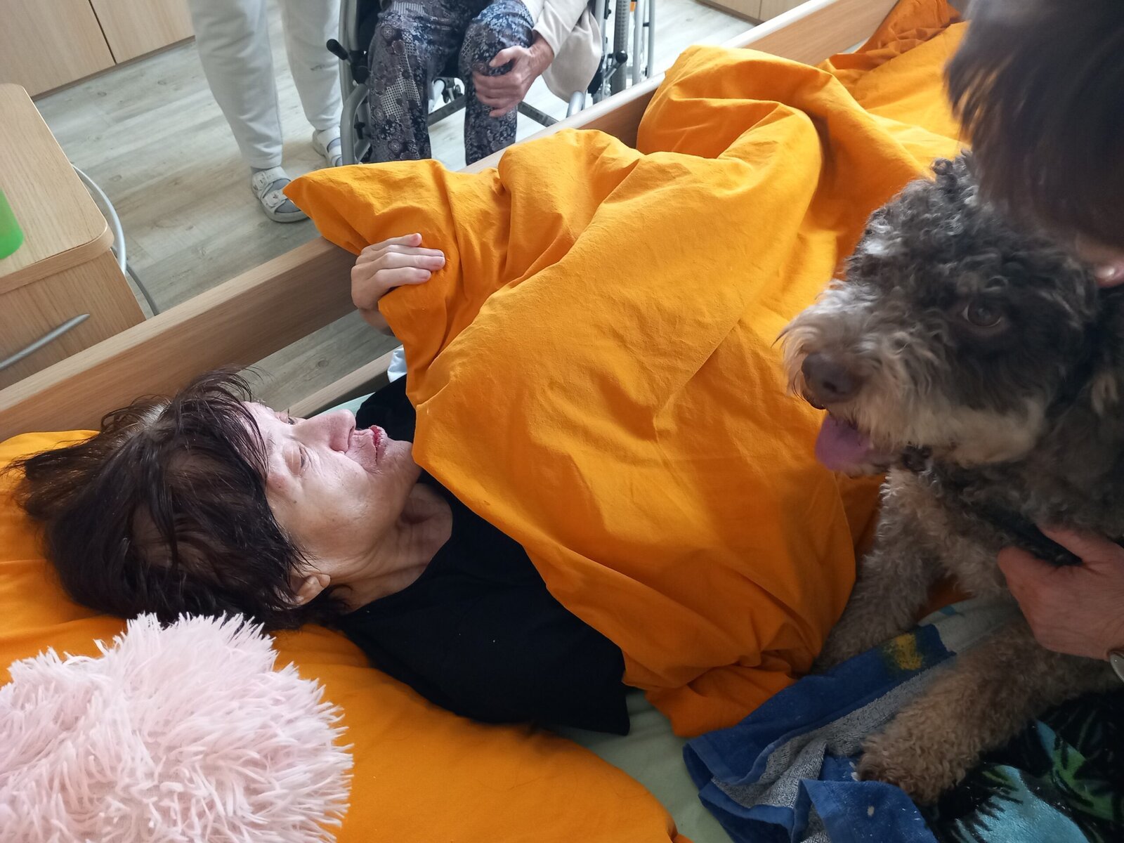 Vynechat nelze ani příznivé účinky na psychiku jedince, kdy kontakt se psem prokazatelně zlepšuje náladu a přispívá k duševní rovnováze. Pejsek nemocnému může pomoci i s rozvojem sociálního cítění, může podnítit ke hře a samozřejmě i pohybu. Děkujeme paní Monice a Jamie za příjemné odpoledne.