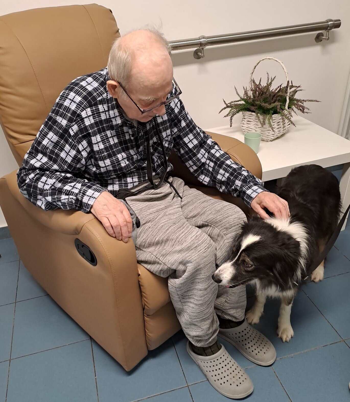 Klienti si užili spoustu radosti – od mazlení, přes jemné pohlazení až po smích, který psí přítomnost vždy přináší. Naši klienti mají rádi chlupaté kamarády, a proto byla návštěva Flake opravdu vítaným zpestřením. 🐕❤️😀