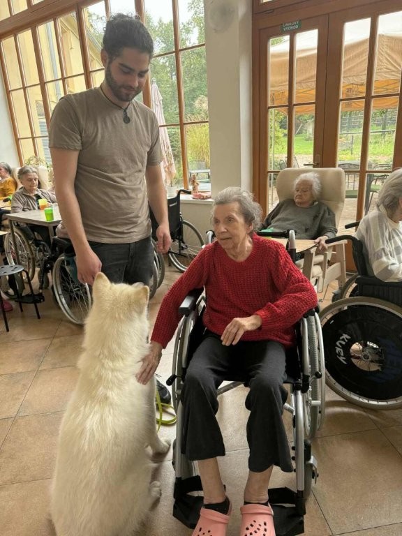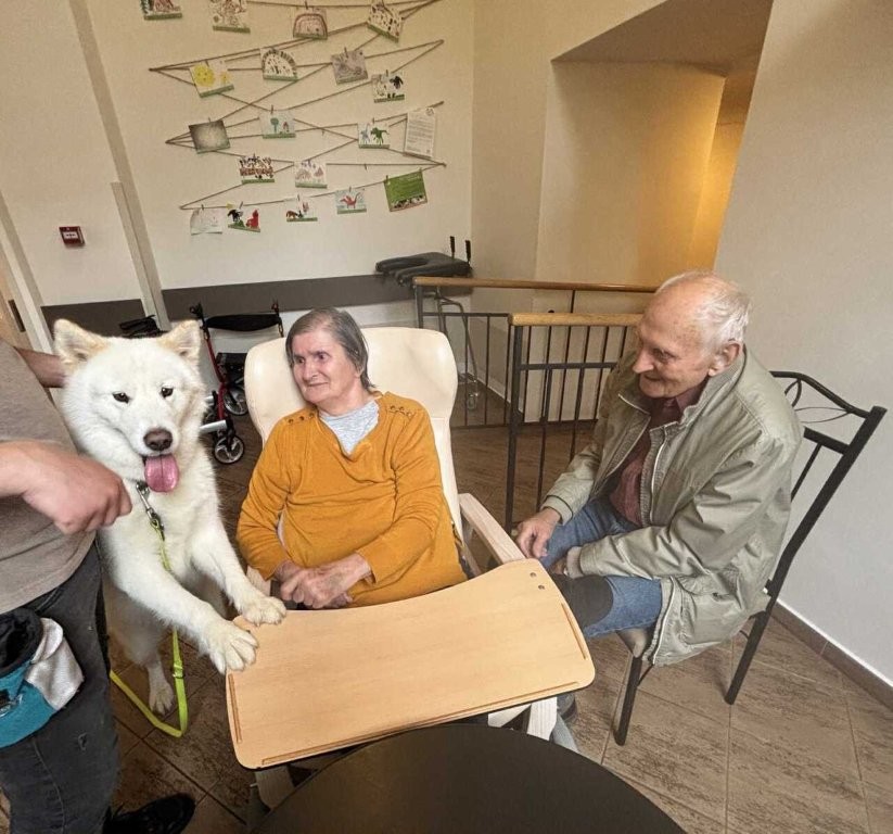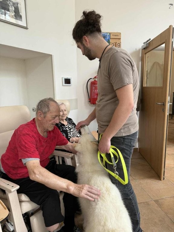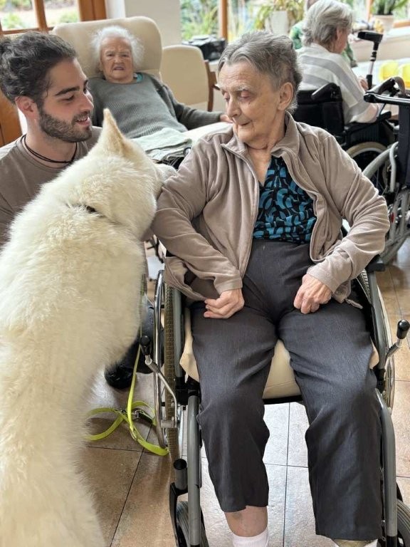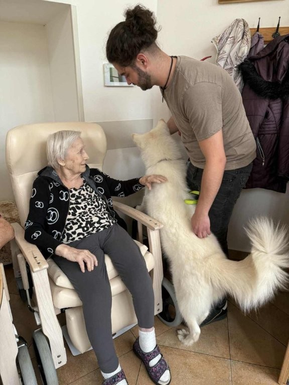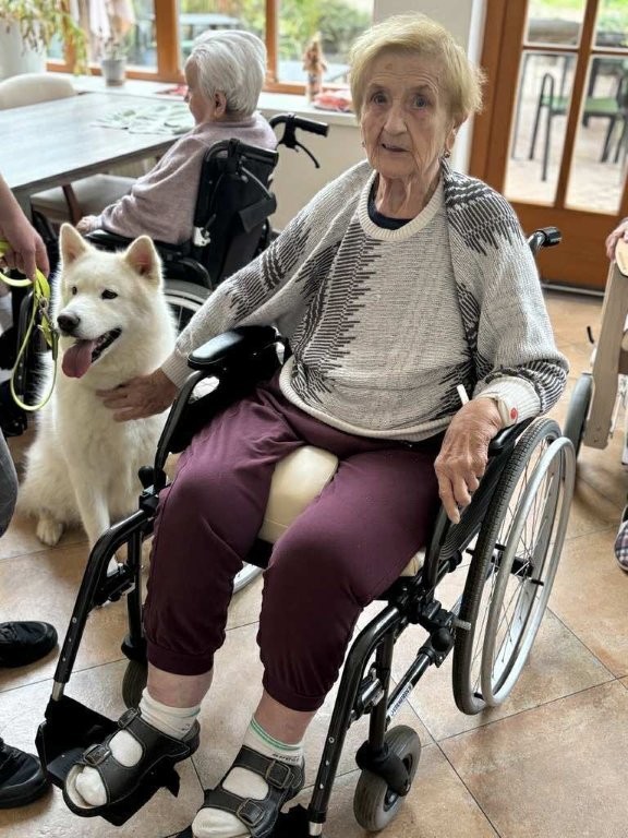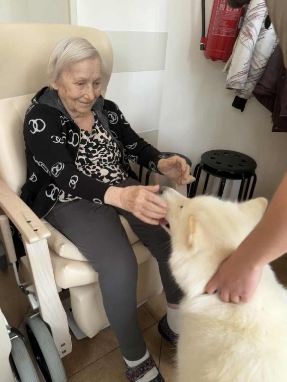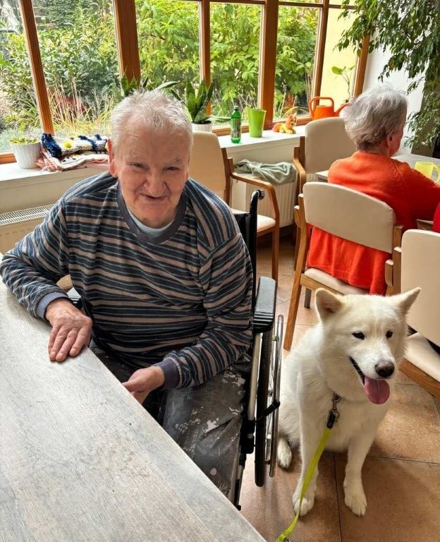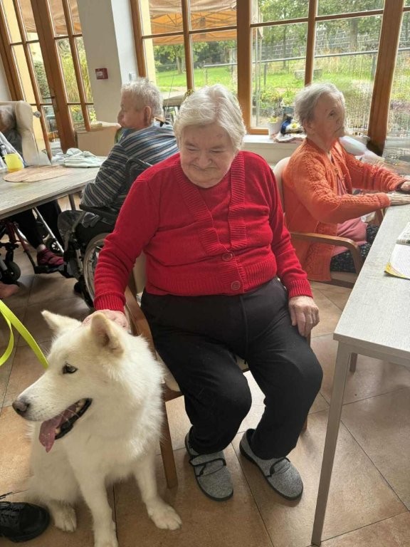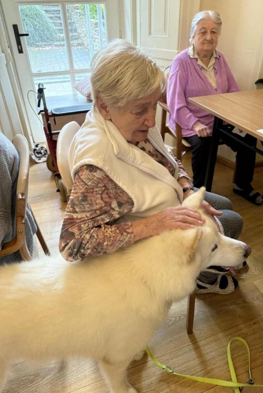 Chodí k nám pravidelně a pokaždé přinese spoustu radosti, klidu a úsměvů. Klienti si ji s nadšením hladí, dávají jí pamlsky a povídají si s ní.
