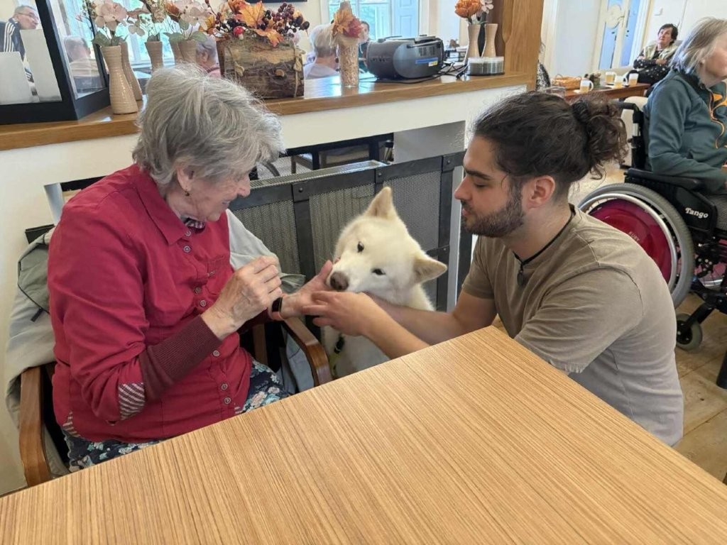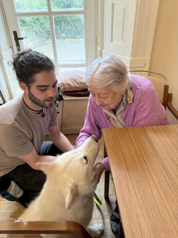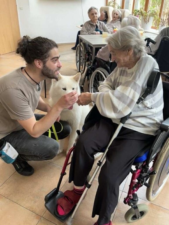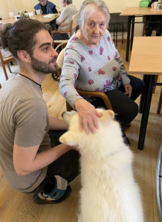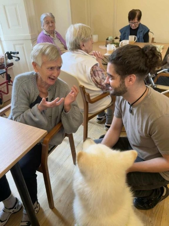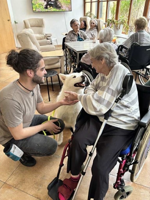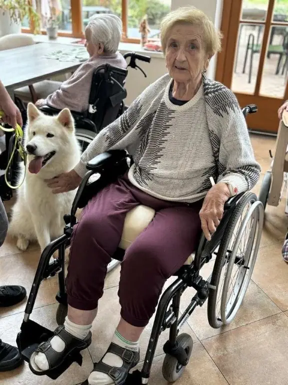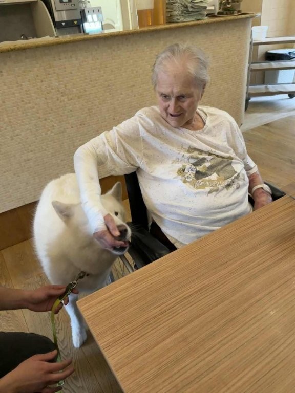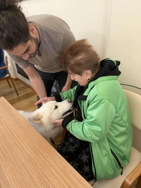 Chodí k nám pravidelně a pokaždé přinese spoustu radosti, klidu a úsměvů. Klienti si ji s nadšením hladí, dávají jí pamlsky a povídají si s ní.