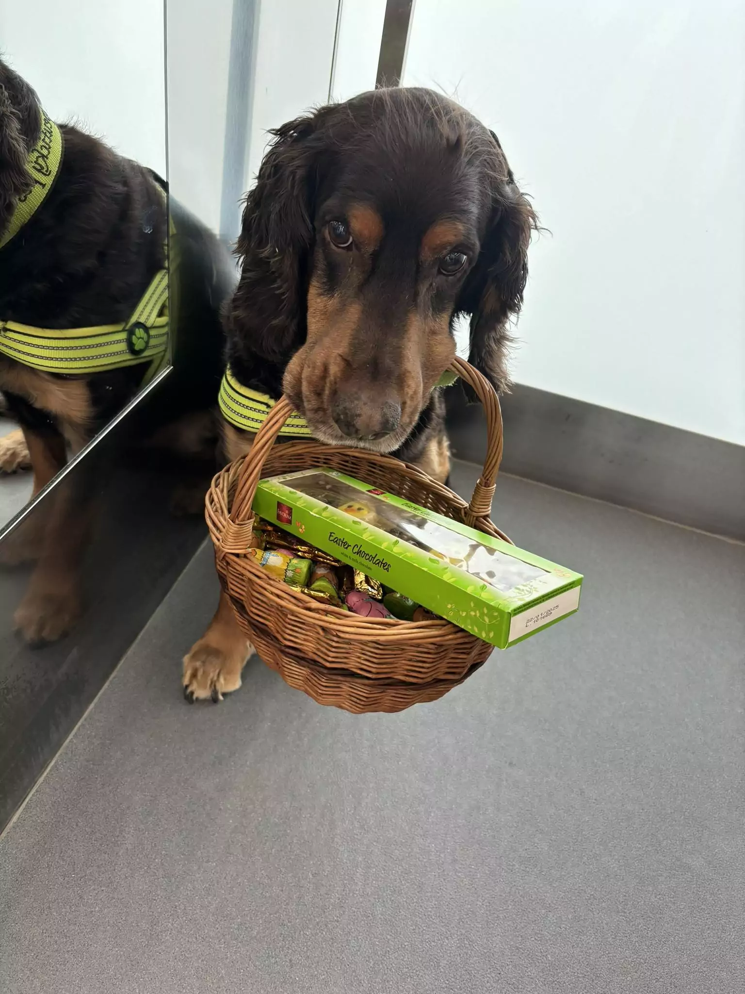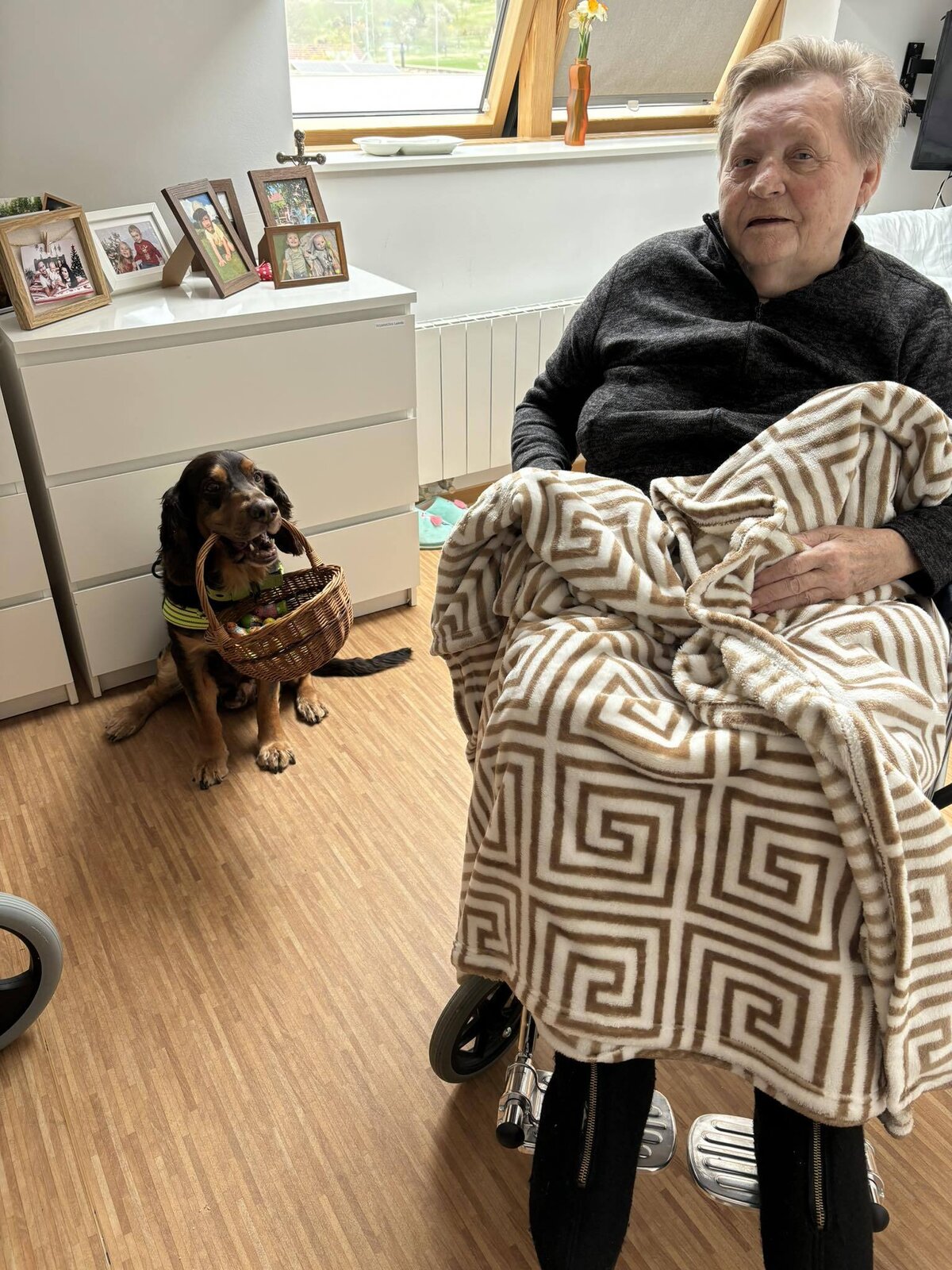 Pravidelně dochází na psí návštěvy do Senevida SLAVKOV pes Kája. Tentokrát zavítal mezi klienty během Velikonoc a přinesl jim v košíku něco dobrého. Návštěvy zvířat jsou u klientů oblíbené a vždy jim dokážou zpestřit den. Klienti se budou těšit, až zase Kája se svoji paničkou, naší pracovnicí, přijde zase na návštěvu.