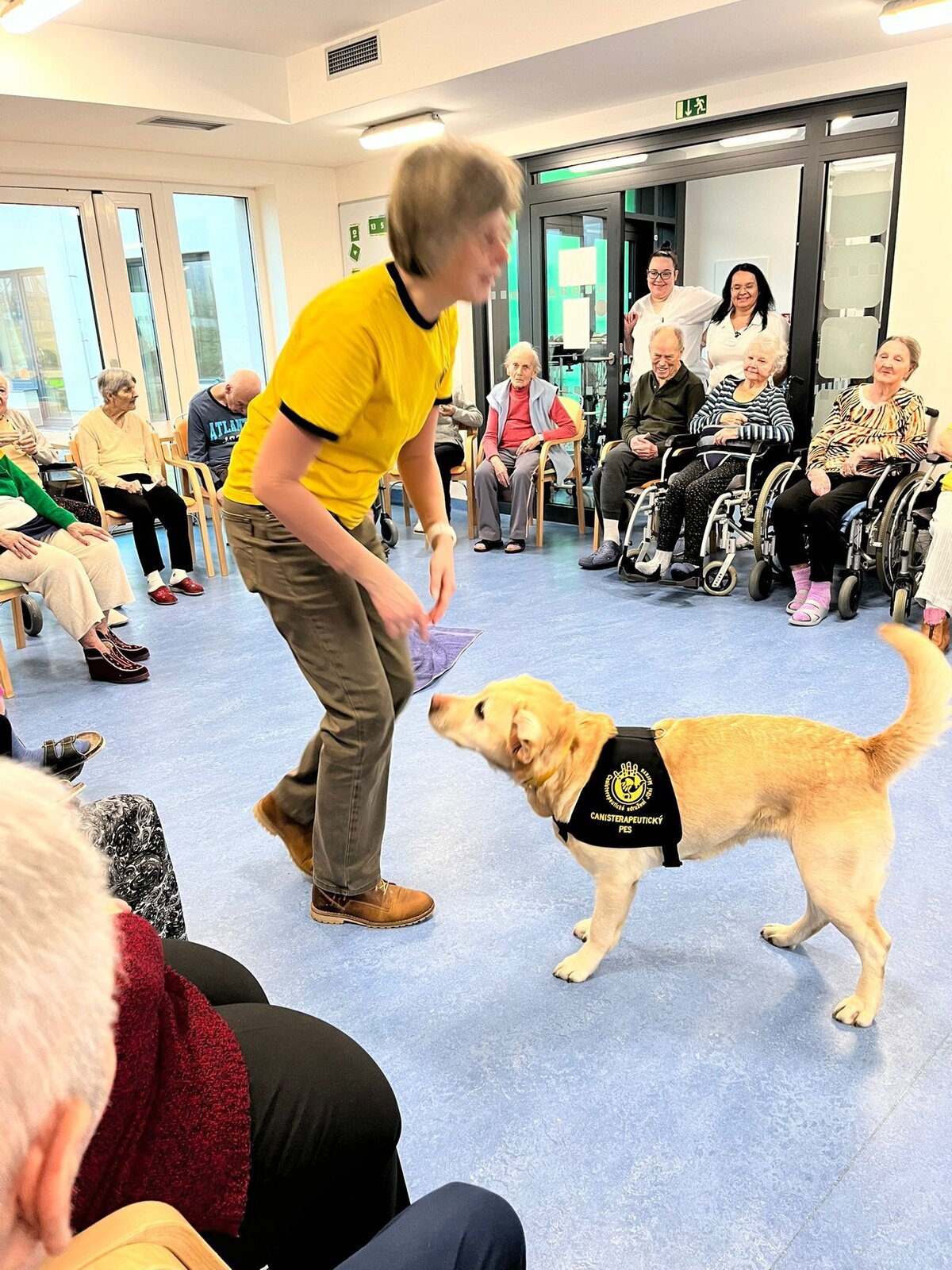 Senevida Minkovice navštívila paní Kantorová se svou úžasnou labradorkou Kačenkou. Kačence je pět let a je to milá, přítulná a poslušná společnice. Klienti měli možnost si Kačenku pohladit, pomazlit a trénovat s ní aport, který ovládá na jedničku. Kačenka pak potěšila také klienty, kteří se nemohli zúčastnit skupinové canisterapie, na pokojích. Děkujeme moc za milou návštěvu a budeme se moc těšit na příště!