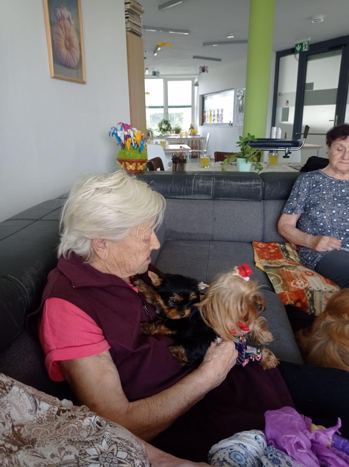 Štěňata jsou malými kuličkami energie, která naplňují naše dny smíchem a láskou." - tímto citátem by se dala vystihnout canisterapie, která nedávno proběhla v našem Senevida ve Slavkově u Brna.😊 Klienti se totiž nejen opětovně přivítali se psími přáteli, které už dobře znají, ale mohli se potěšit i přítomností malých štěňátek.🥰 Z tohoto setkání byli všichni zúčastnění velmi nadšení a přililo jim novou energii do žil.