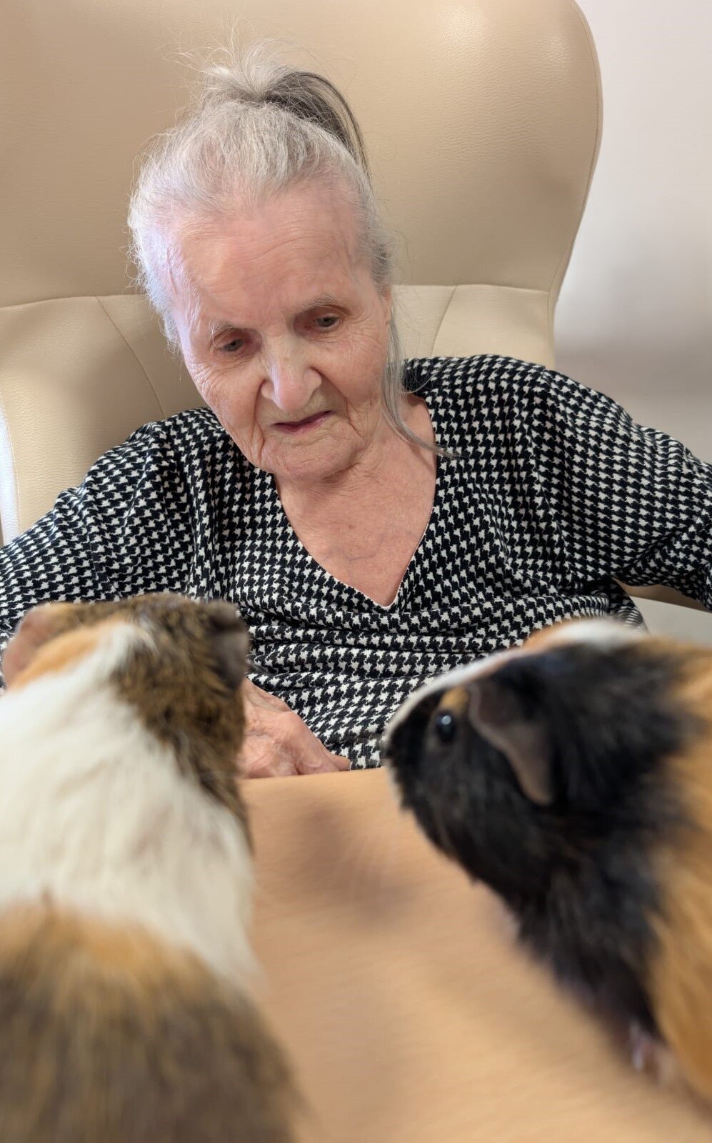Každé pondělí a pátek odpoledne probíhá v Senevida Modřany Caviaterapie. To je terapie za pomoci našich tří morčátek. Sněženka, Josef a Čiperka se využívají v dotykové aktivitě. Dotyk je druhem komunikace a naše morčata mají nejraději drbání za ouškama. Morčátka jsou dostupná všem klientům, kteří se na ně ve volném čase mohou jít podívat, popřípadě je nakrmit.😊💙