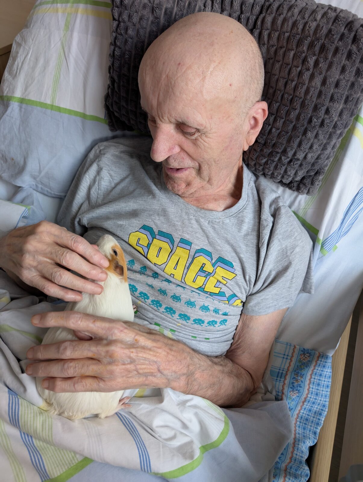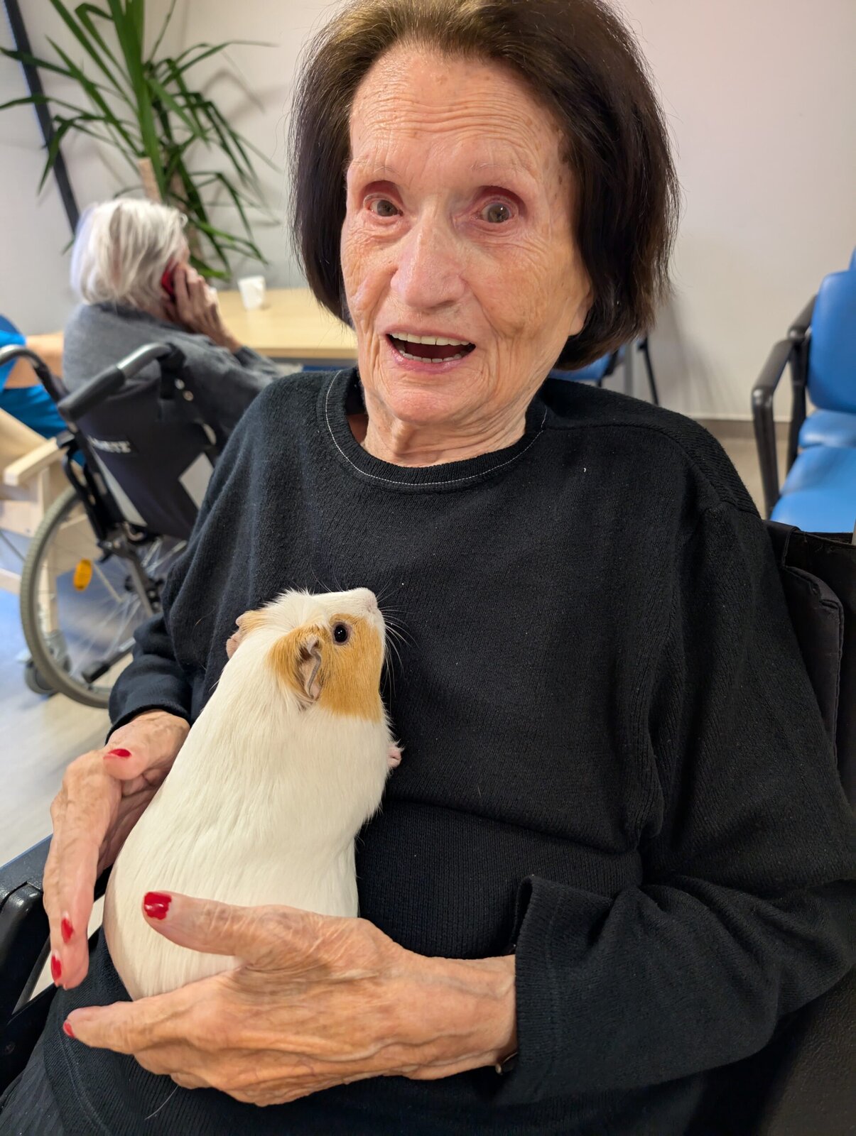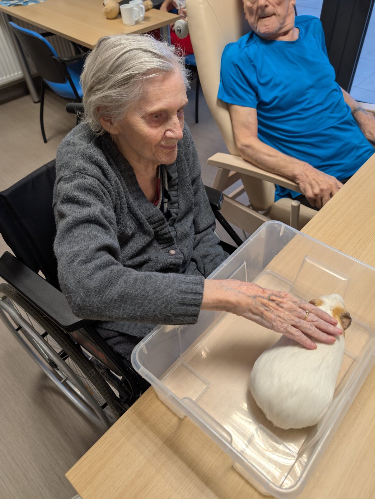 Každé pondělí a pátek odpoledne probíhá v Senevida Modřany Caviaterapie. To je terapie za pomoci našich tří morčátek. Sněženka