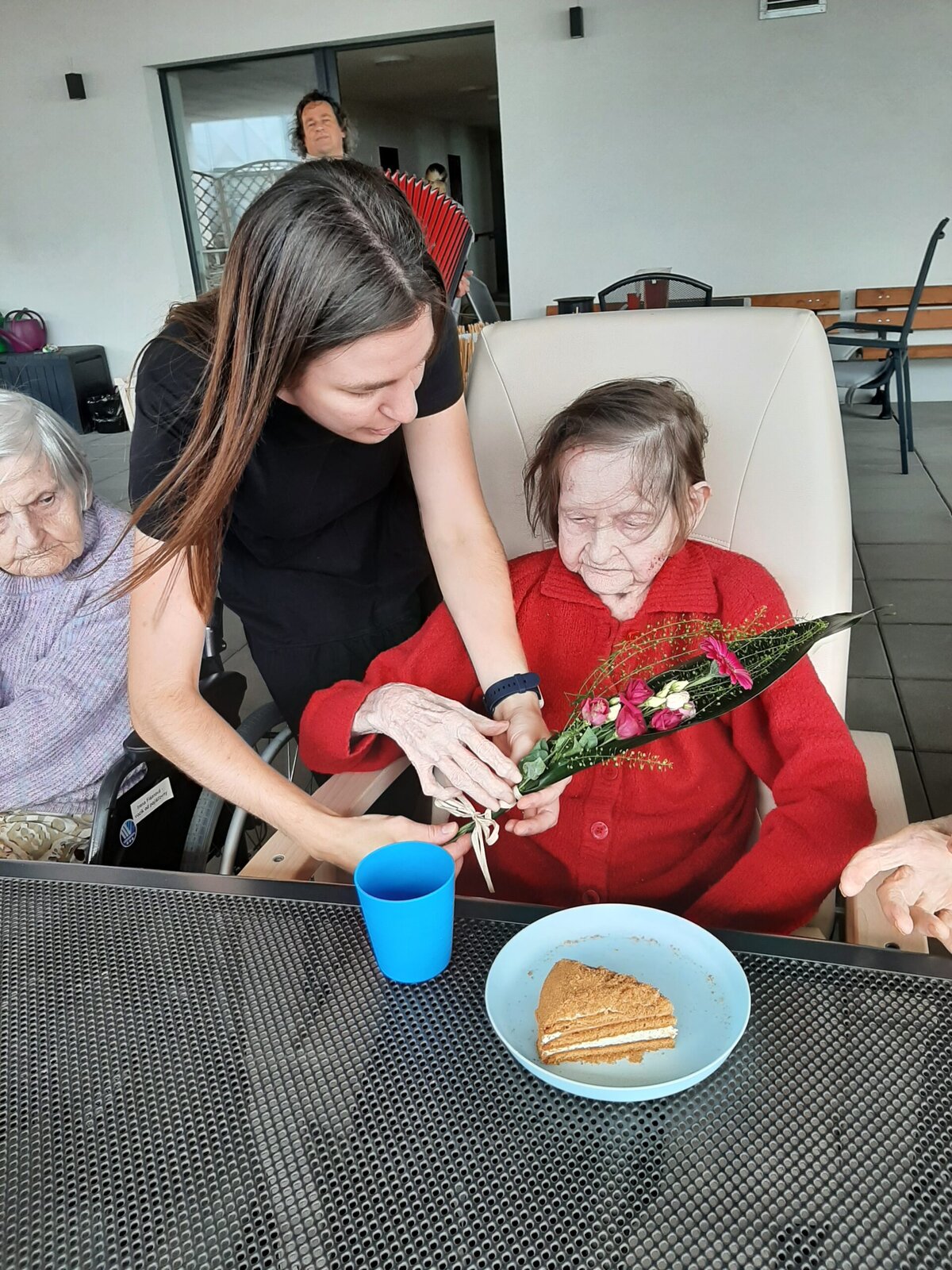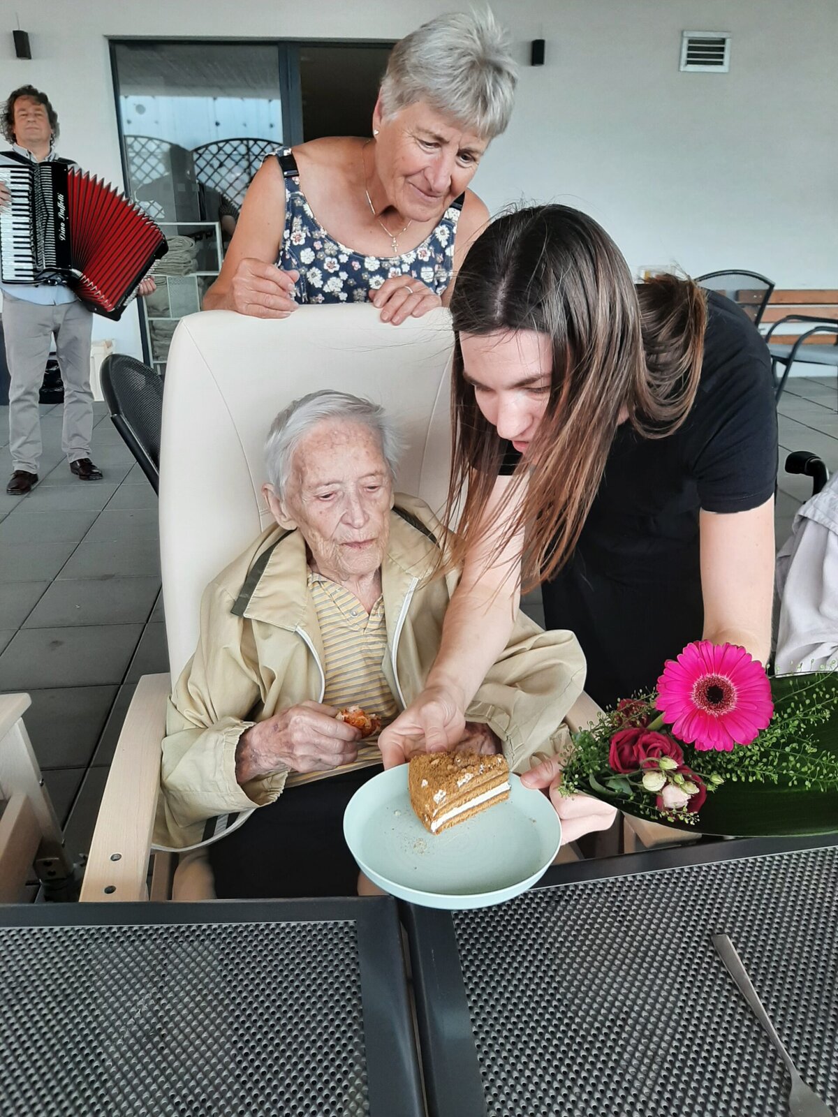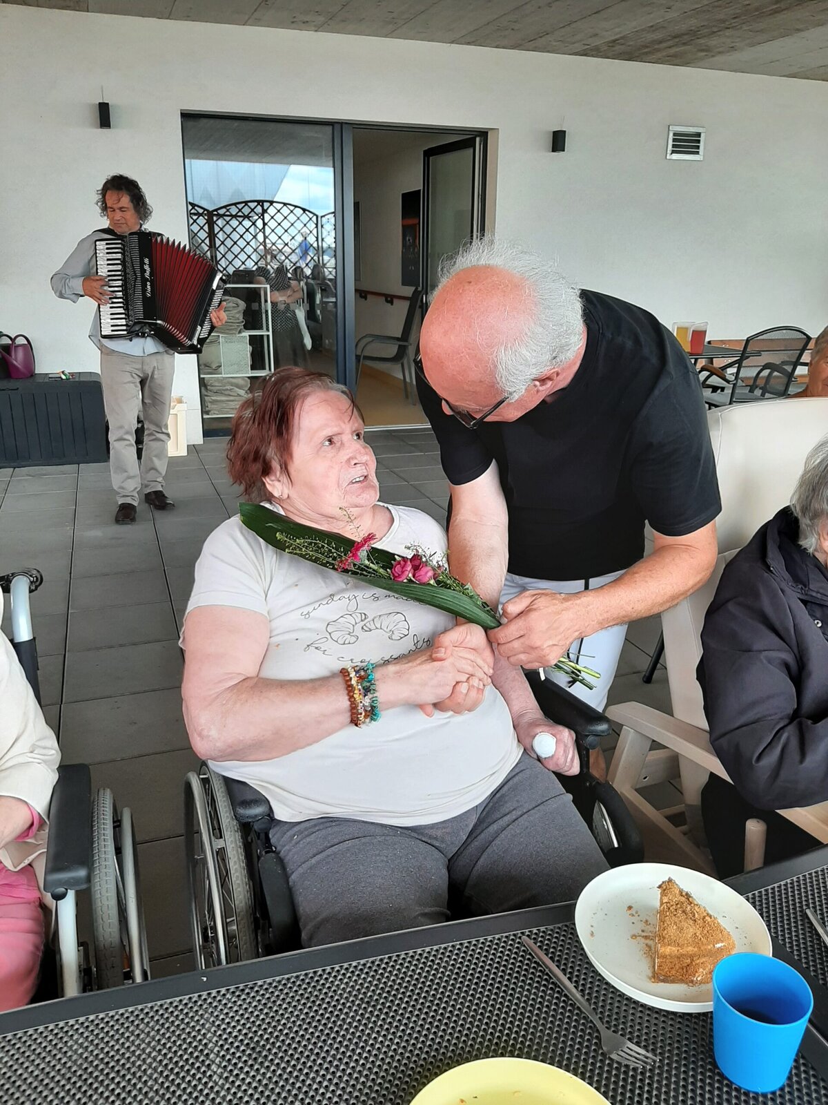 Z terasy domova Senevida Jasmín bylo včera slyšet mnoho krásných zvuků harmoniky 🪗, spousty zpěvu 🎶 a také smíchu 😊. Naše velká oslava pro naše červencové oslavence byla dalším skvělým společným zážitkem 😊. A samozřejmě jako vždy patří veliké poděkování našemu milému harmonikáři panu Radku Andělovi. 💙