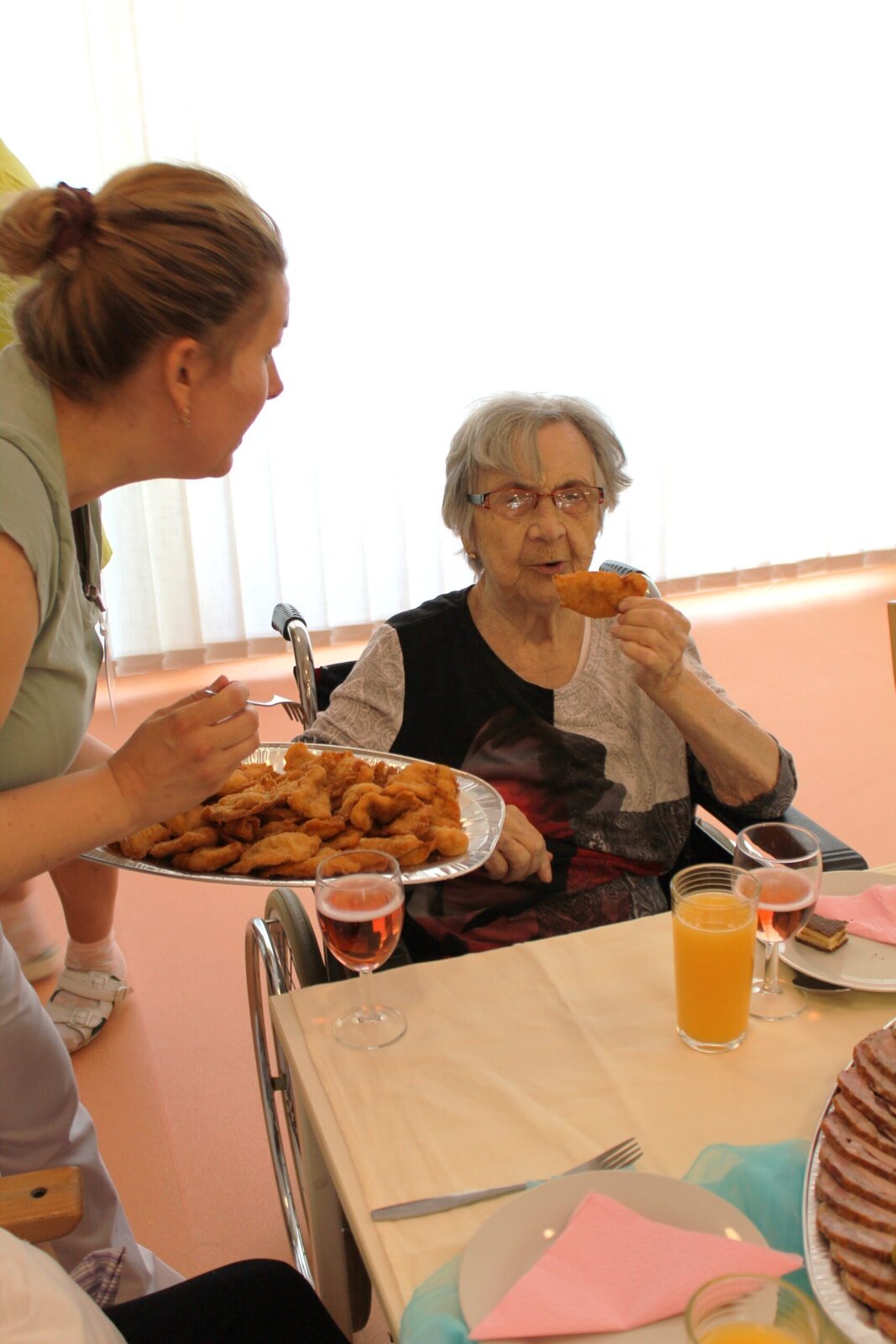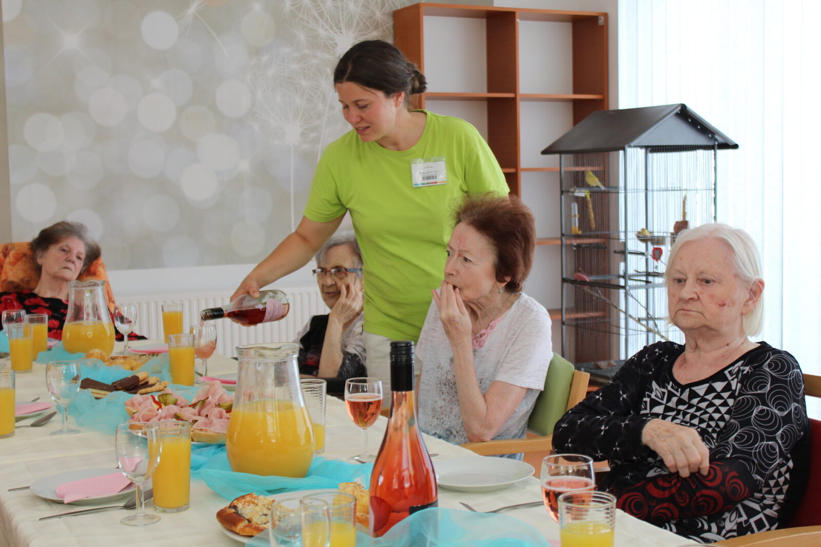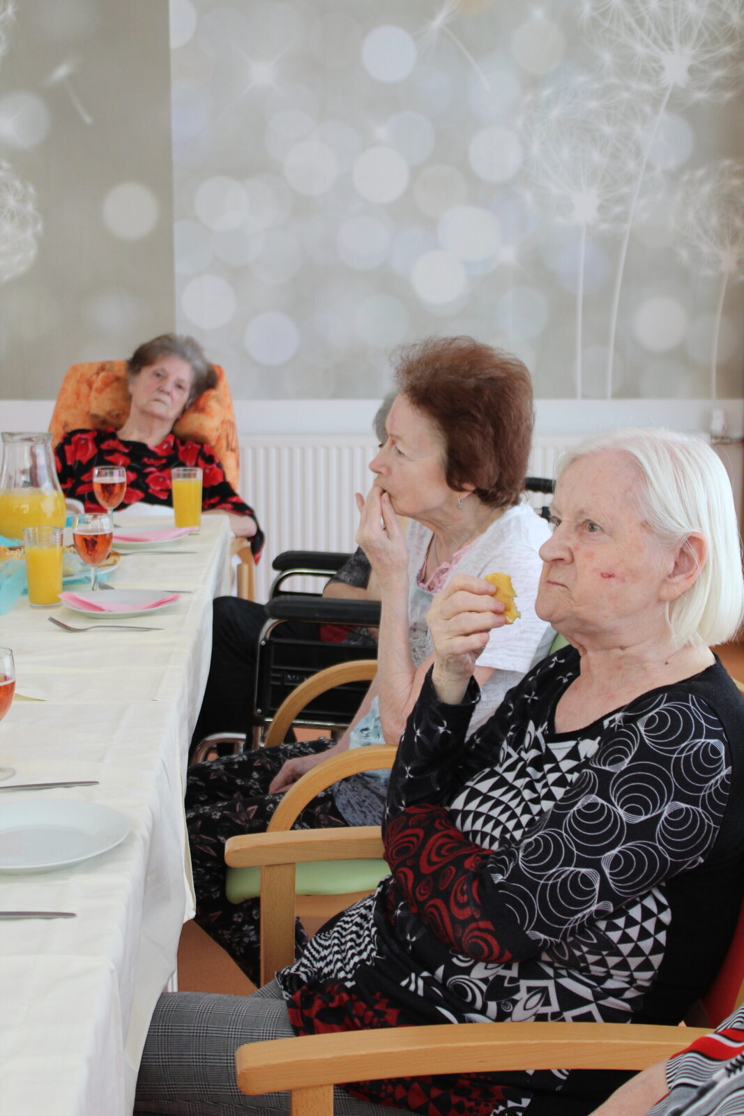 Oslavili jsme narozeniny s červencovými oslavenci. Povídali jsme si, vzpomínali, vyprávěli si příhody a zpívali si za doprovodu harmoniky. Některým příhodám jsme se všichni zasmáli, jiné nás, jak se říká, pohladily po srdíčku. V průběhu oslavy si klienti pochutnávali na občerstvení, které donesly jejich rodiny.