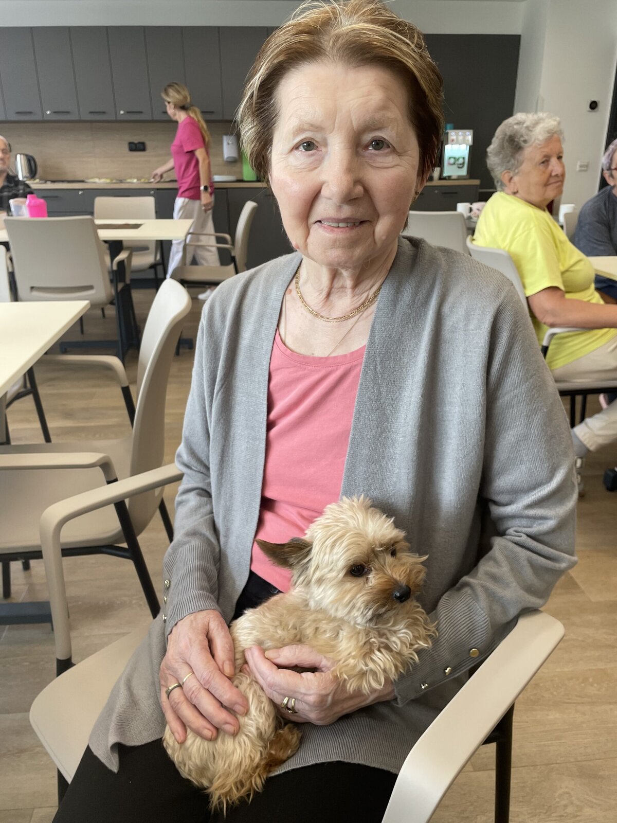 Dotek měkké srsti, teplý dech a oddané oči - to všechno má zvláštní kouzlo, které se nedá nahradit. Někteří klienti si s pejsky povídali, jiní jen tiše hladili a užívali si jejich klidnou přítomnost. 🐕