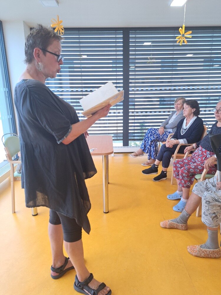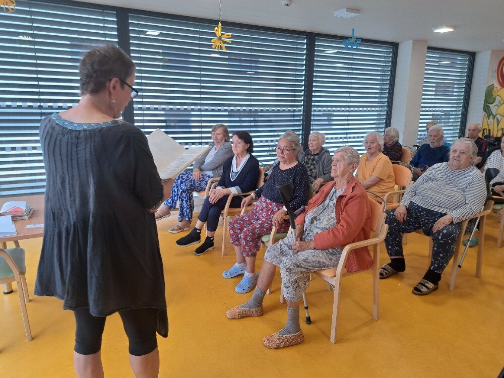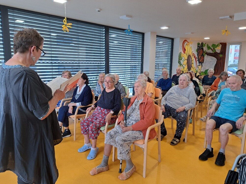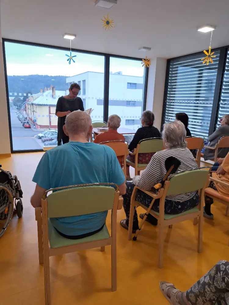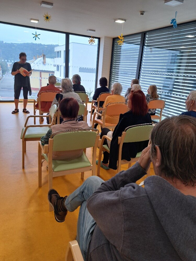 V uplynulých dnech jsme v našem Senevida Boskovice přivítali milou návštěvu z Městské knihovny Boskovice paní Alici Hrbkovou, která k nám přišla se záměrem potěšit naše klienty předčítáním ze známých, humorných knih. Během setkání zazněly ukázky z pestré palety literárních děl, například z pohádkového Fimfára Jana Wericha, vtipných a poetických příběhů Oty Pavla, humorného Saturnin
