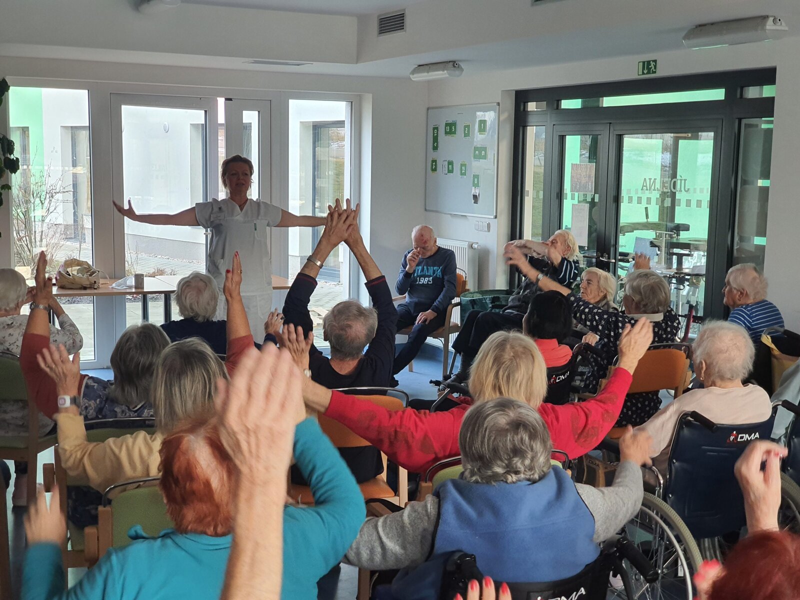 V Senevida Minkovice pravidelně probíhá cvičení s naší rehabilitační pracovnicí Lenkou. Naši klienti se na cvičení vždy moc těší. Každý pátek mají možnost relaxační jógy. Účast je vždy veliká - cvičení nás prostě baví.