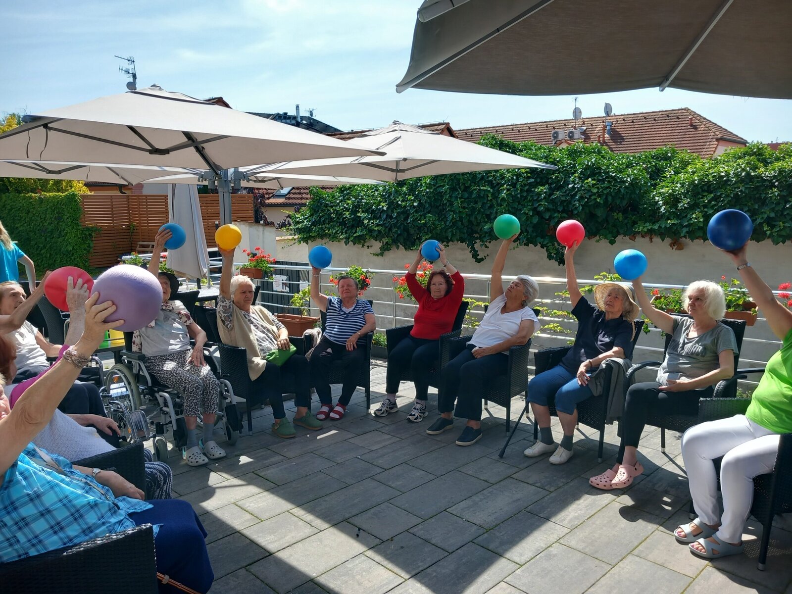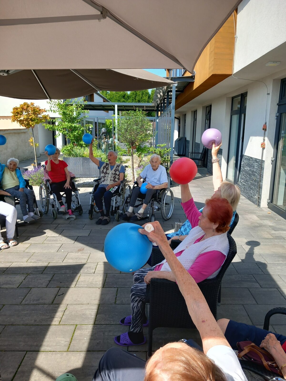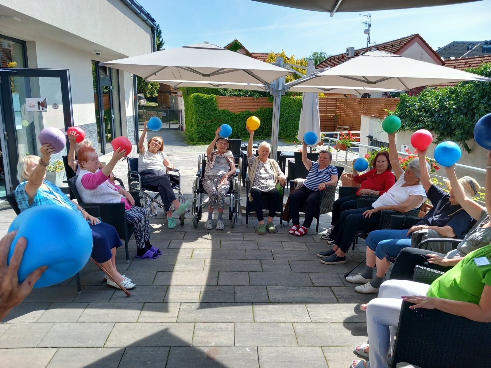 Naše zahrada se proměnila v místo plné pohybu, radosti a dobré nálady. Protahovací cvičení i práce s míčem nám nejen rozhýbaly tělo, ale i zvedly náladu. Děkujeme všem, kdo se přidali – těšíme se na další společné chvíle na čerstvém vzduchu! 🌿🤸♀️☀️