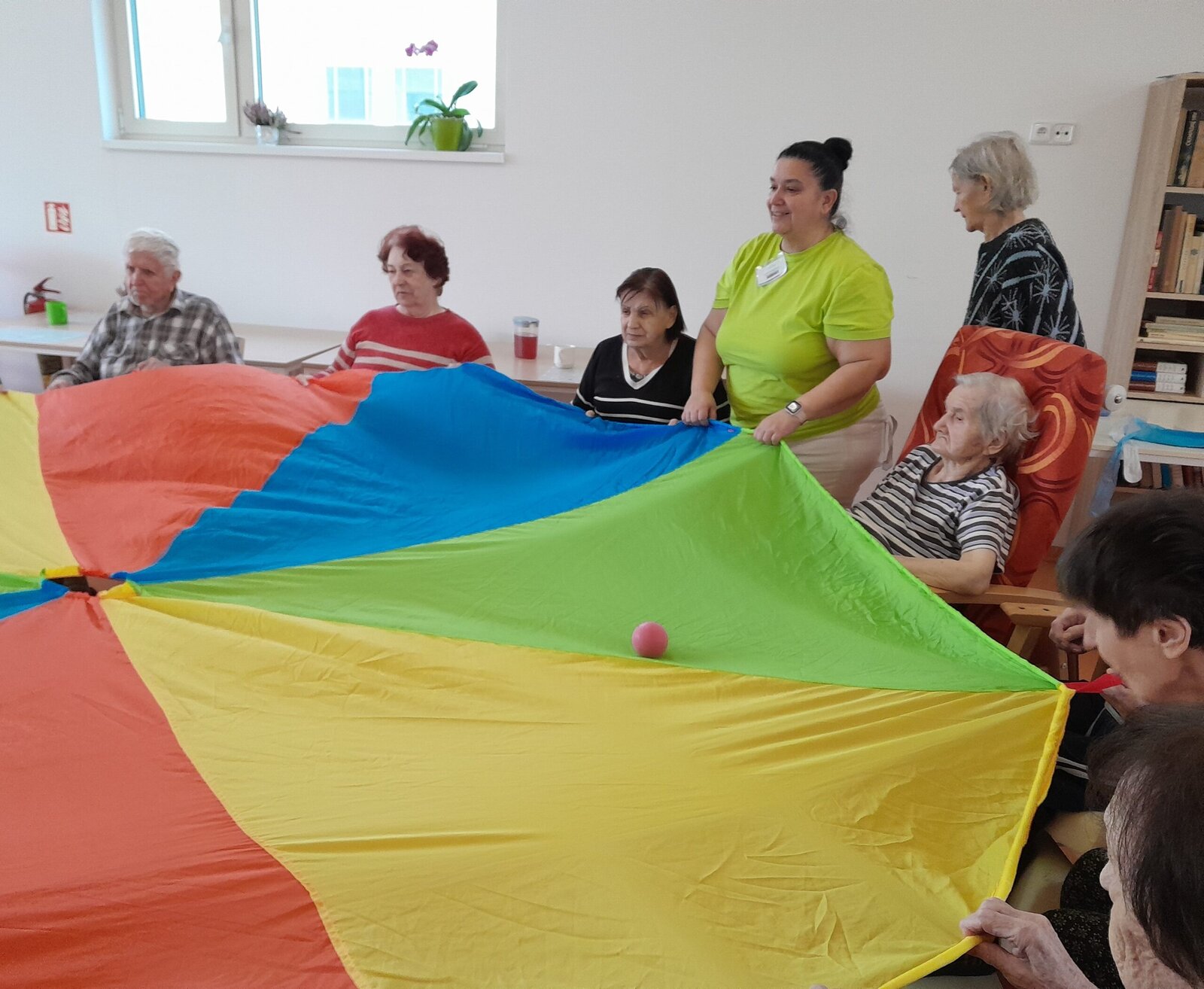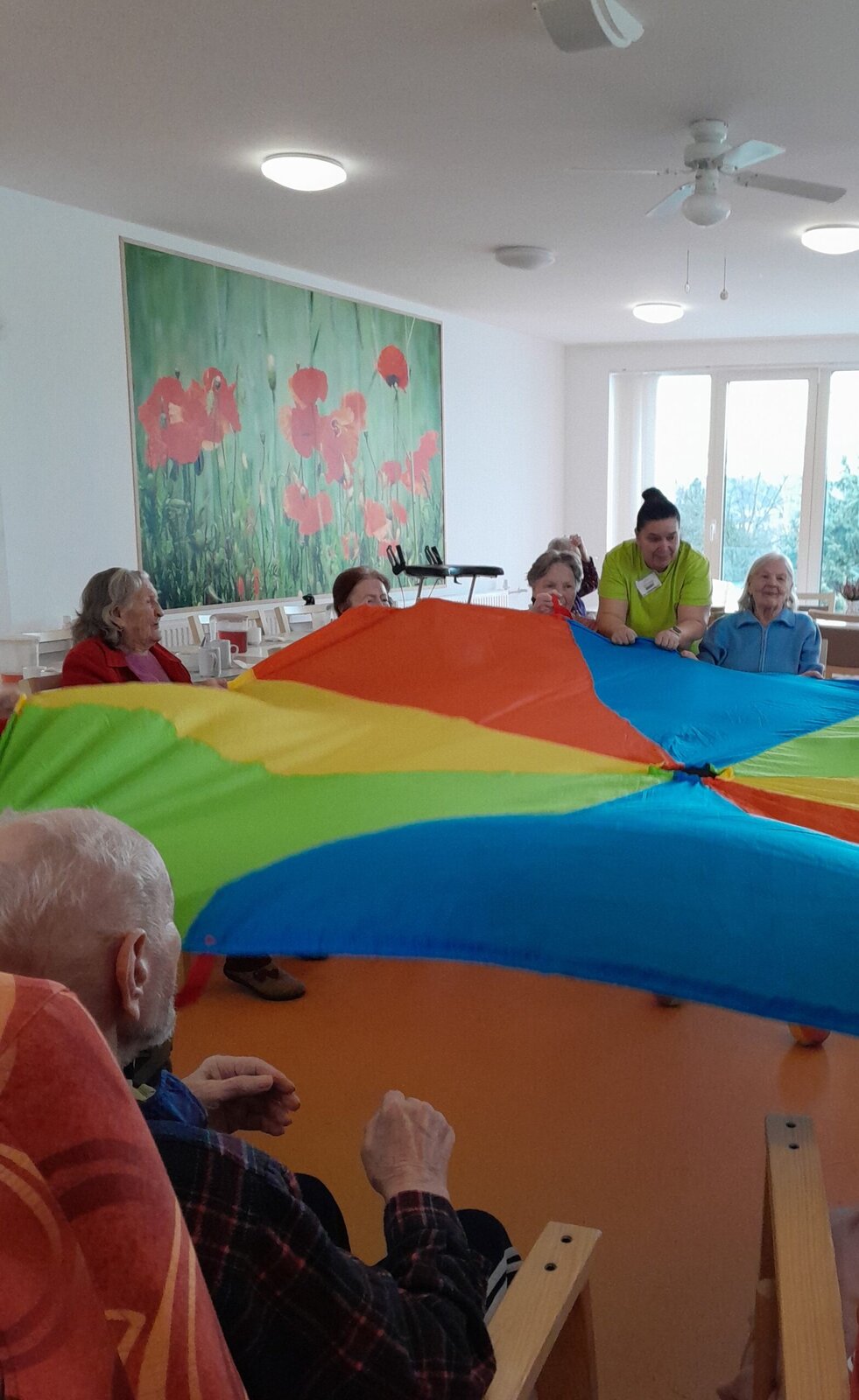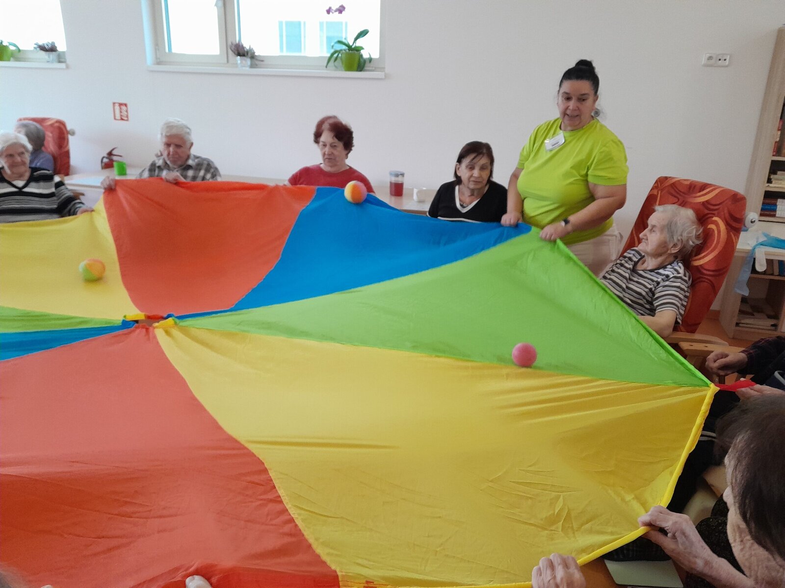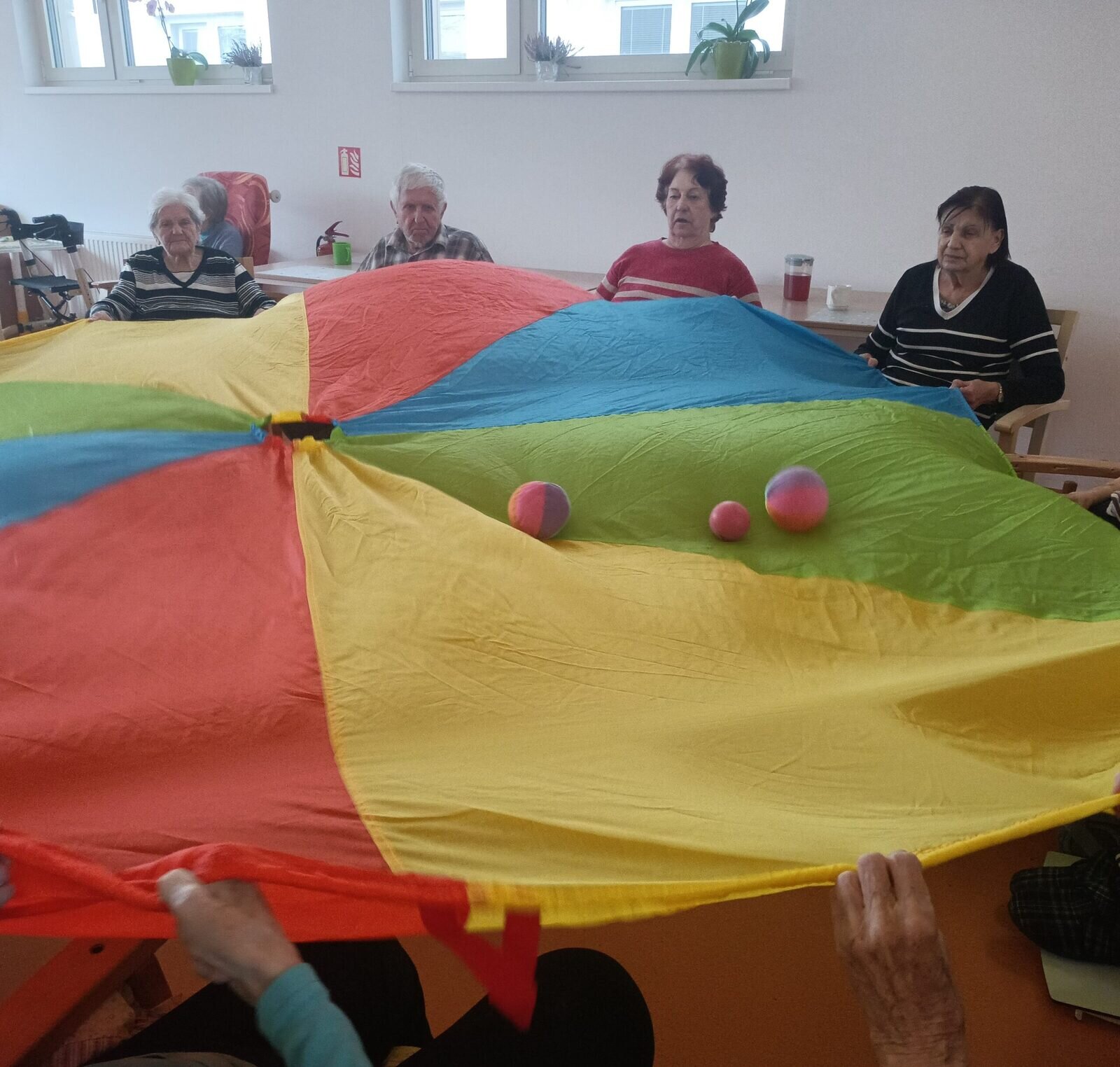 Cvičení s padákem vypadá jednoduše jako hra, avšak je to také dobré posílení rukou a horní části těla. Zvedáním padáku nám míč pobíhal po barevných vlnách, sotva jsme ho někdy stačili sledovat. V Senevida Zlín jsme si s ním dobře zacvičili.