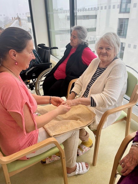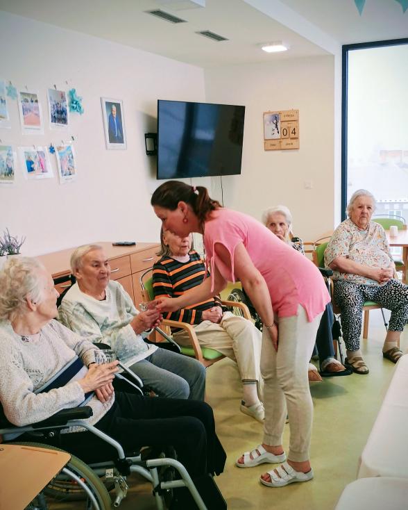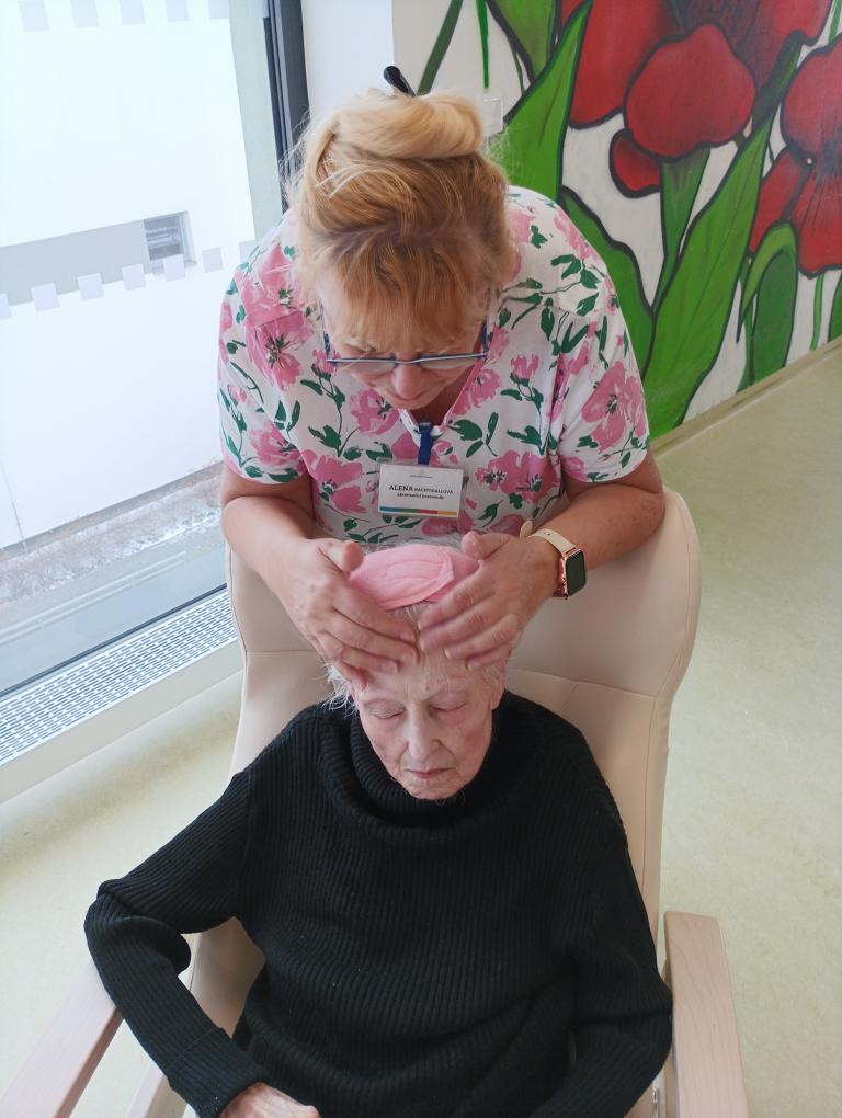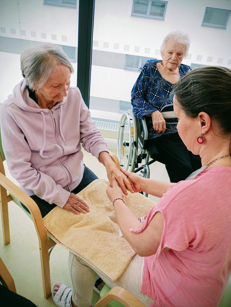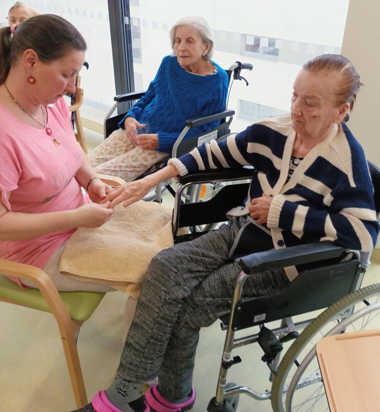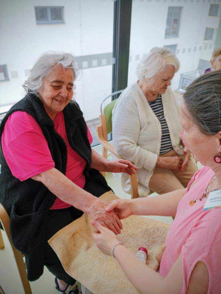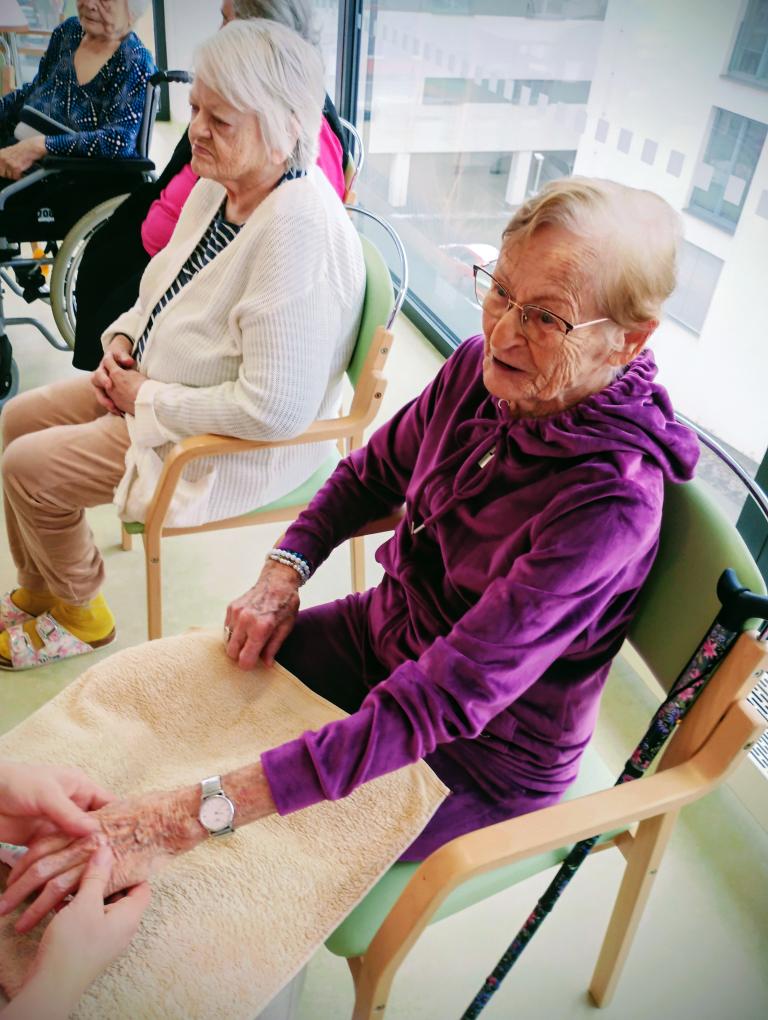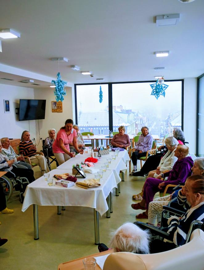 V dopoledních hodinách se konal dámský klub. Vzduch provoněla aroma lampa a a atmosféru dotvořila relaxační hudba. Klientky si užily masáž rukou i obličeje. Všechny si společně povídaly a četly dámské časopisy.