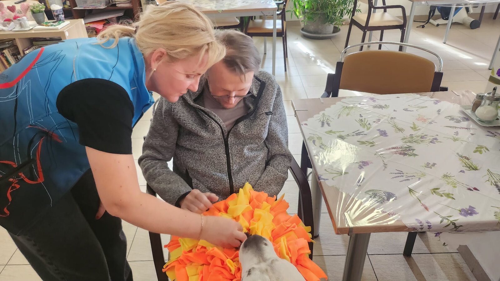 V Senevida Sychrov nás opět navštívil čtyřnohý kamarád Dárek. Pro klienty byly připravené různé záludnosti na procvičení jemné motoriky a canisterapii jsem zakončili hrou ve dvojicích.😊🐶