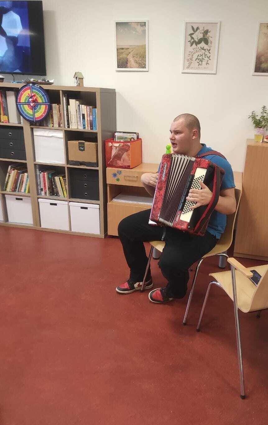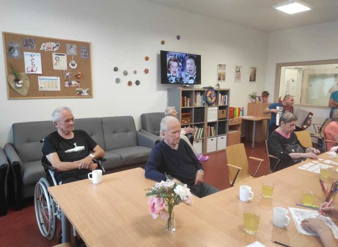 Pozván byl i pan Jan Jára (označit ho pokud to jde), který svůj krásný zpěv doprovázel hraním na harmoniku. 🪗