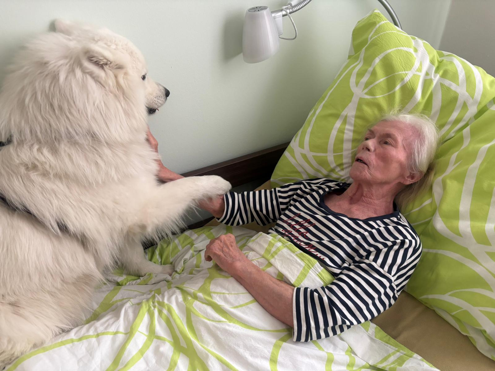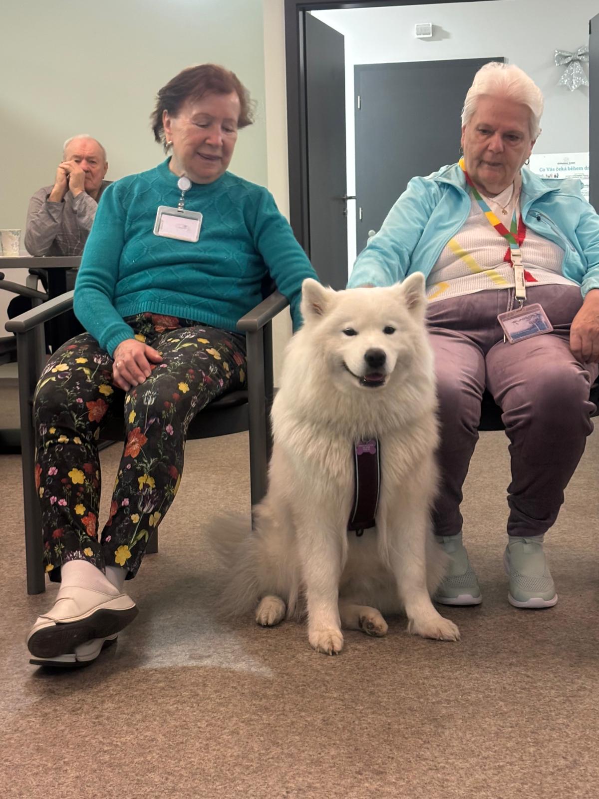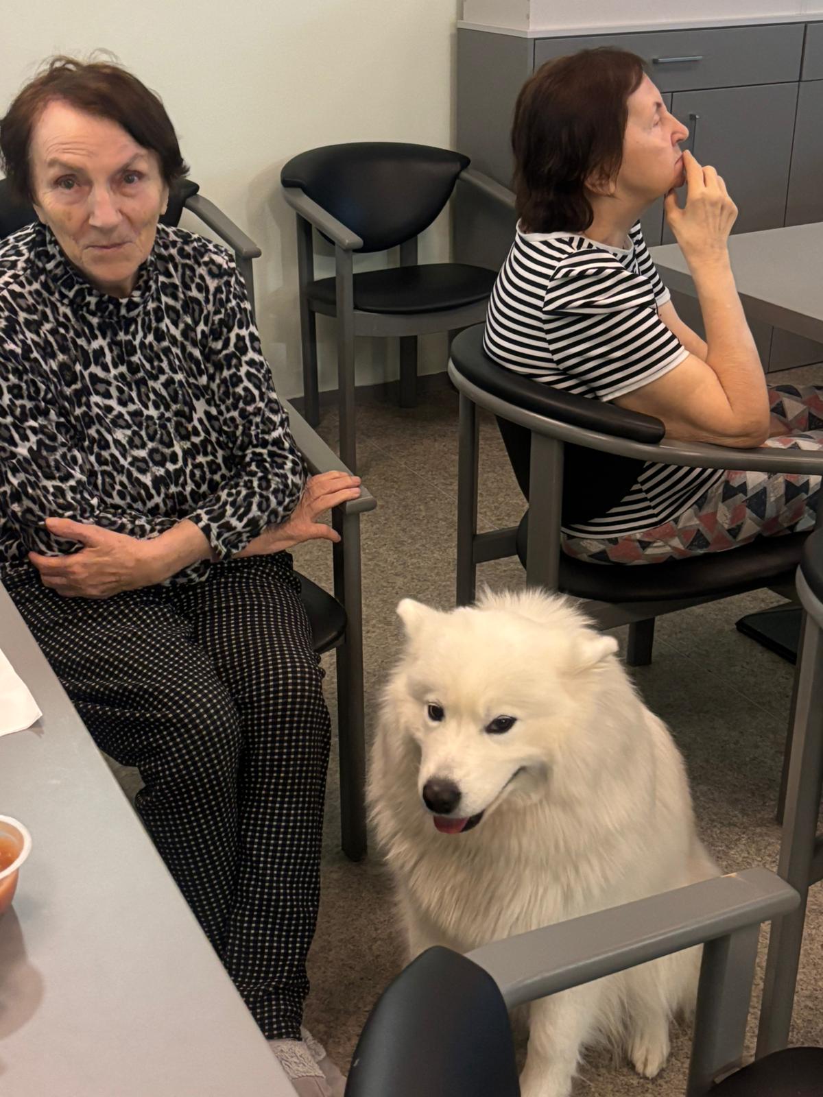 🍀 Naše klienty tentokrát potěšila návštěva samojedky Belly. Její milá povaha, hebká srst a přátelská energie vykouzlily úsměvy na tvářích a přinesly radost i pohodu. Společné chvíle se čtyřnohým kamarádem byly pro všechny velmi příjemné. Děkujeme za krásnou návštěvu. 🌿🍀