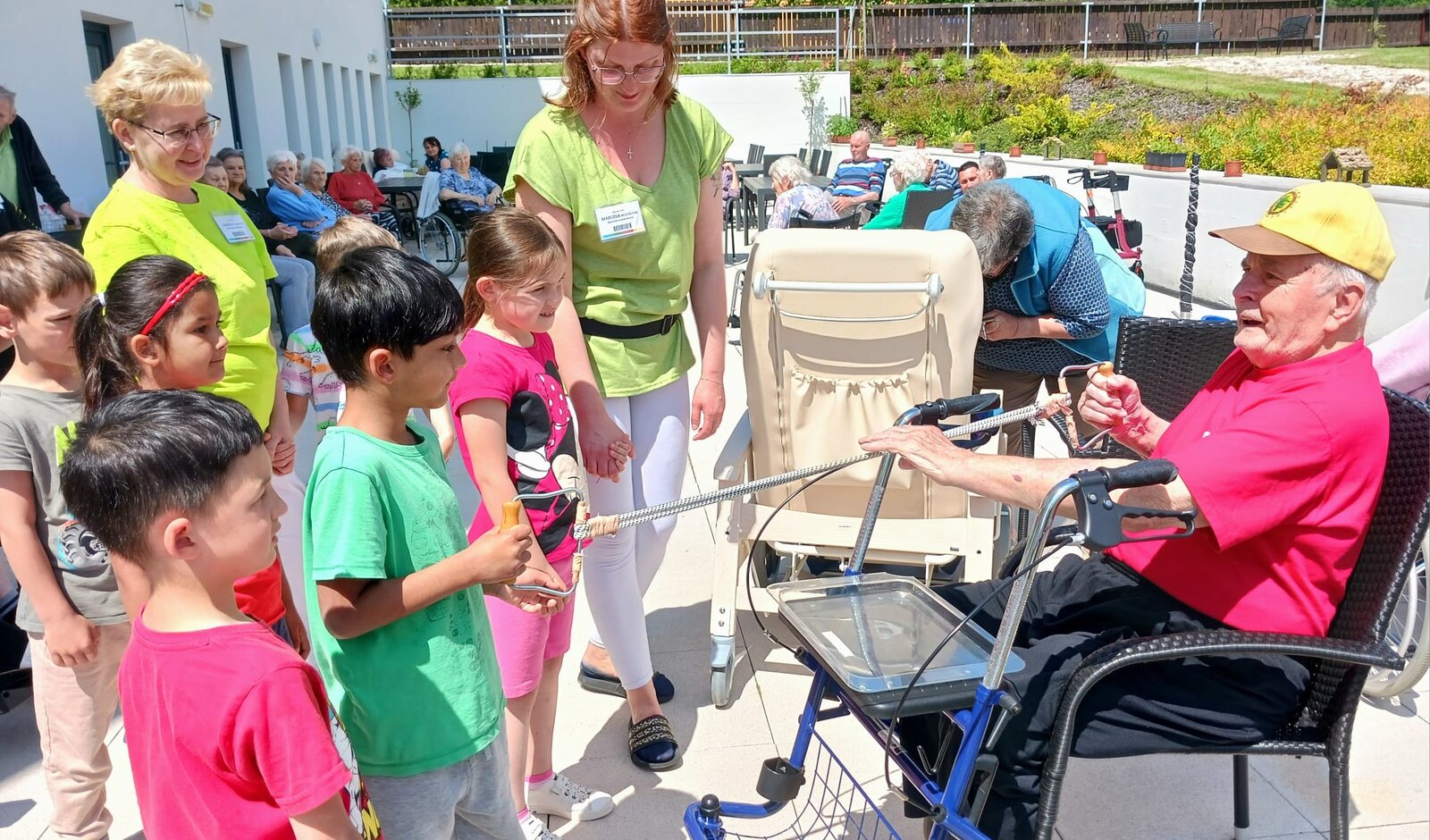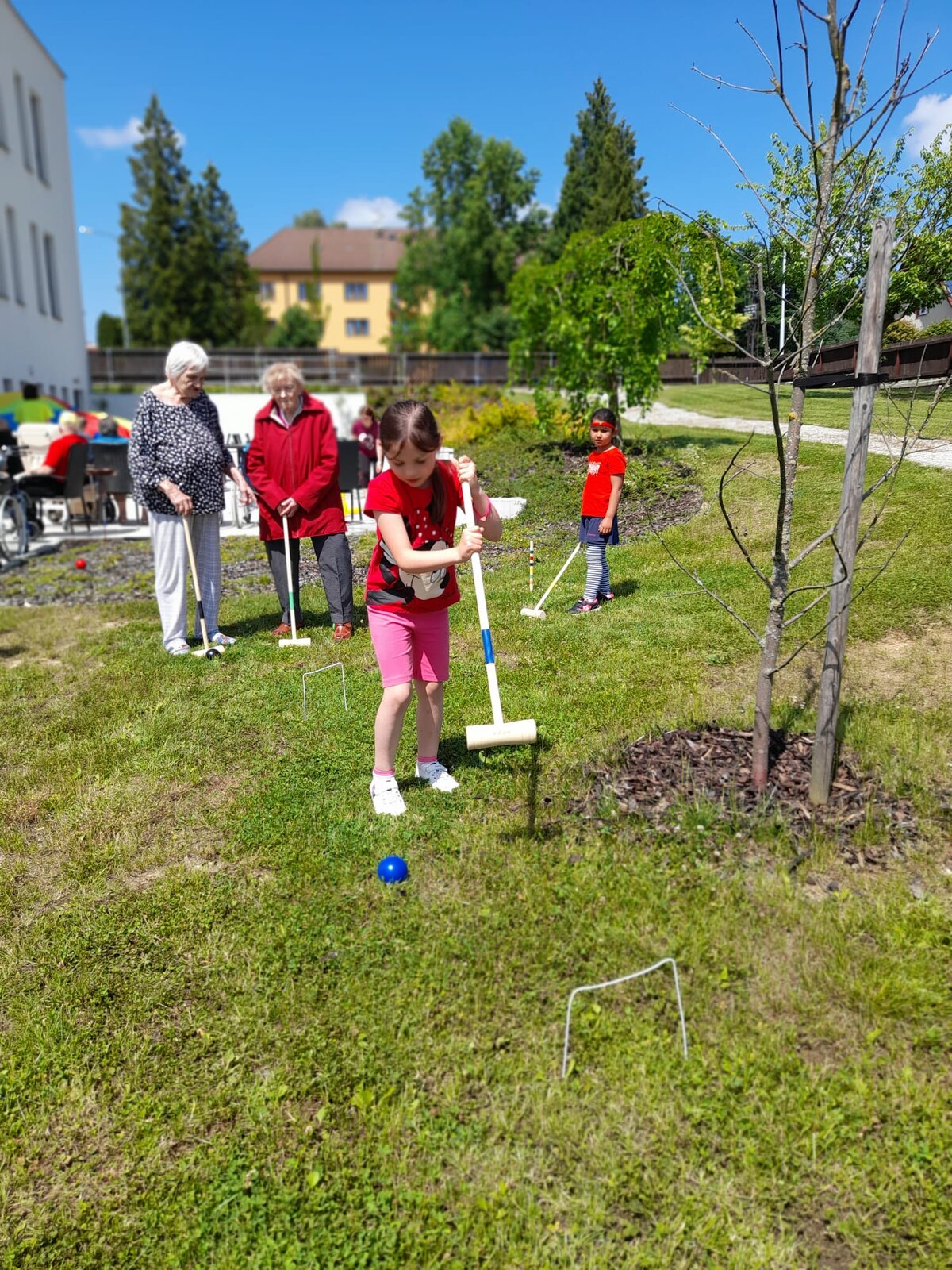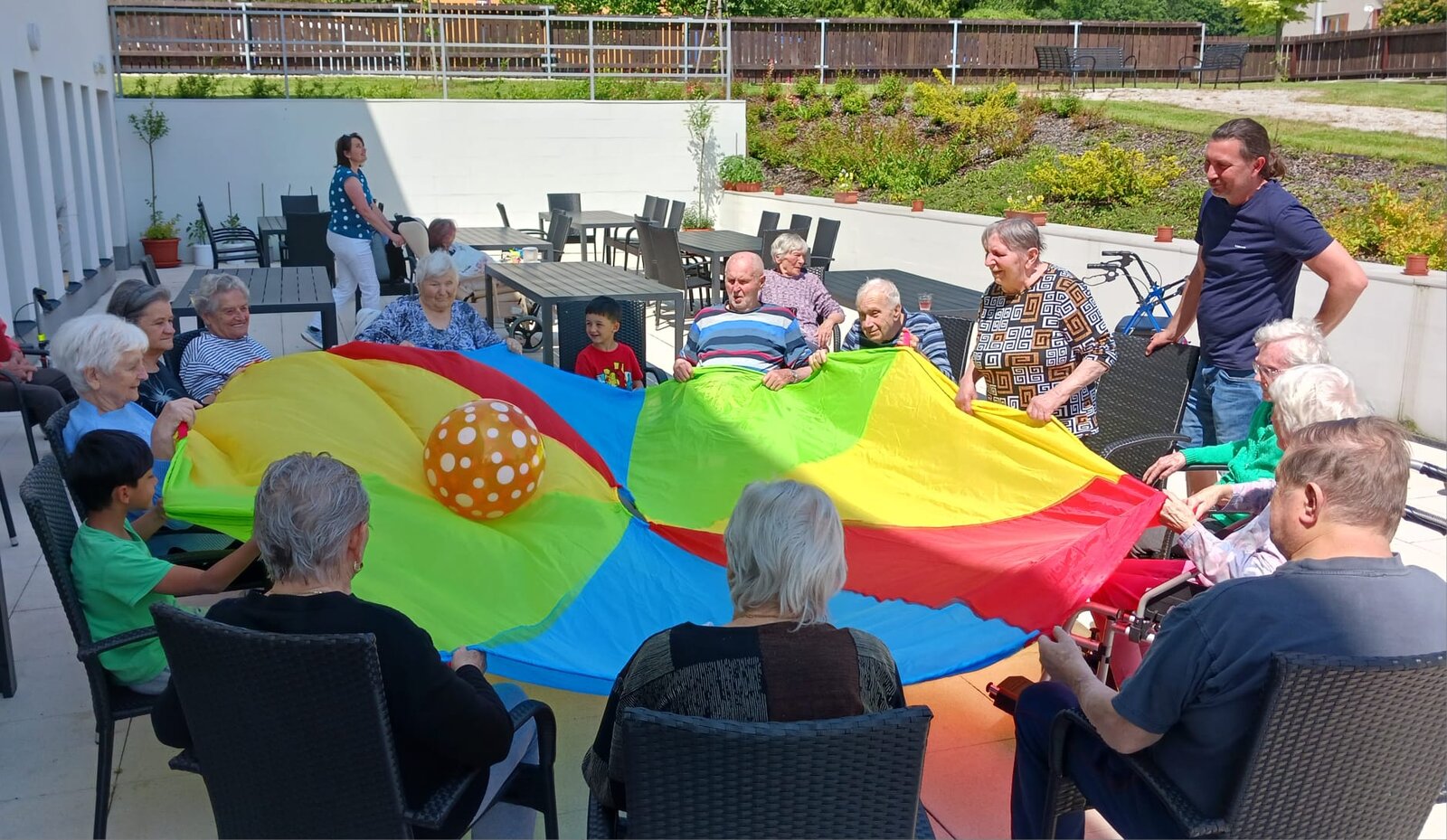 👫 Na zahradě jsme si zahráli jednoduché pohybové hry, povídali si a nechyběla ani výtvarná aktivita, do které se s nadšením zapojili malí i velcí.